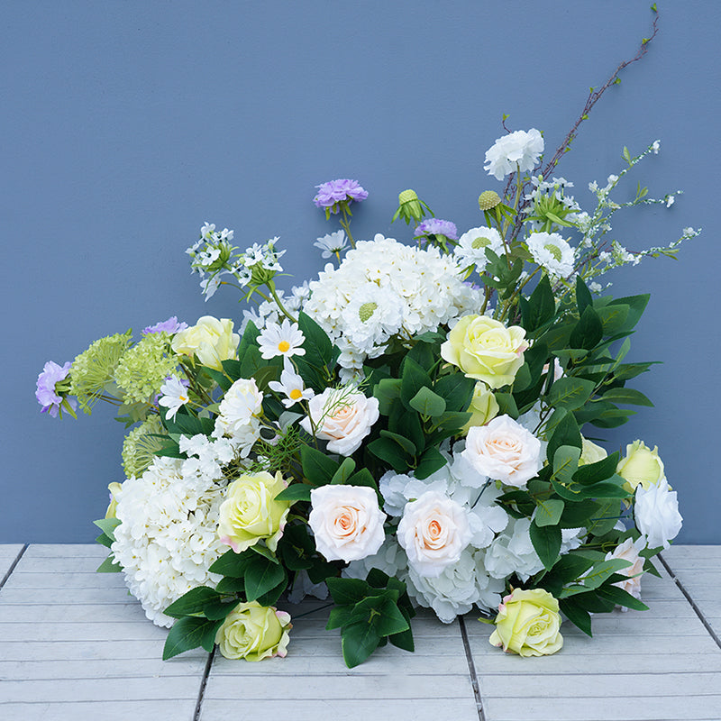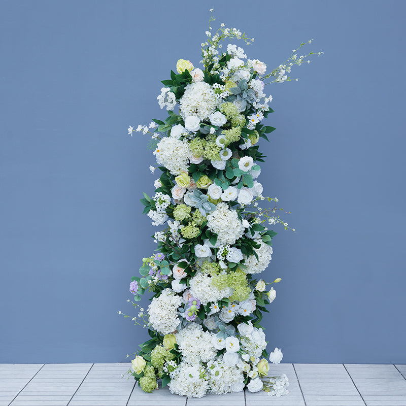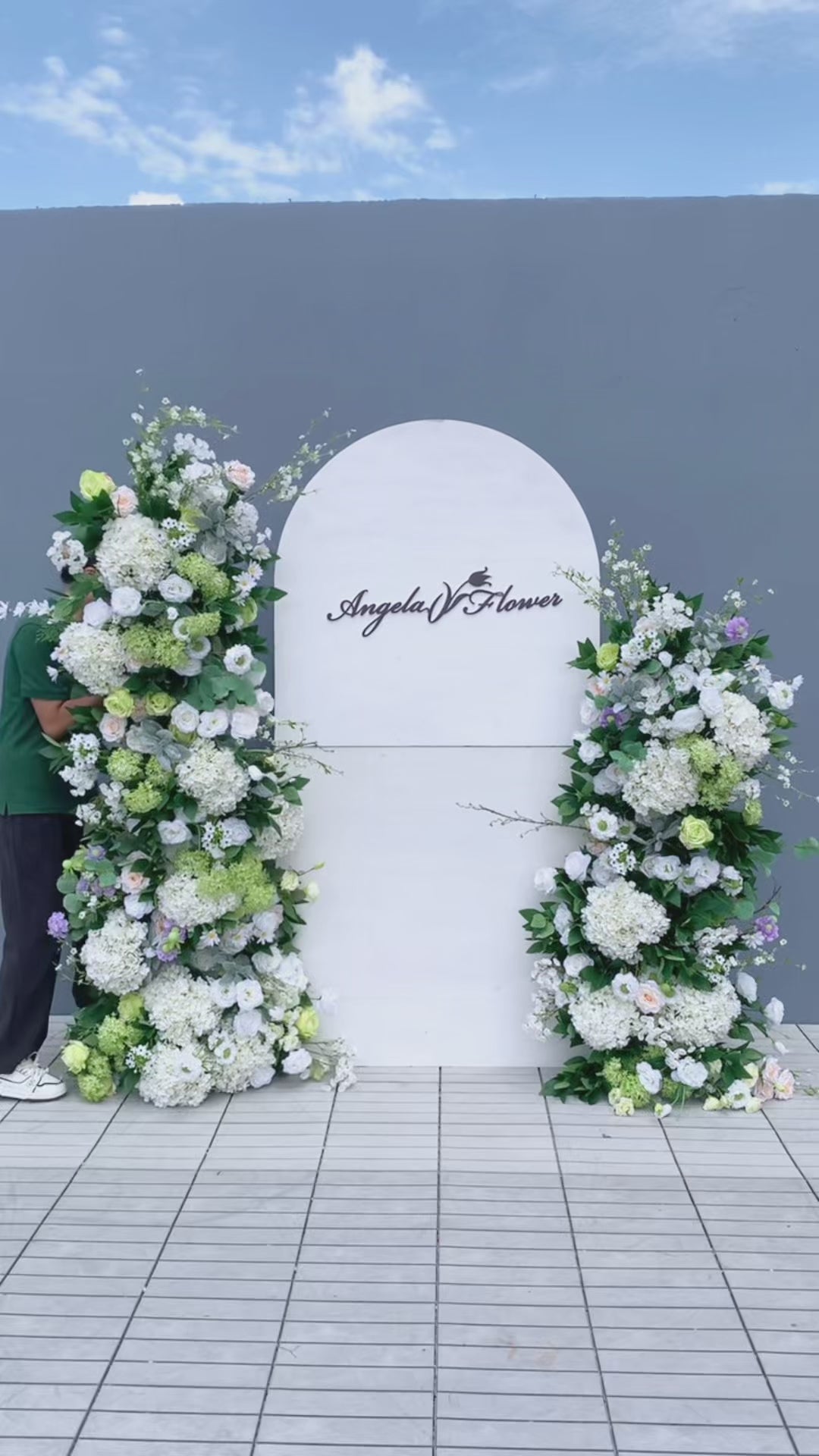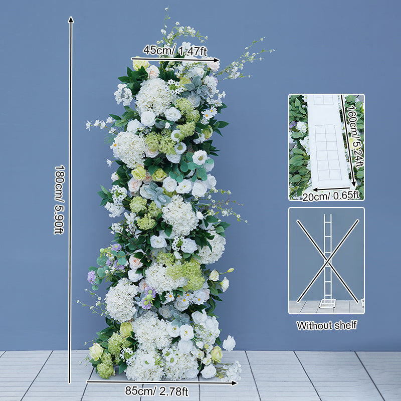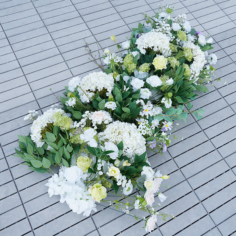 A8739 White Large Hydrangea Greenery Floral Row Arrangement KT Board Wedding Backdrop