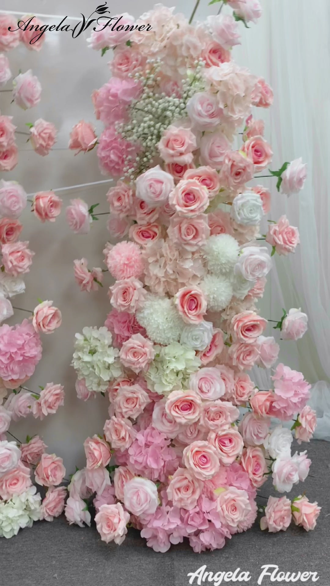 A7784 5D Rose Hydrangea Babysbreath Wedding Backdrop Arch KT Board Decor Floral