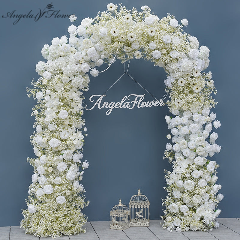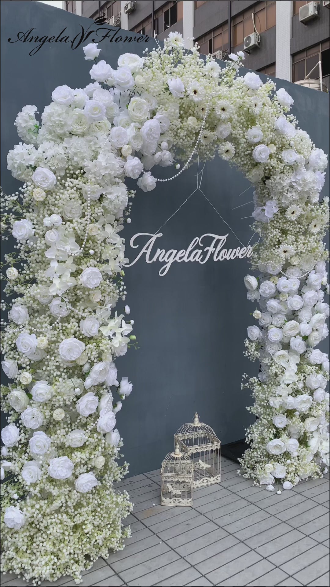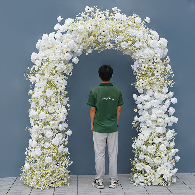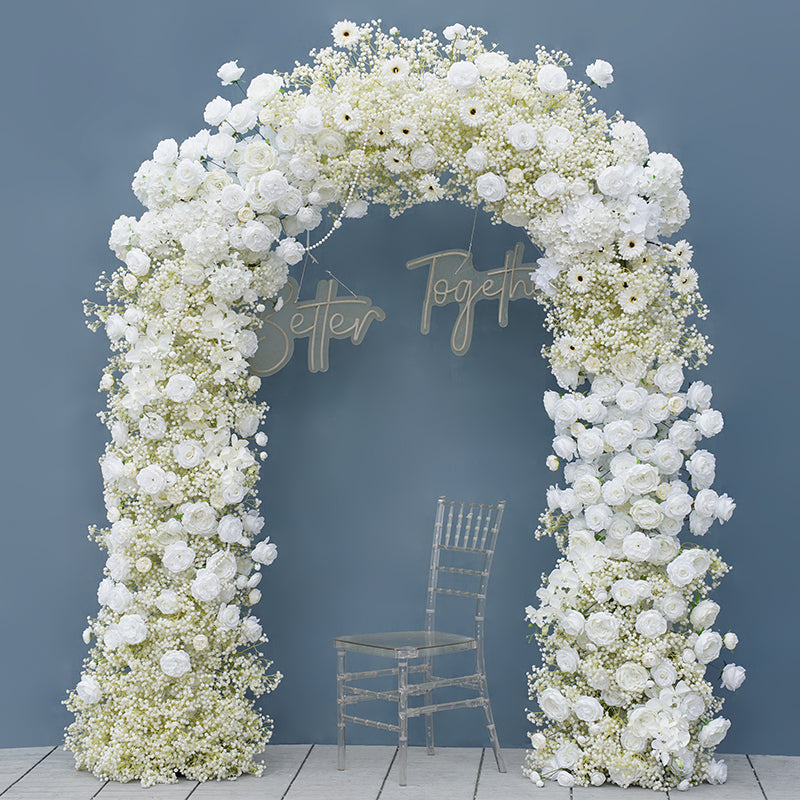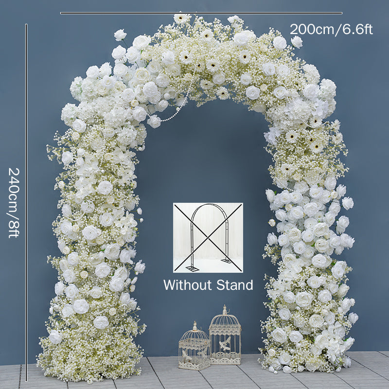 A8728 White Rose Baby's Breath Wedding Backdrop Arch Frame Decor Arrangement Floral