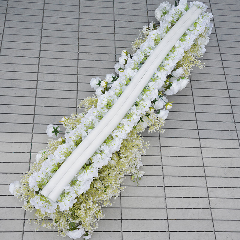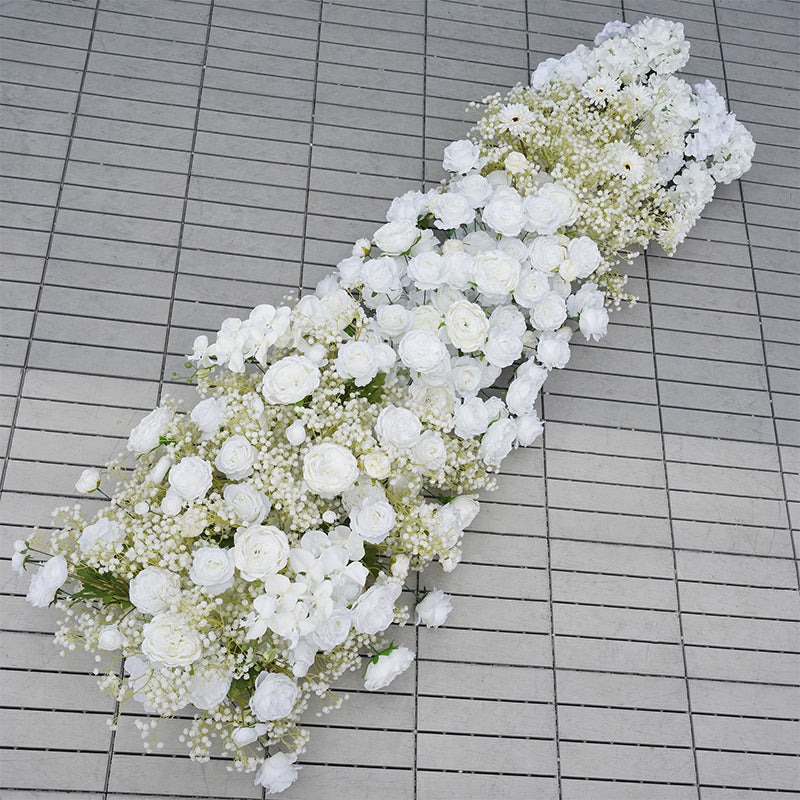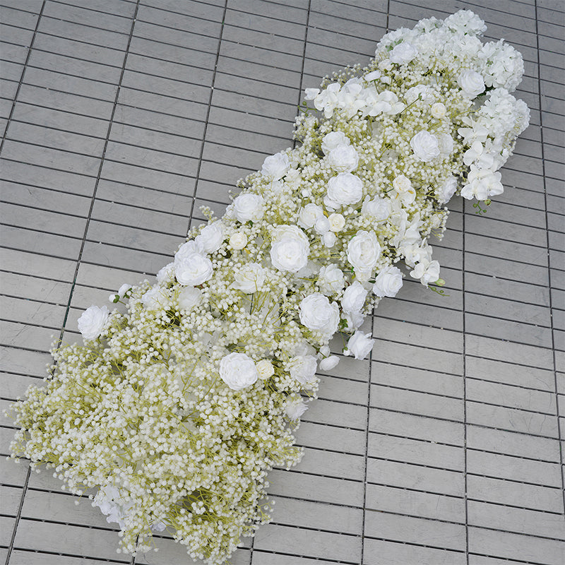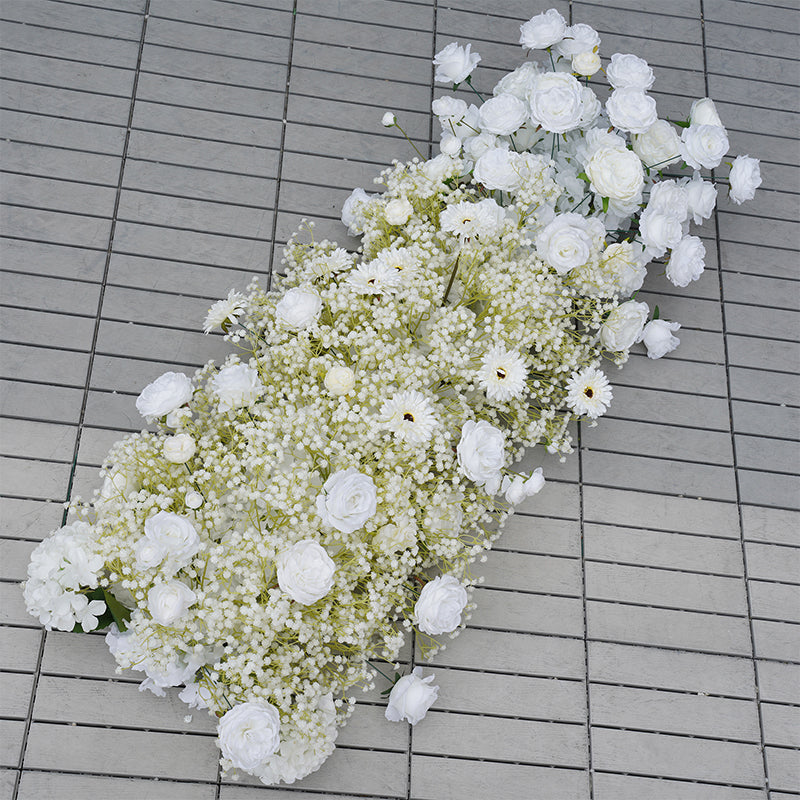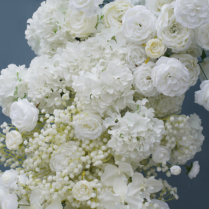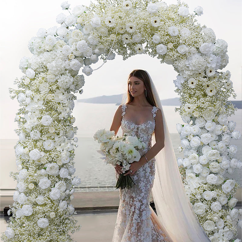 A8728 White Rose Baby's Breath Wedding Backdrop Arch Frame Decor Arrangement Floral