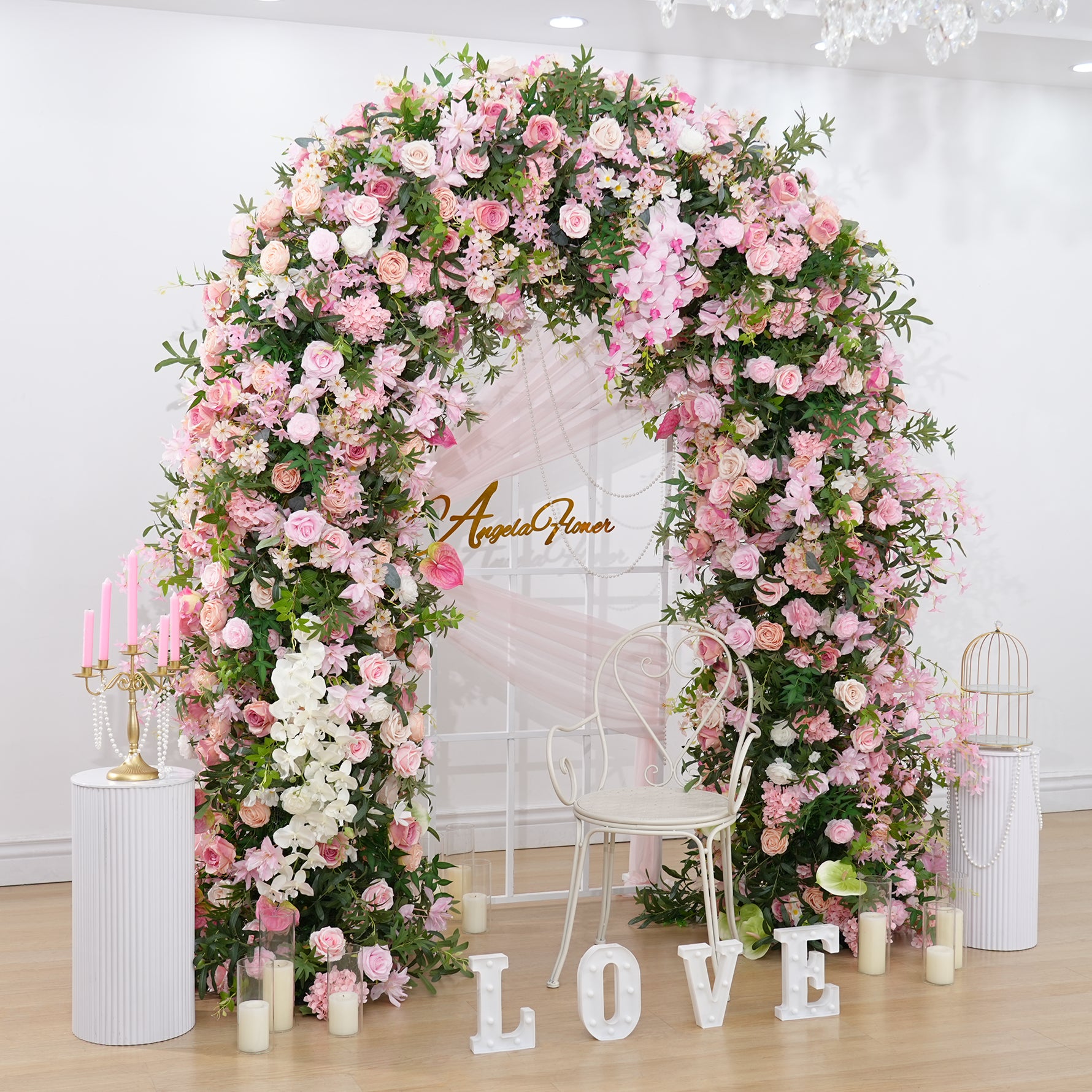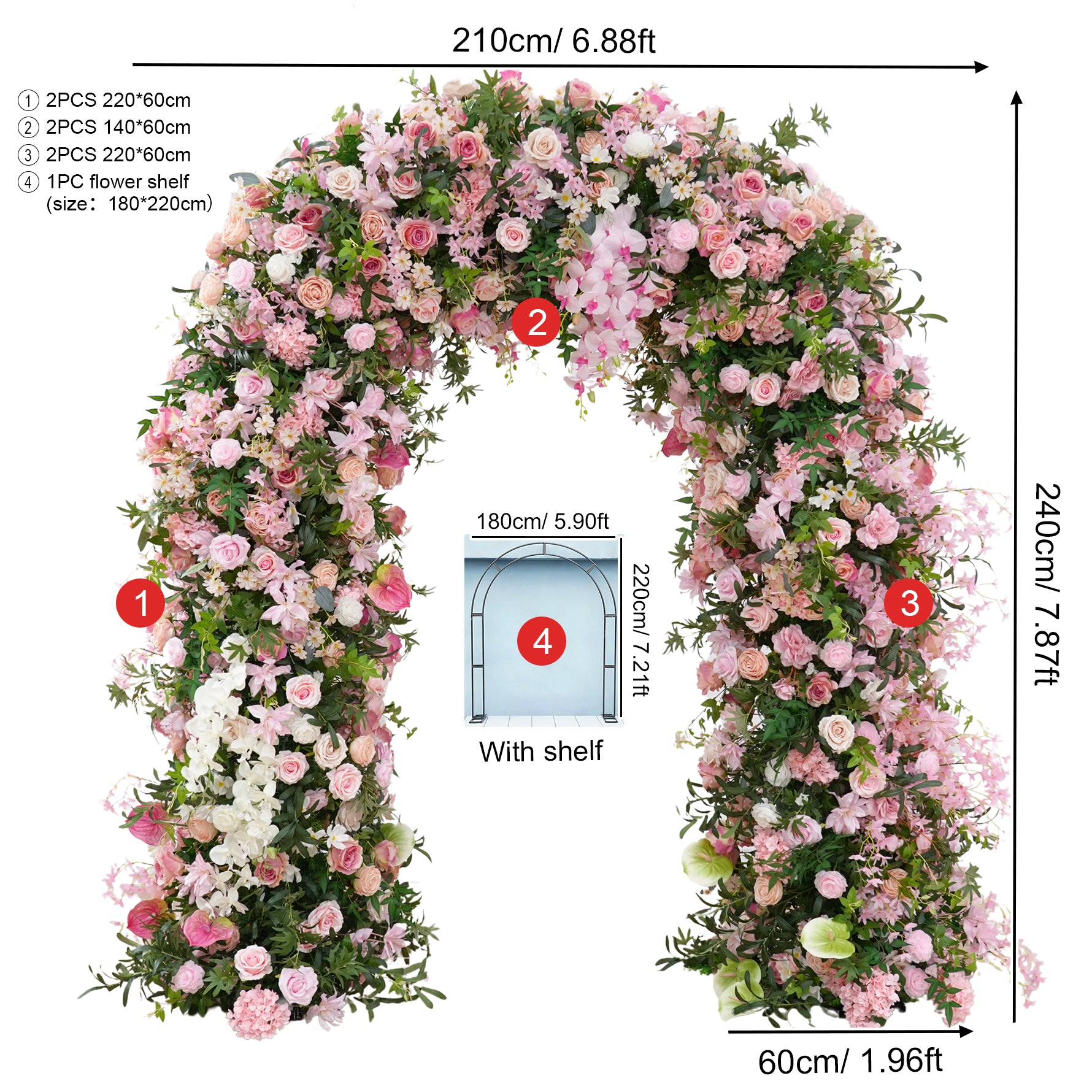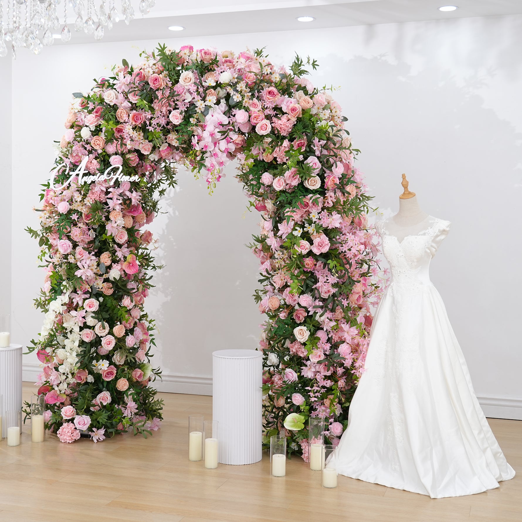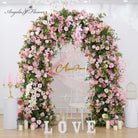 A7768 Pink Floral Greenery Two Sides Flower Wedding Background Door Arch