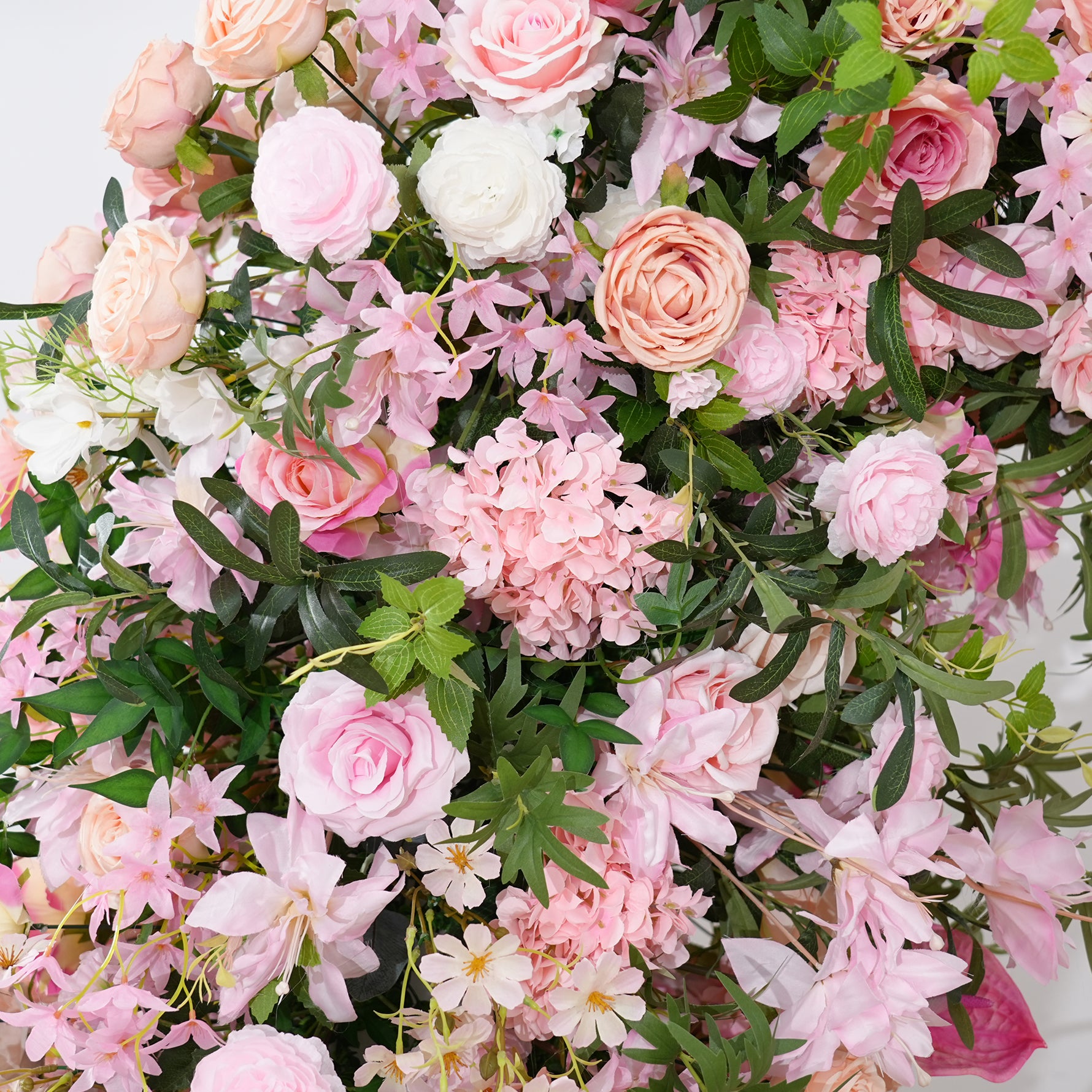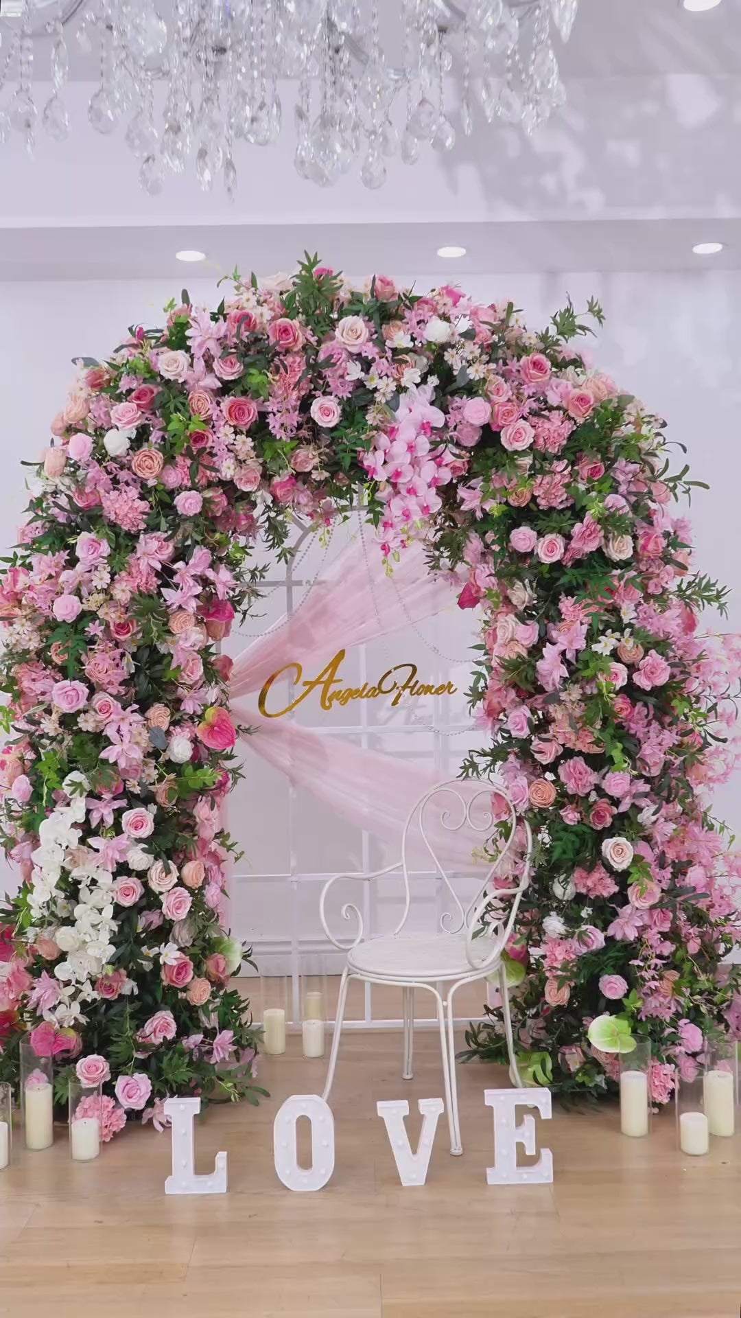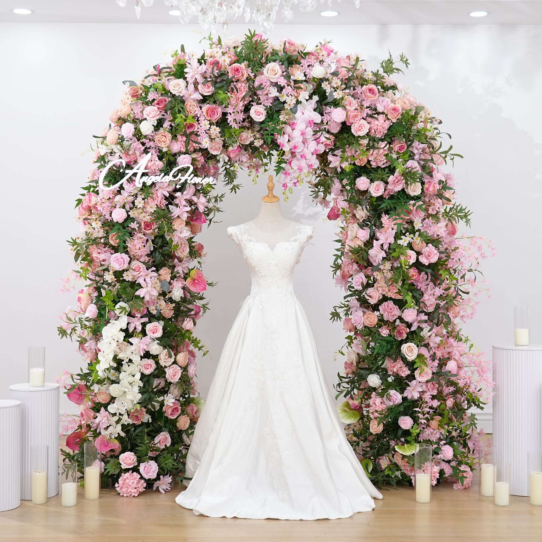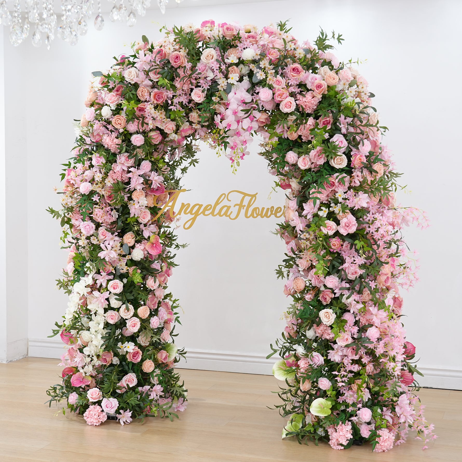 A7768 Pink Floral Greenery Two Sides Flower Wedding Background Door Arch