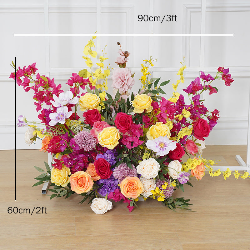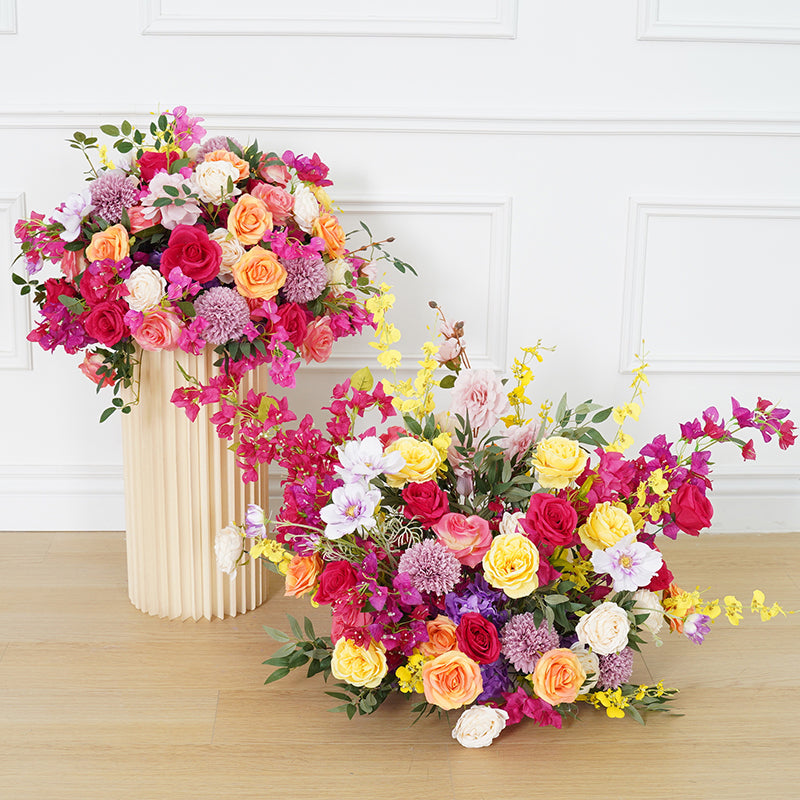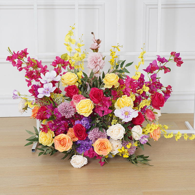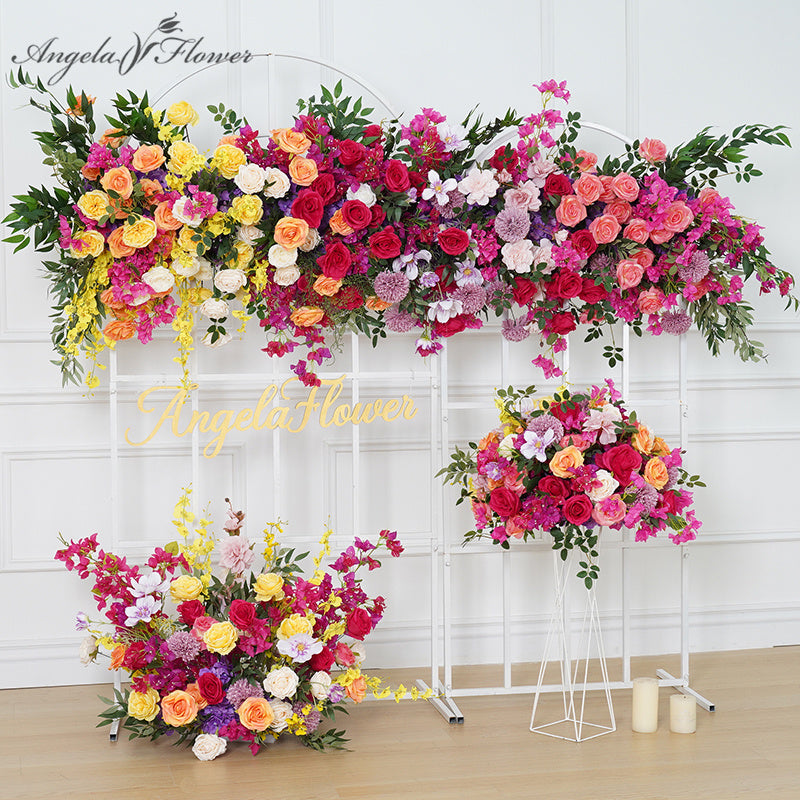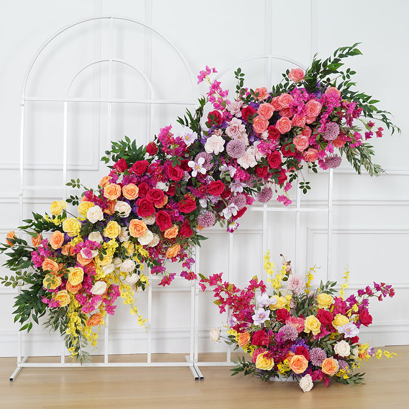A7881 Green Plant Red Yellow Table Runner Wedding Arch Decor Hanging Flower Row