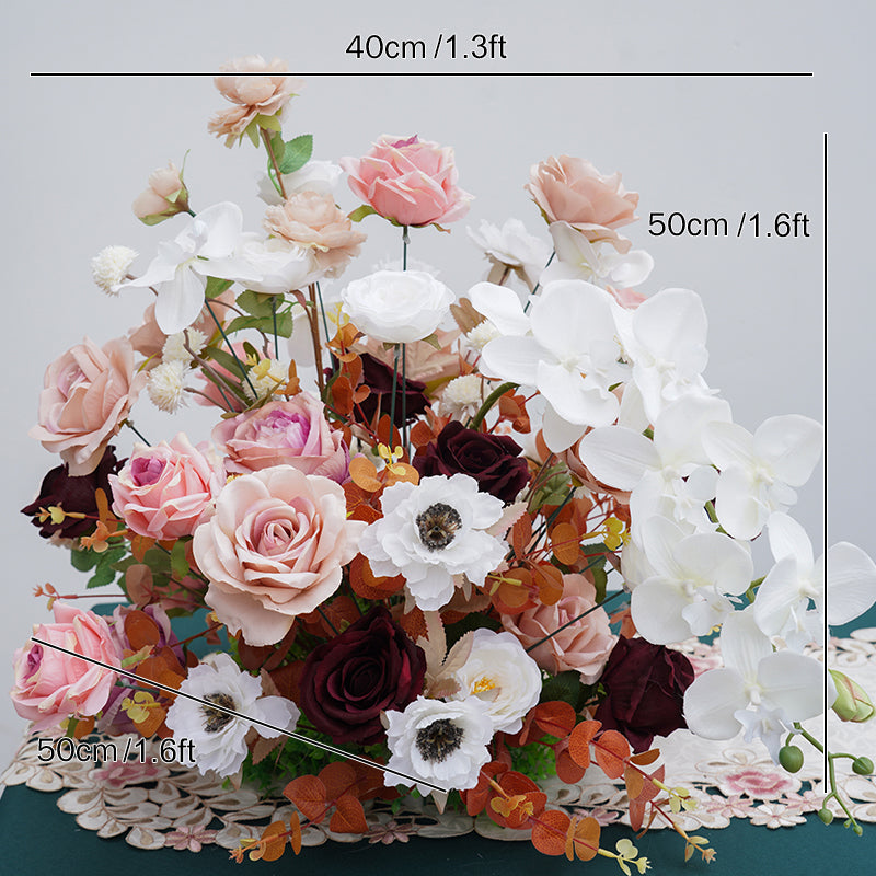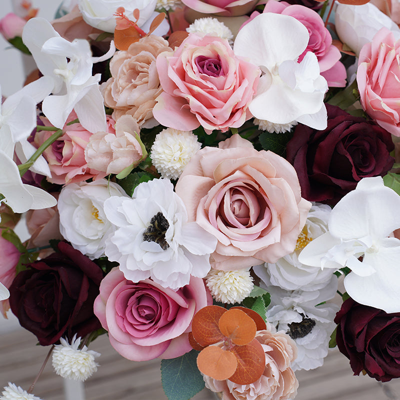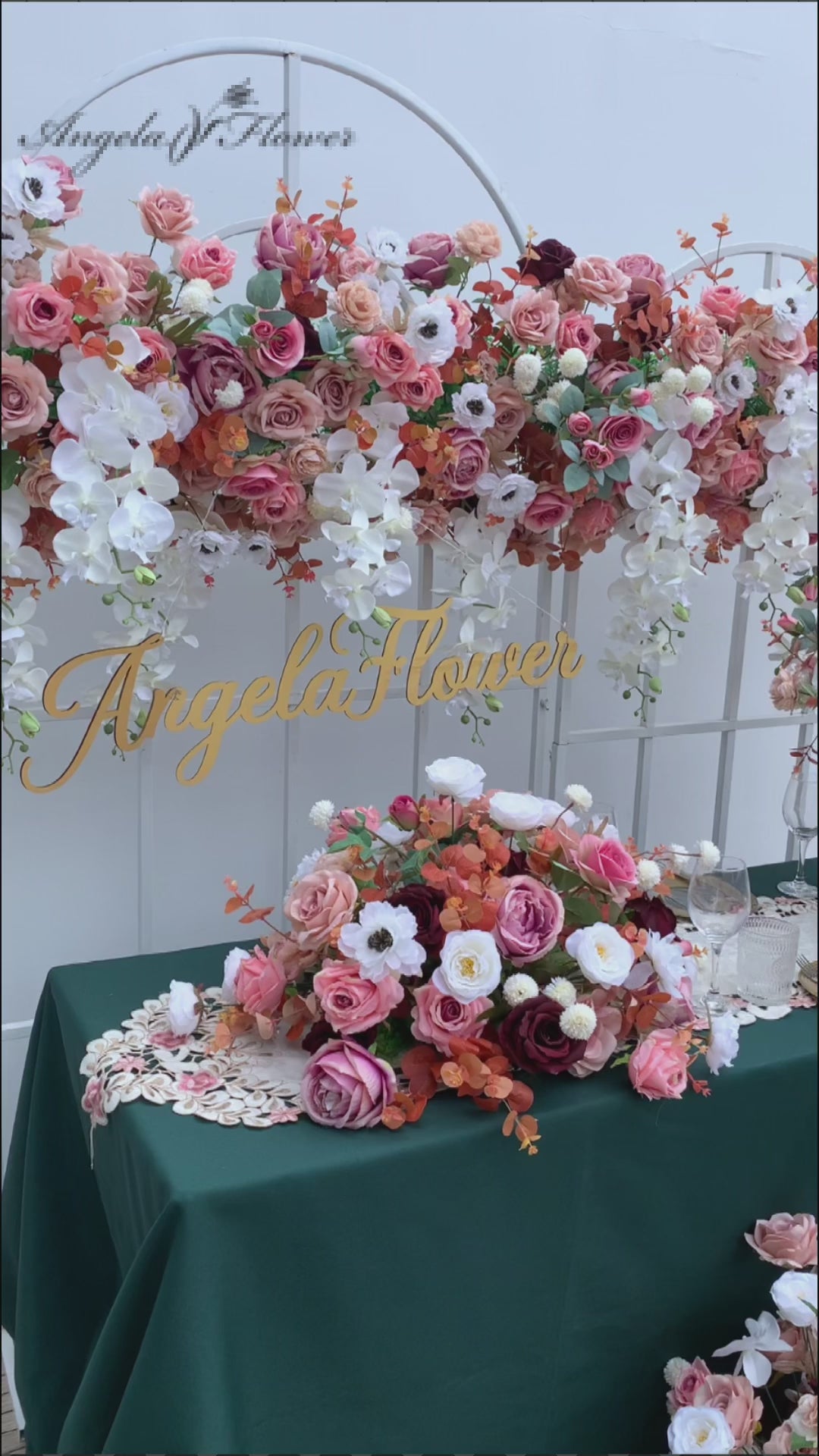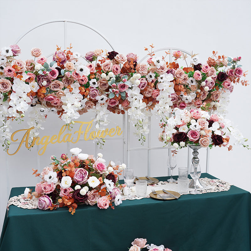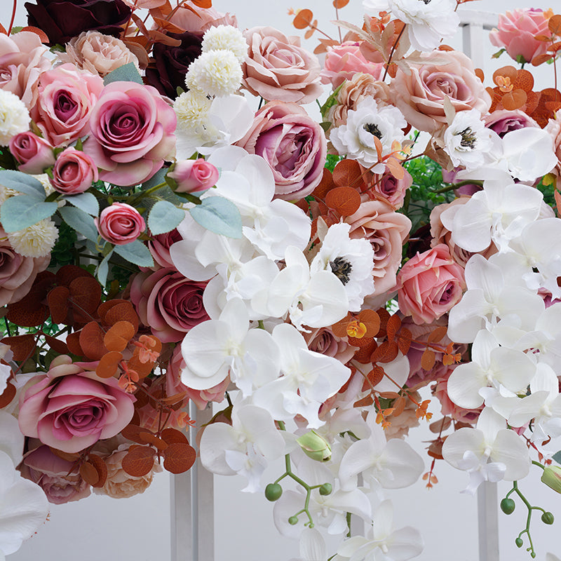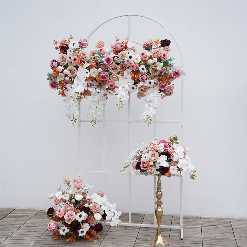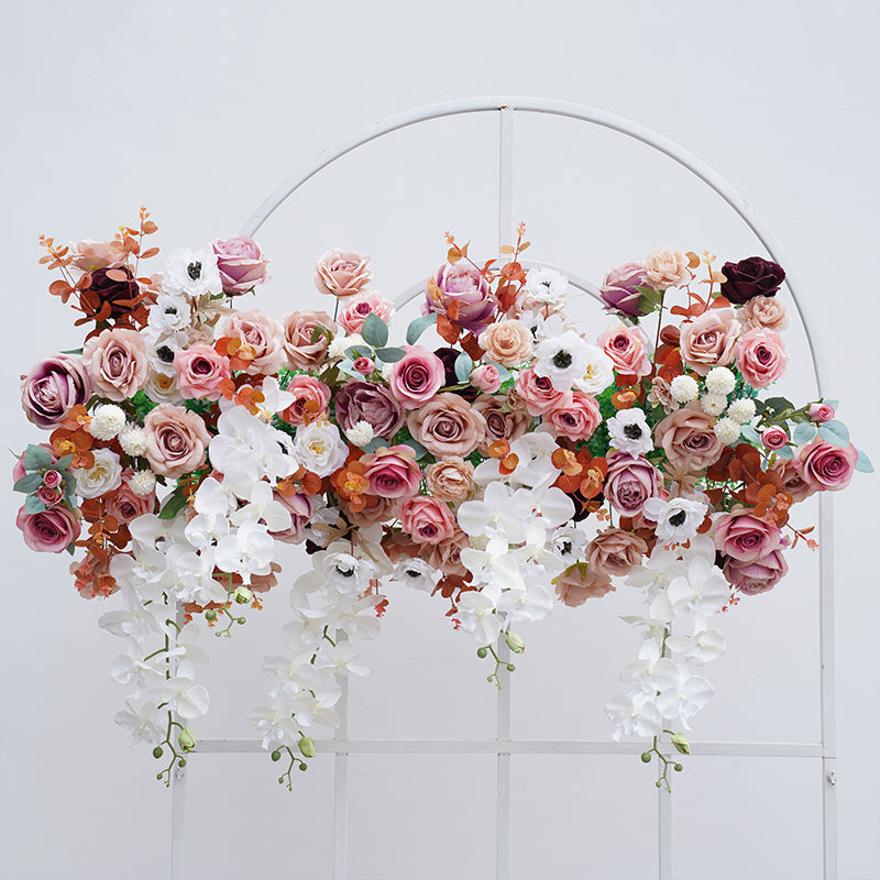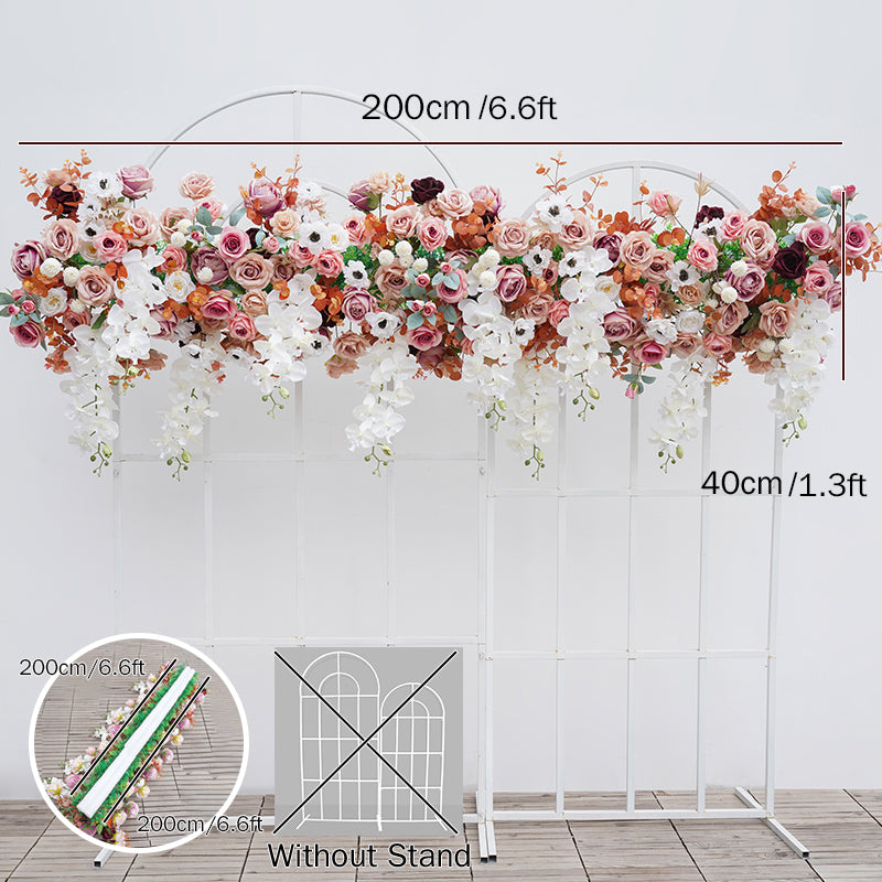 A8739 Pink White Sofa Runner Hang Floral Arrangement Wedding Backdrop Frame Decor
