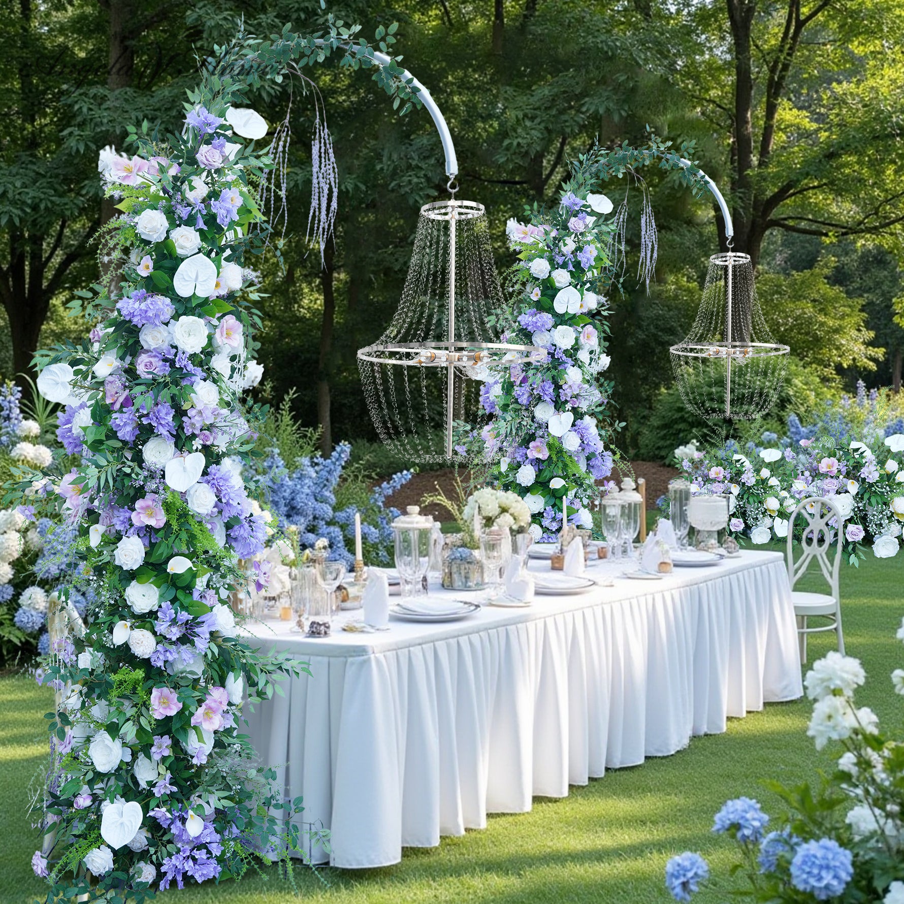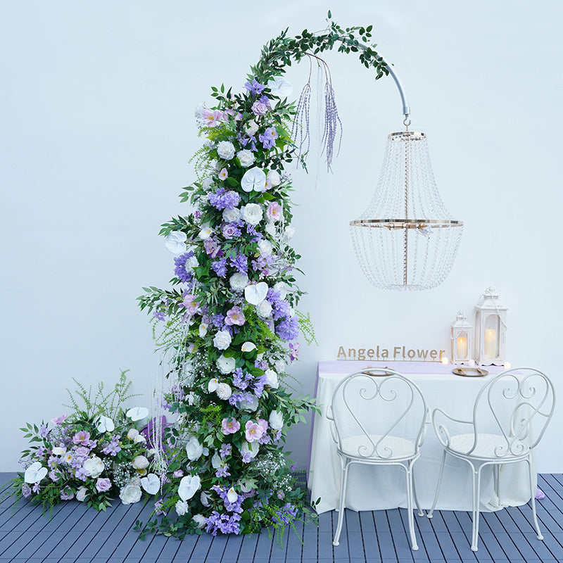 A8789 Purple Greenery Vine Wedding Background Decor Arch Crystal Lamp Aisle Floral
