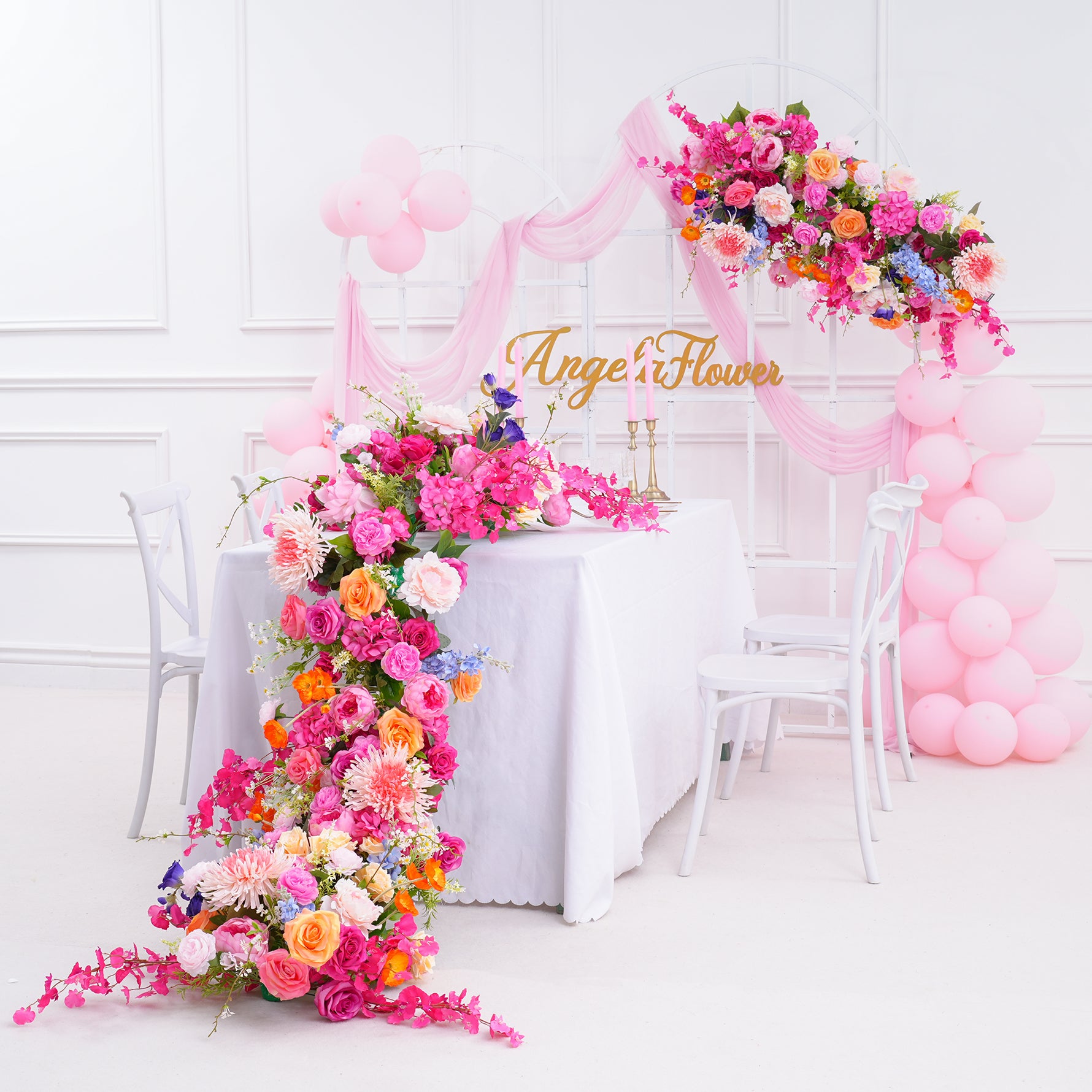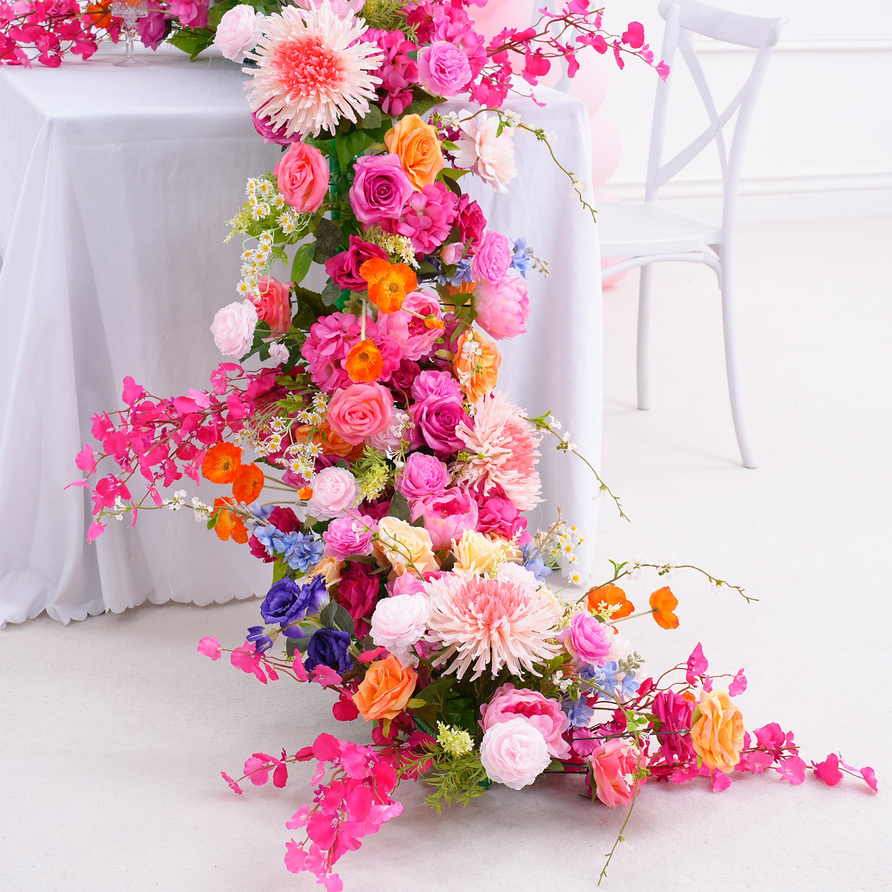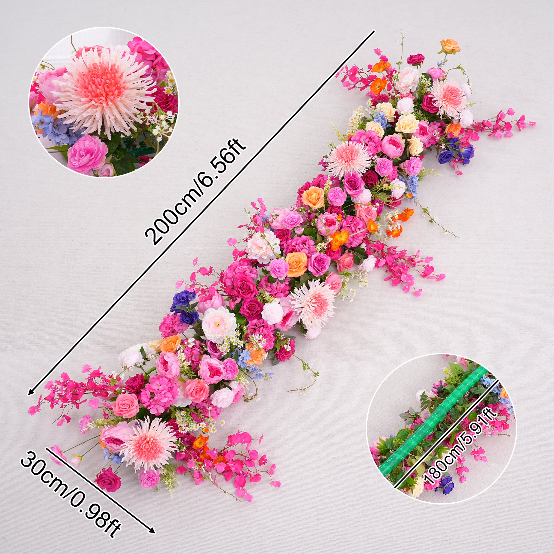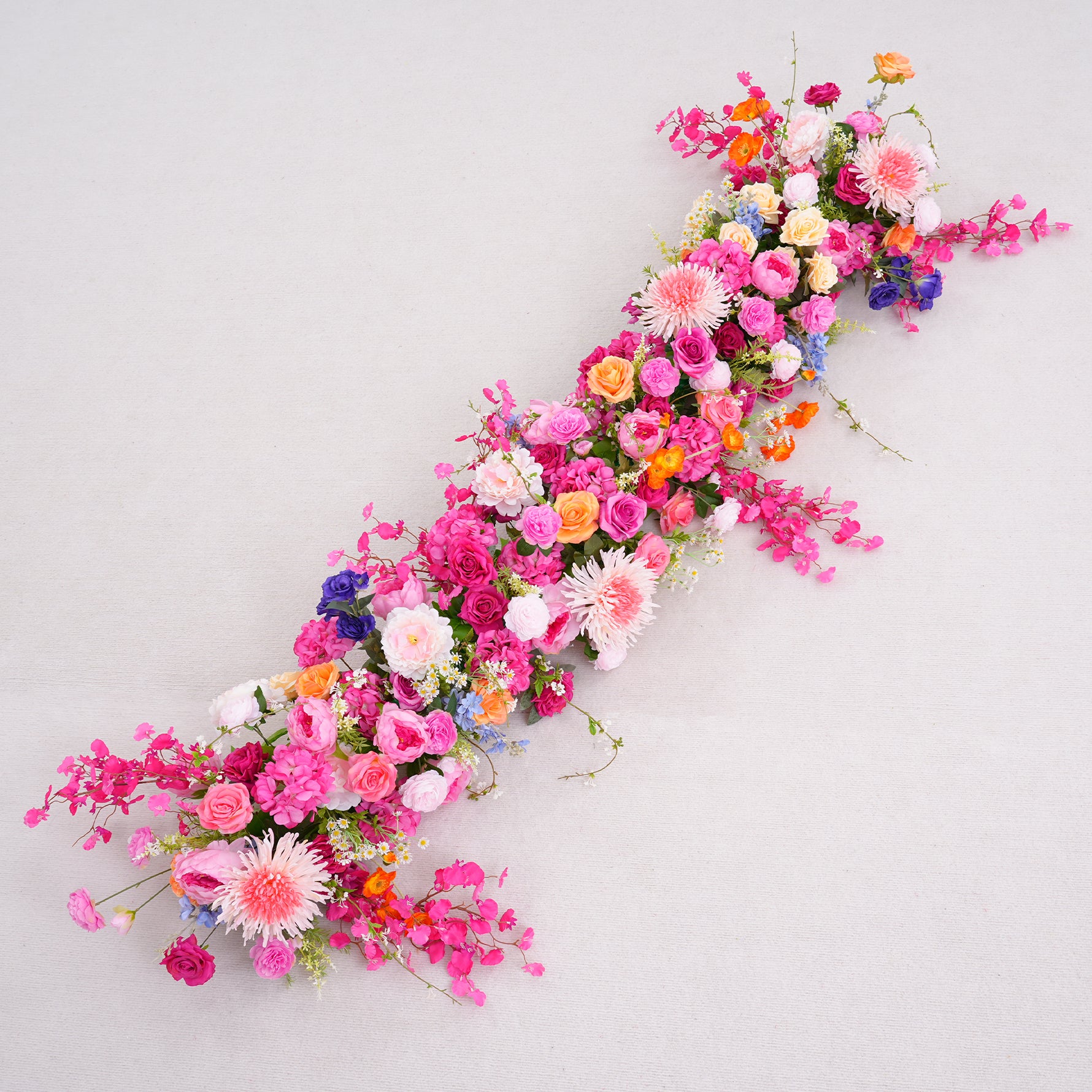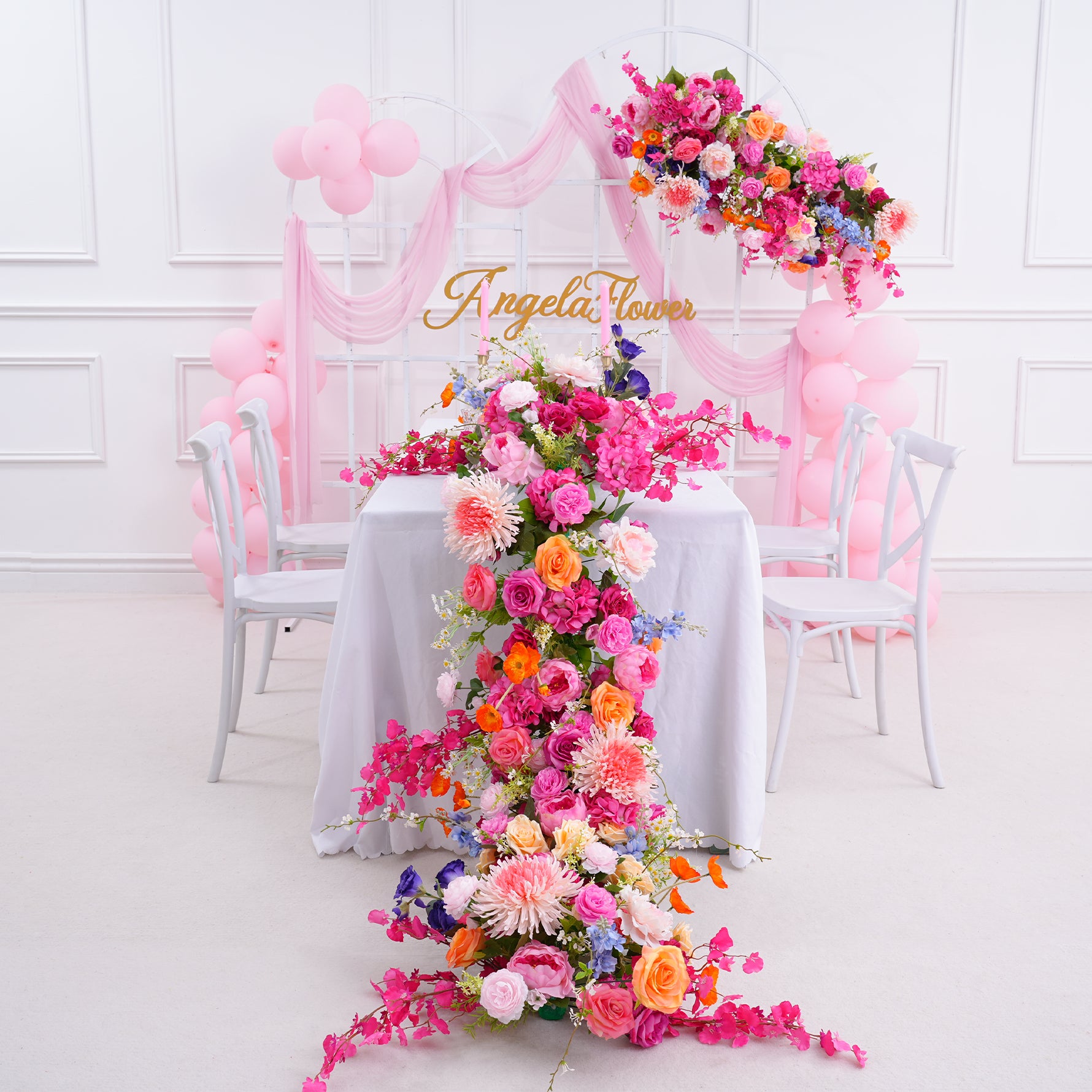 A8808 Hot Pink Flower Row Wedding Backdrop Table Runner Floor Floral Arrangement