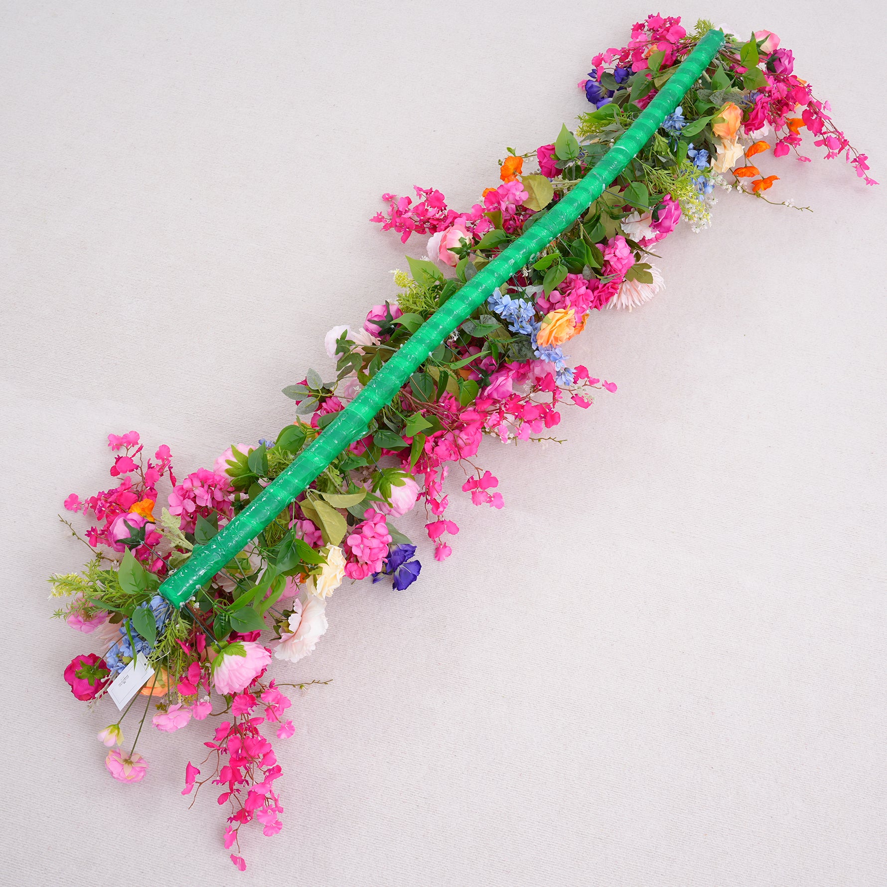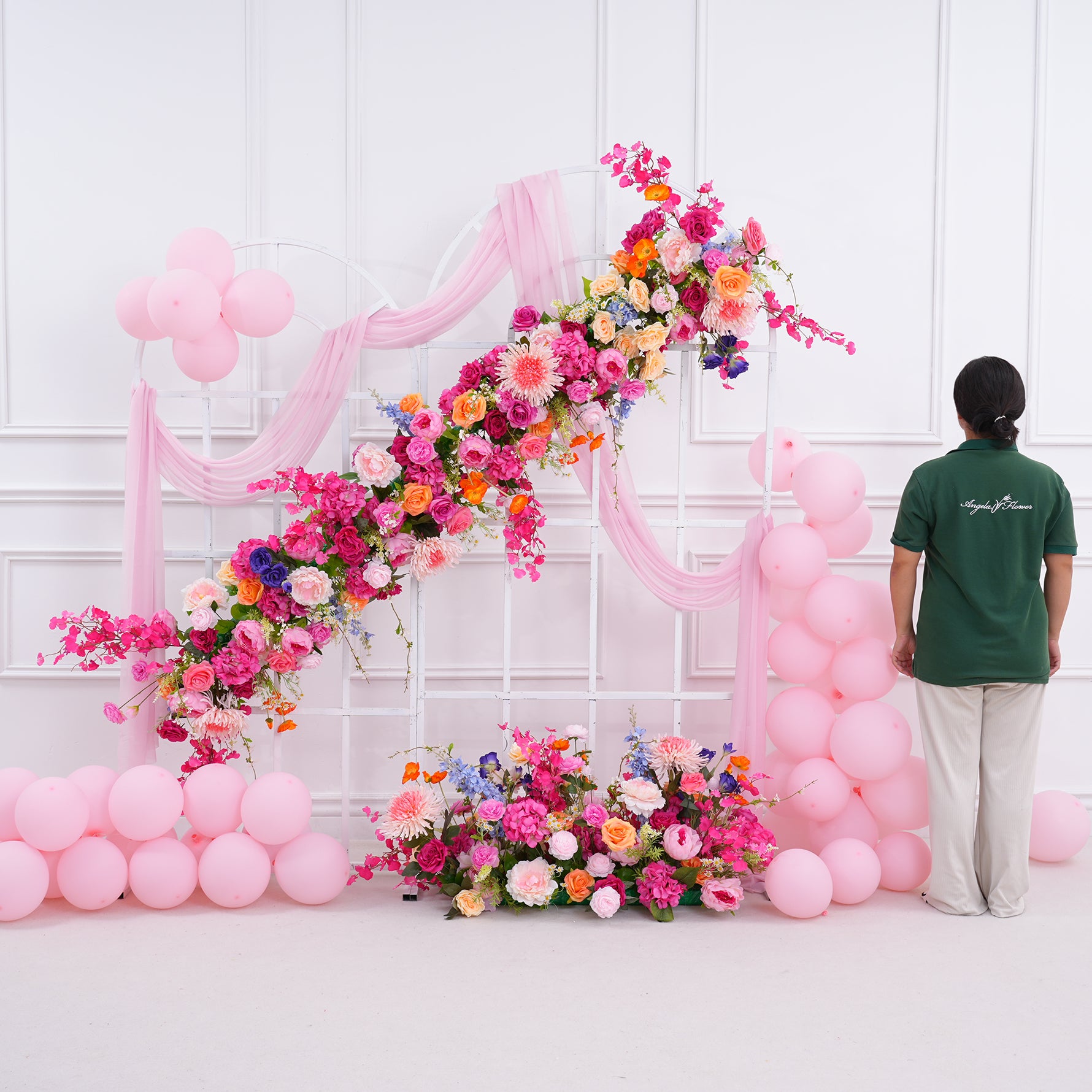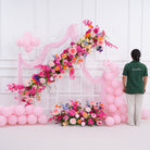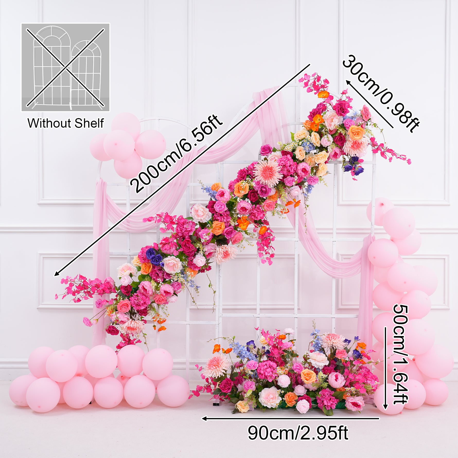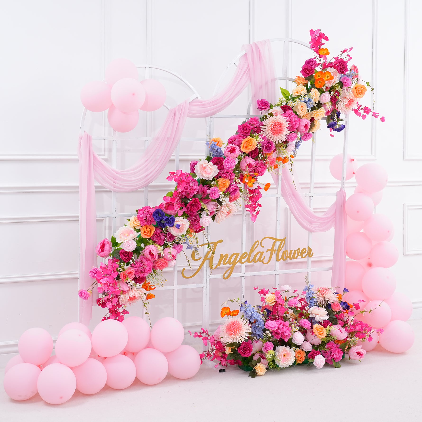 A8808 Hot Pink Flower Row Wedding Backdrop Table Runner Floor Floral Arrangement