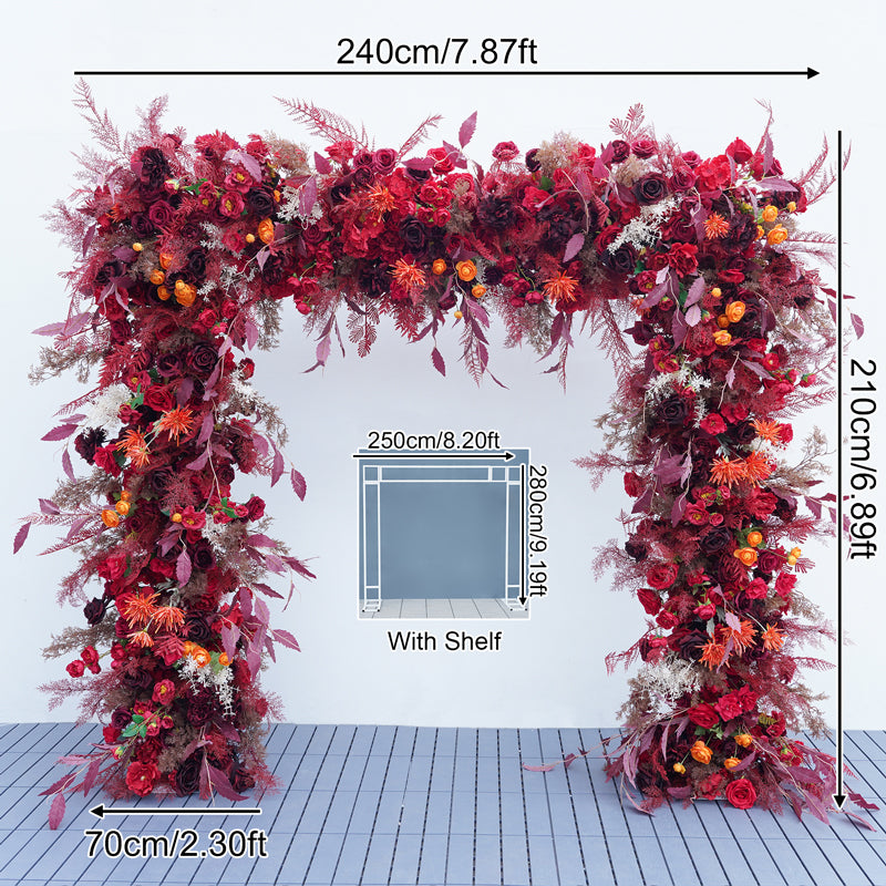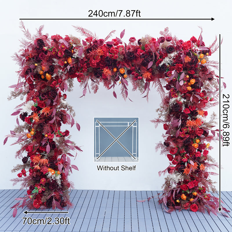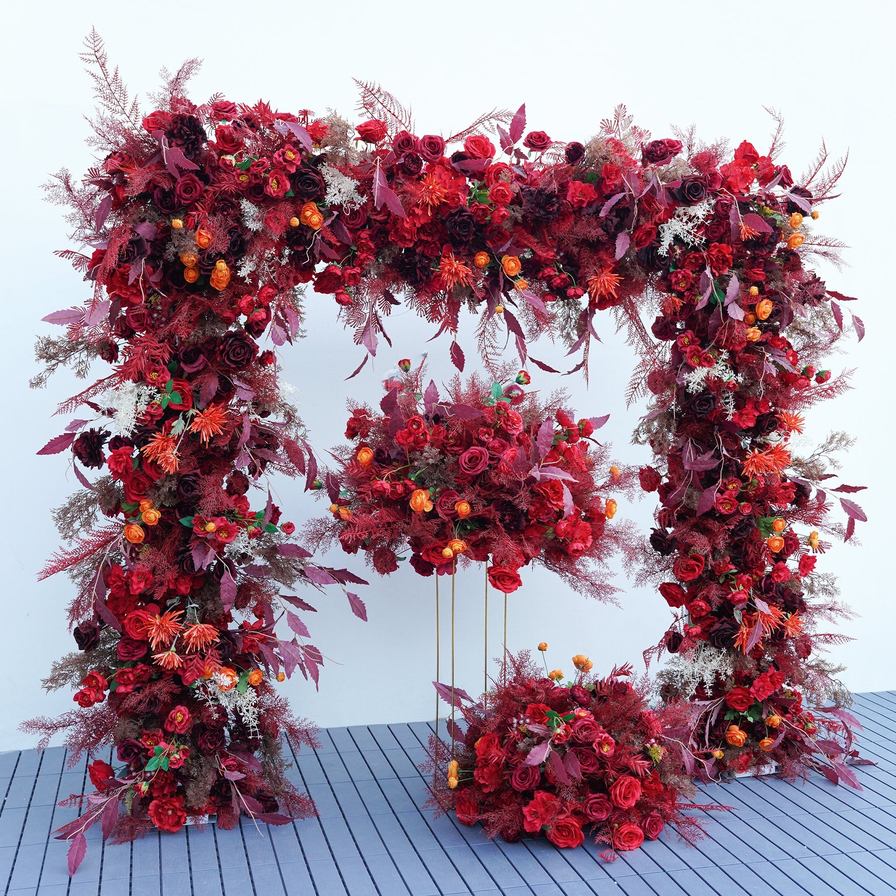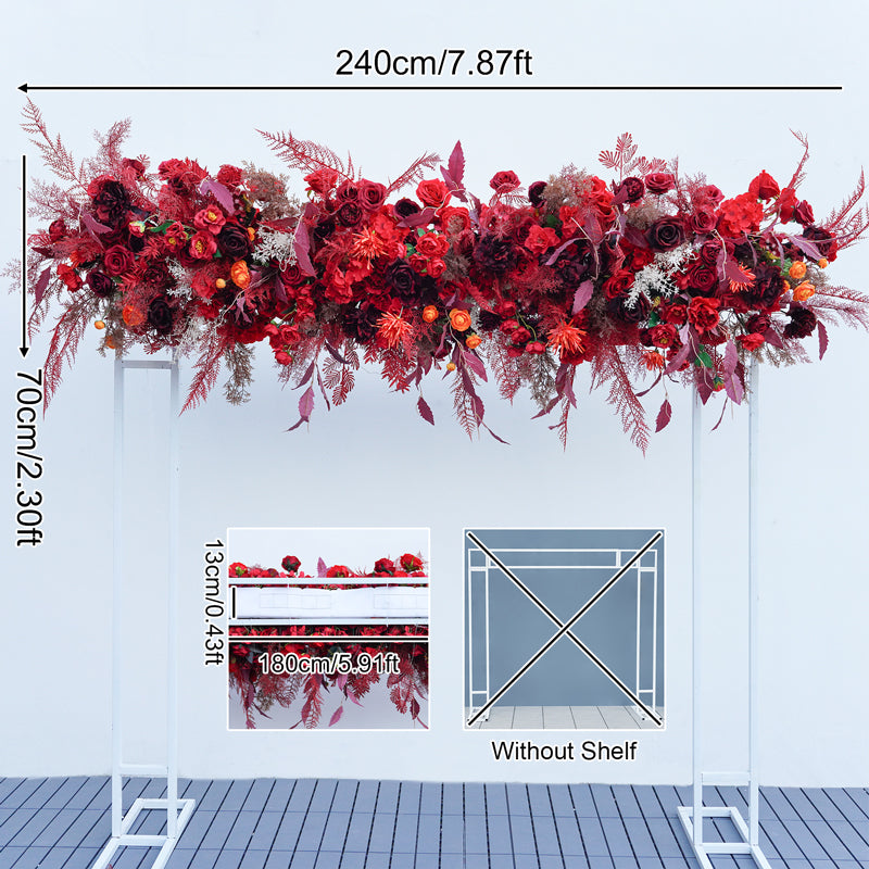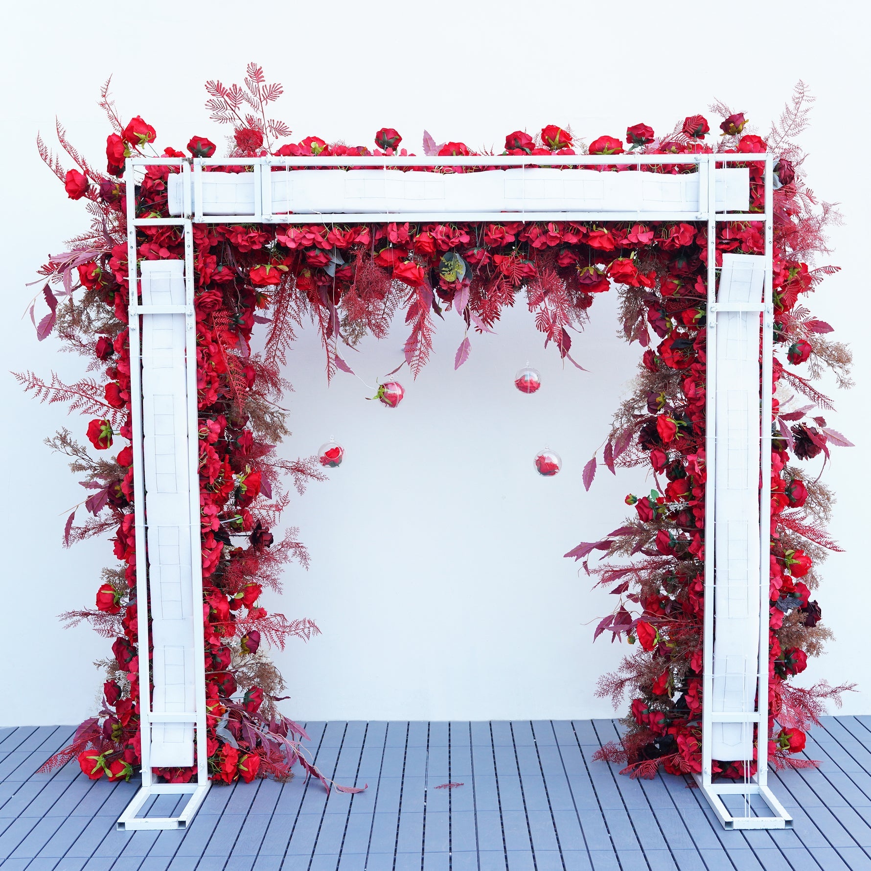 A8809 Burgundy Red Rose Flower Row Runner Square Frame Wedding Backdrop Arrangement