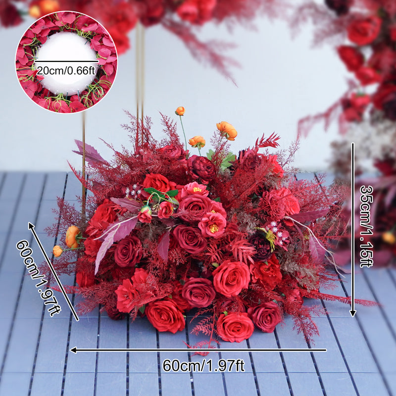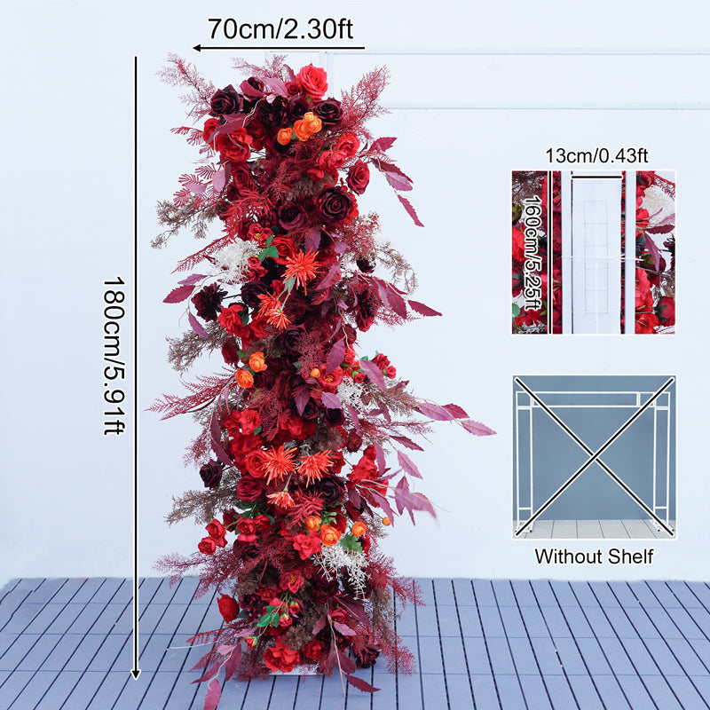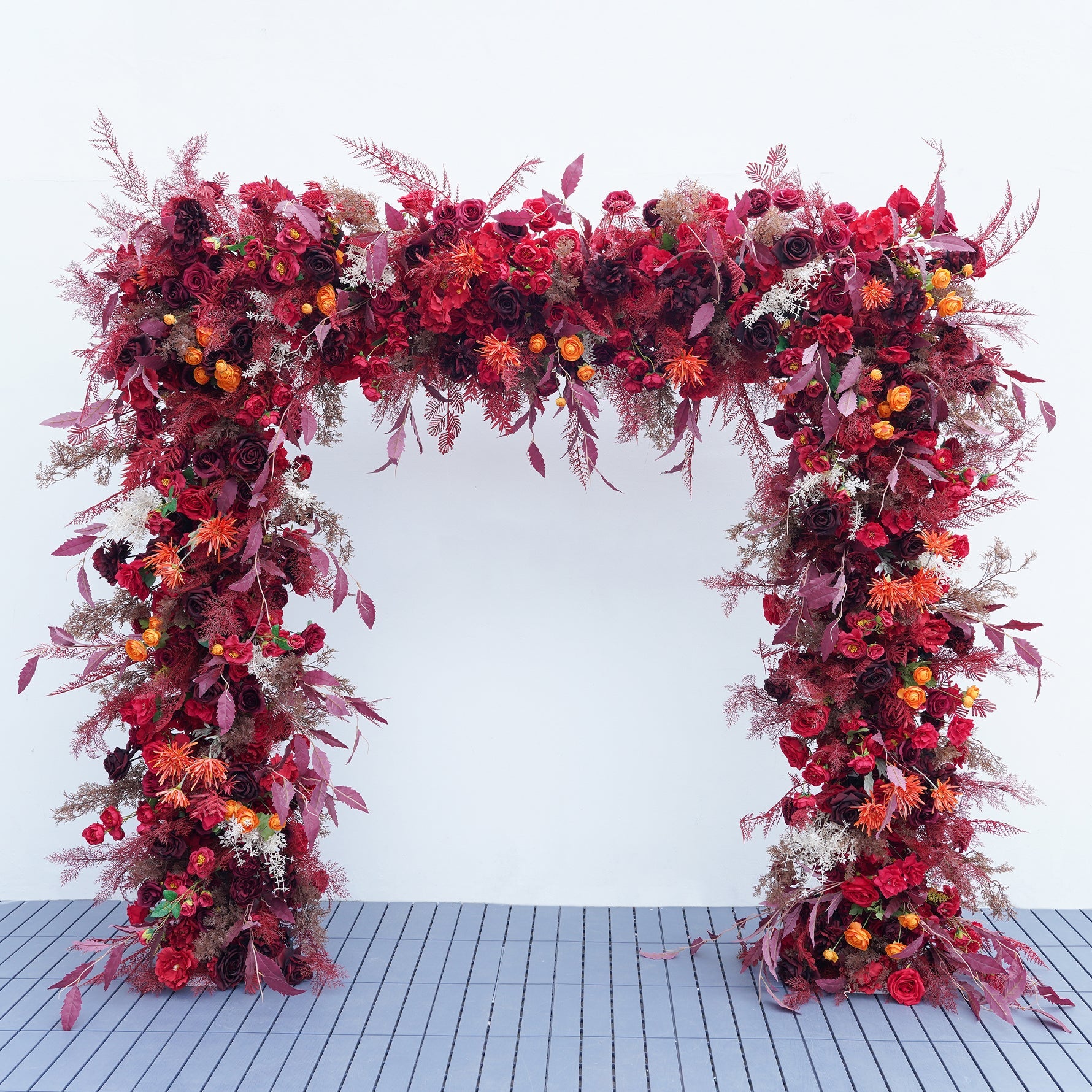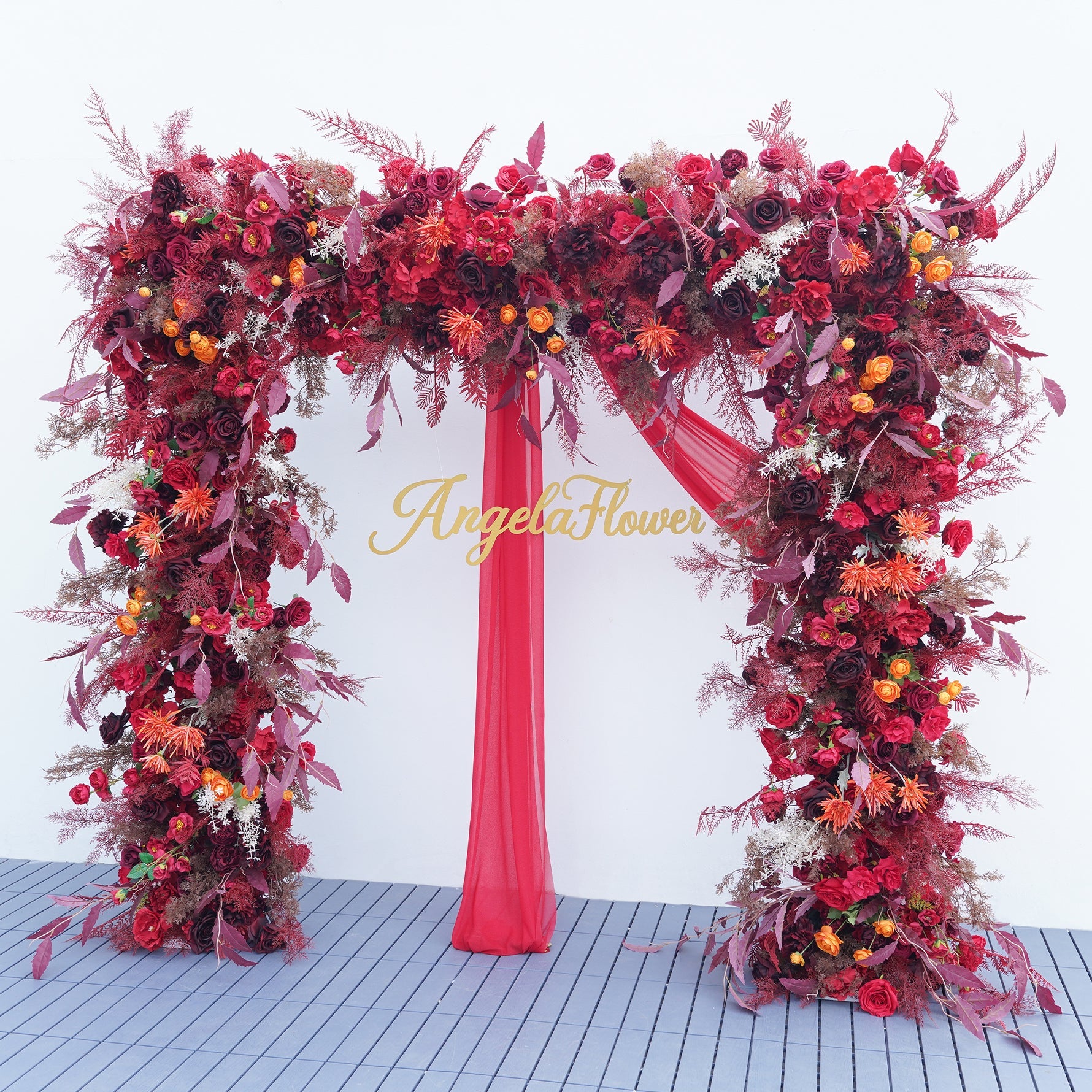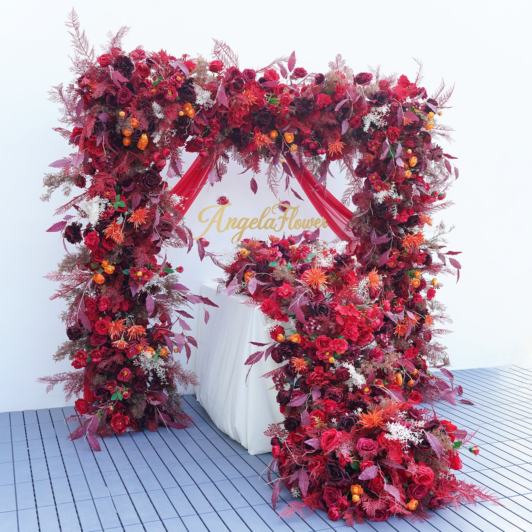 A8809 Burgundy Red Rose Flower Row Runner Square Frame Wedding Backdrop Arrangement
