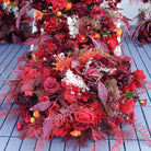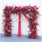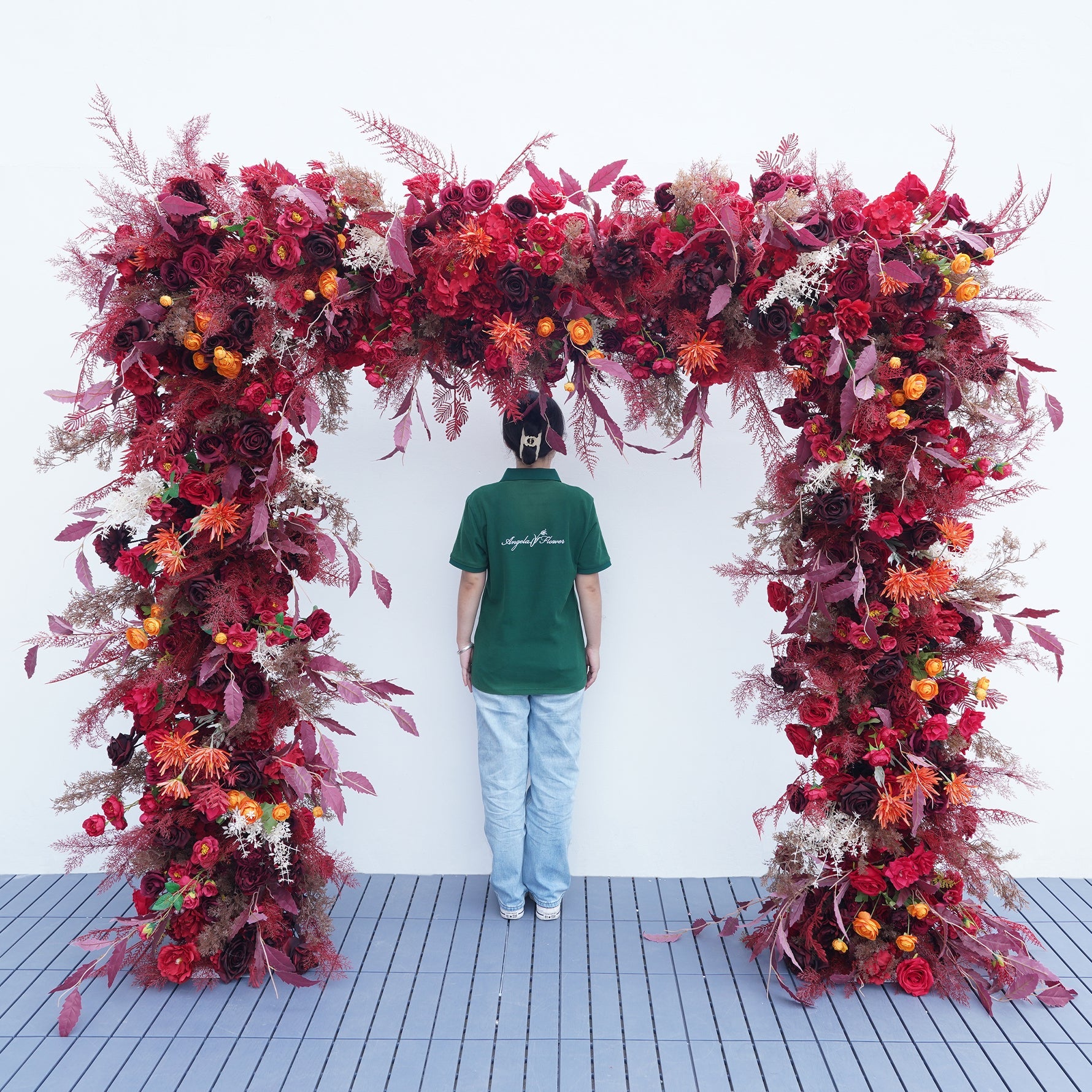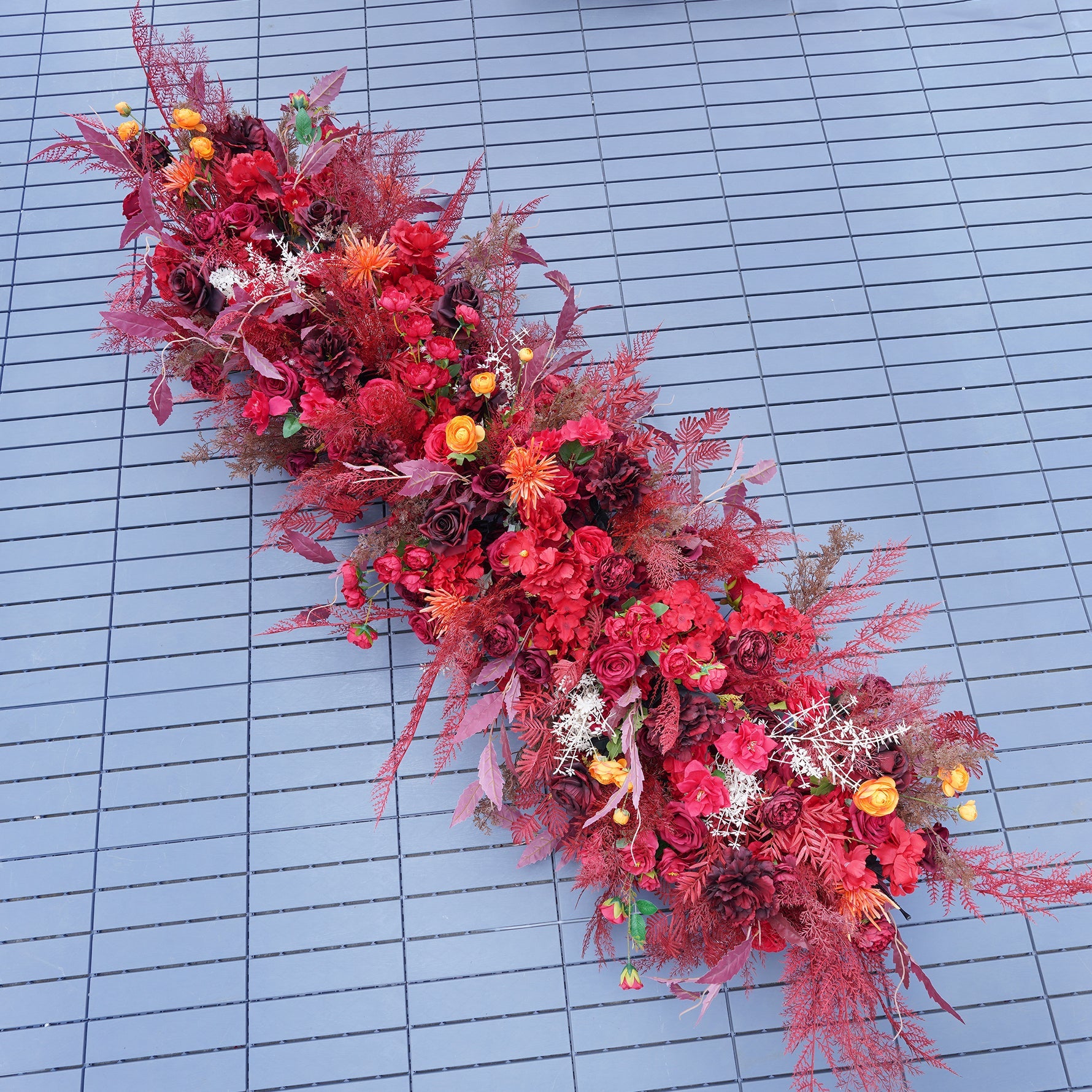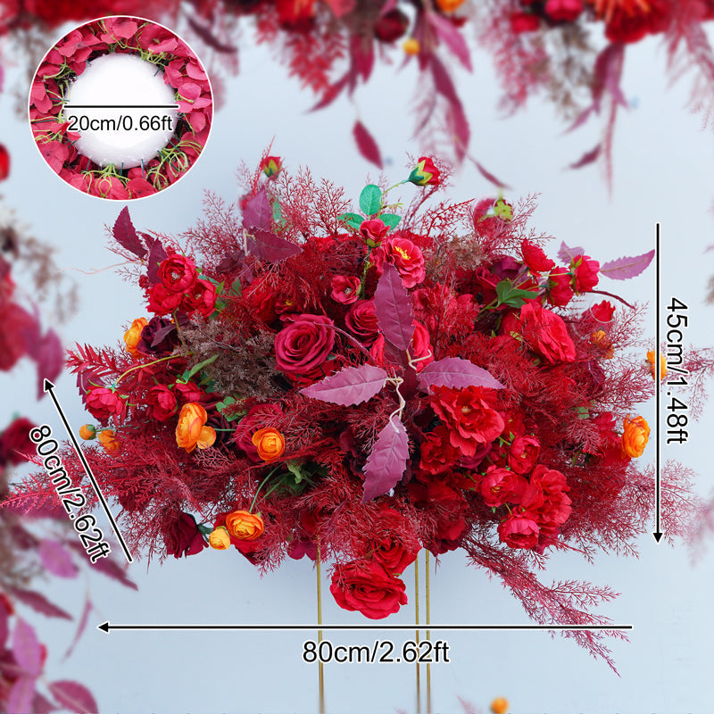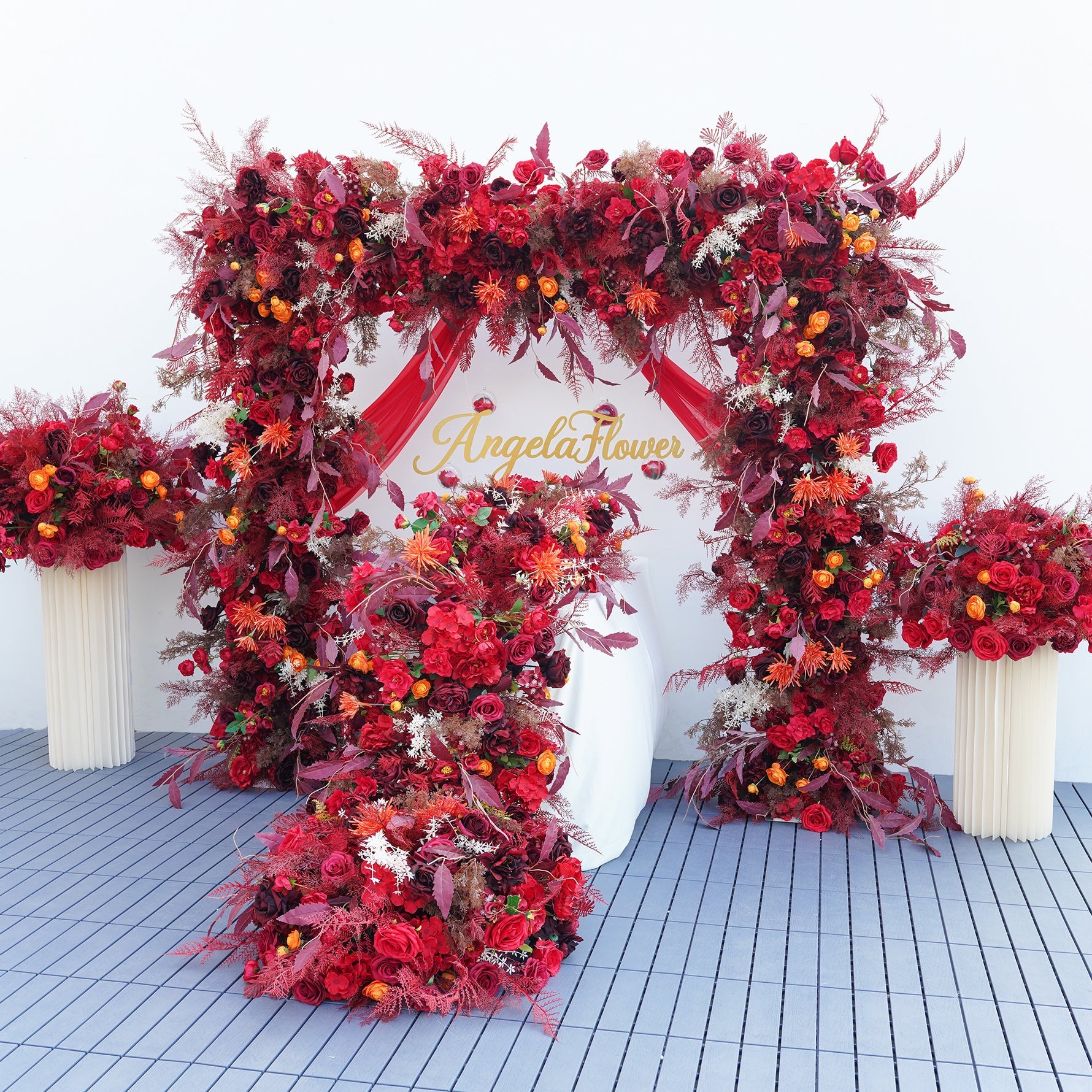 A8809 Burgundy Red Rose Flower Row Runner Square Frame Wedding Backdrop Arrangement