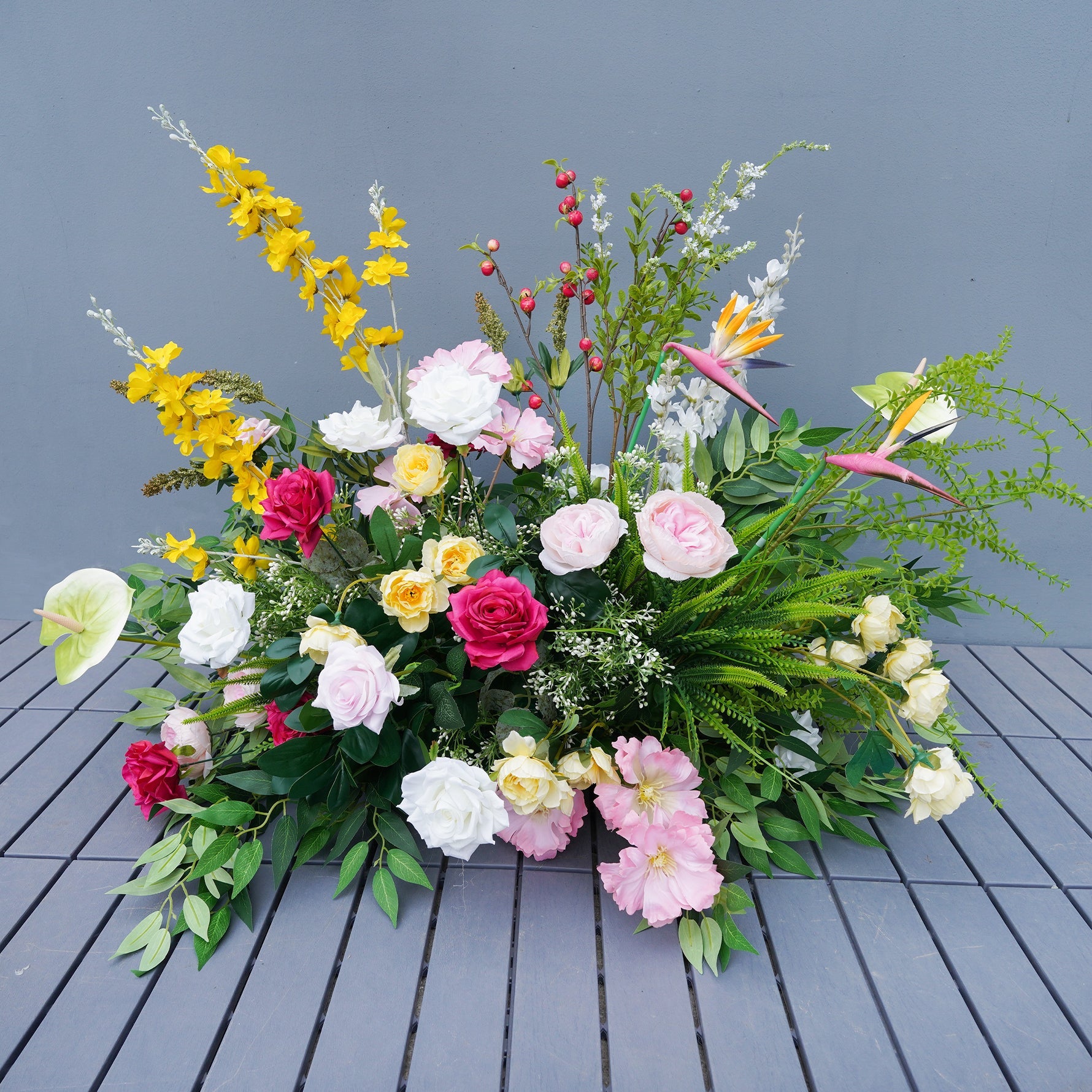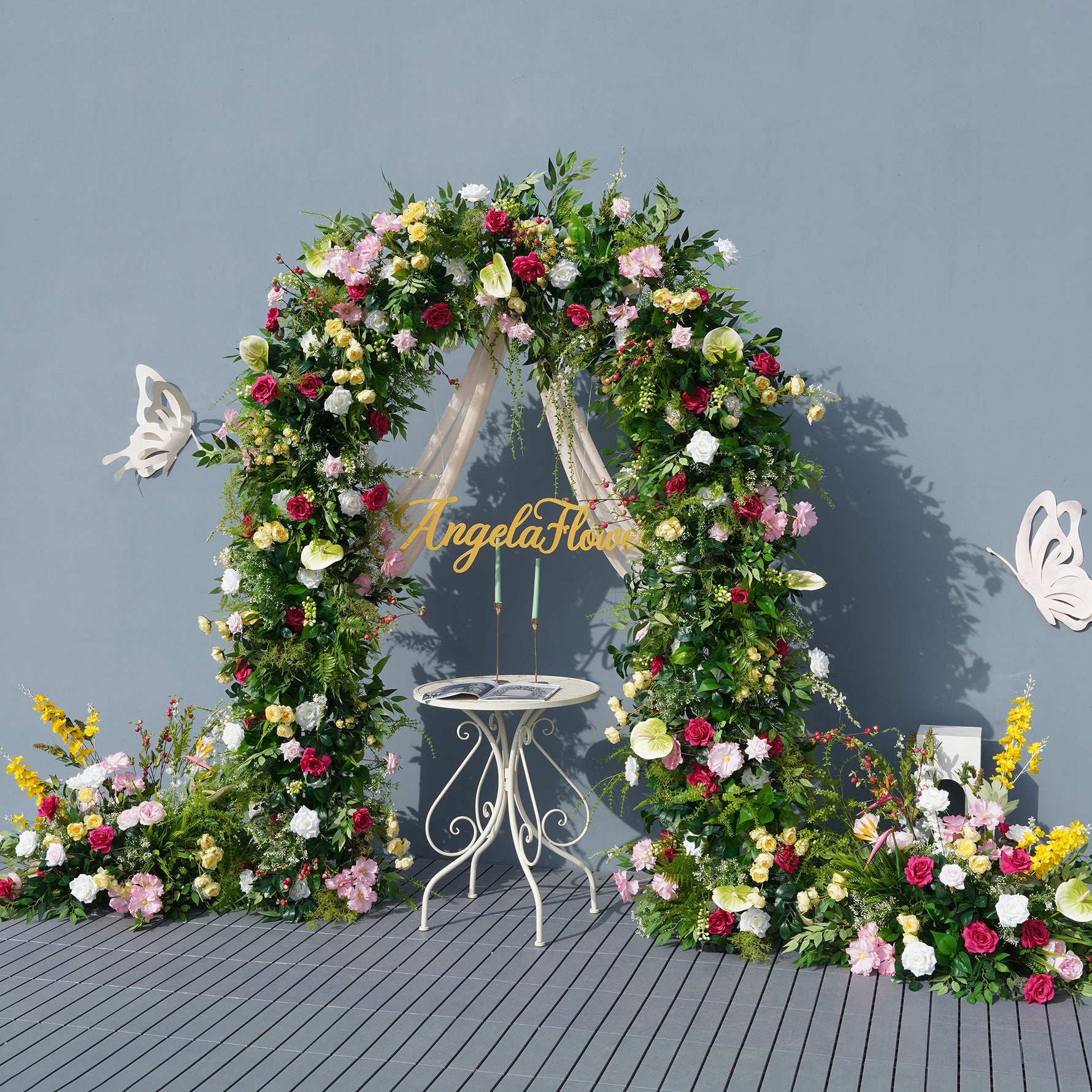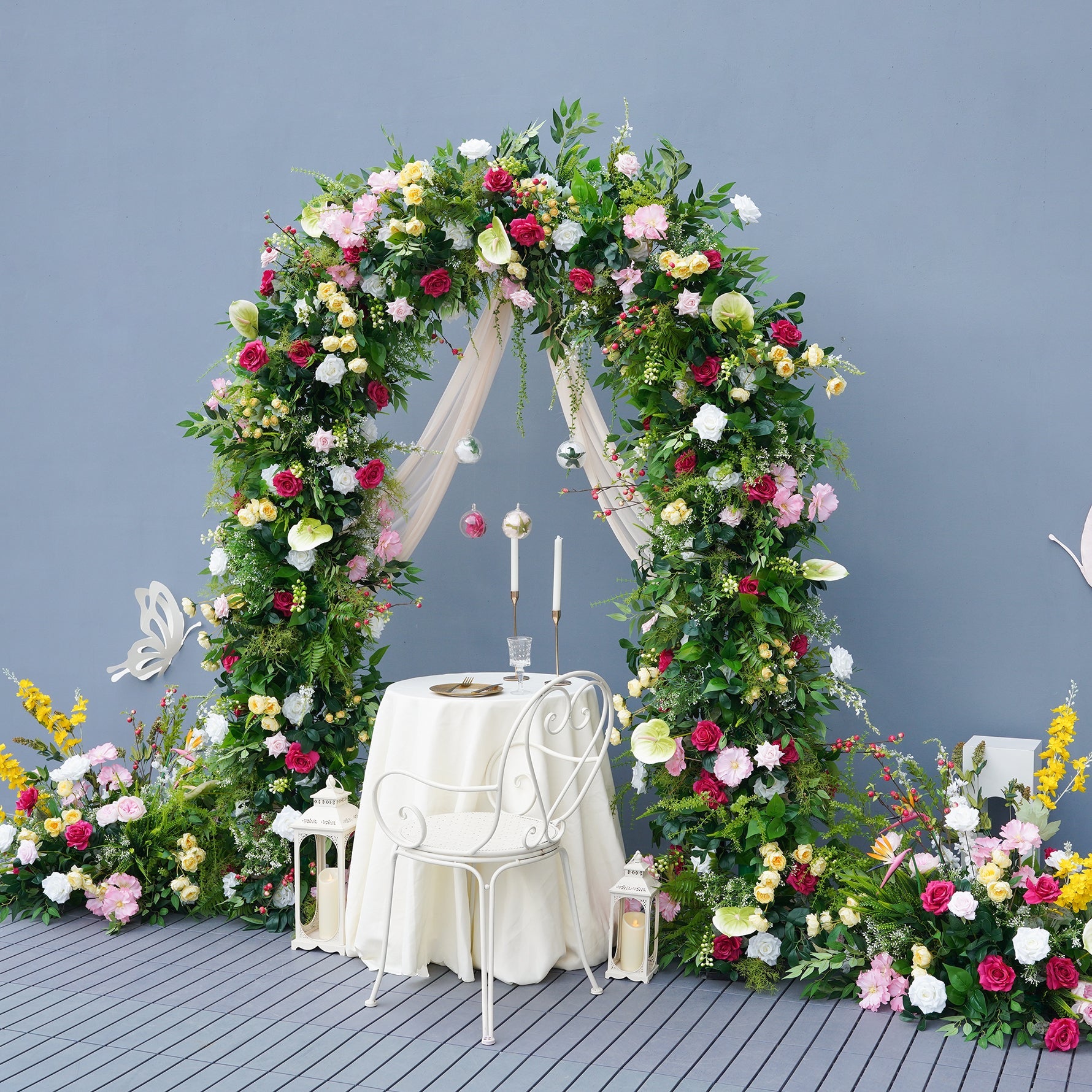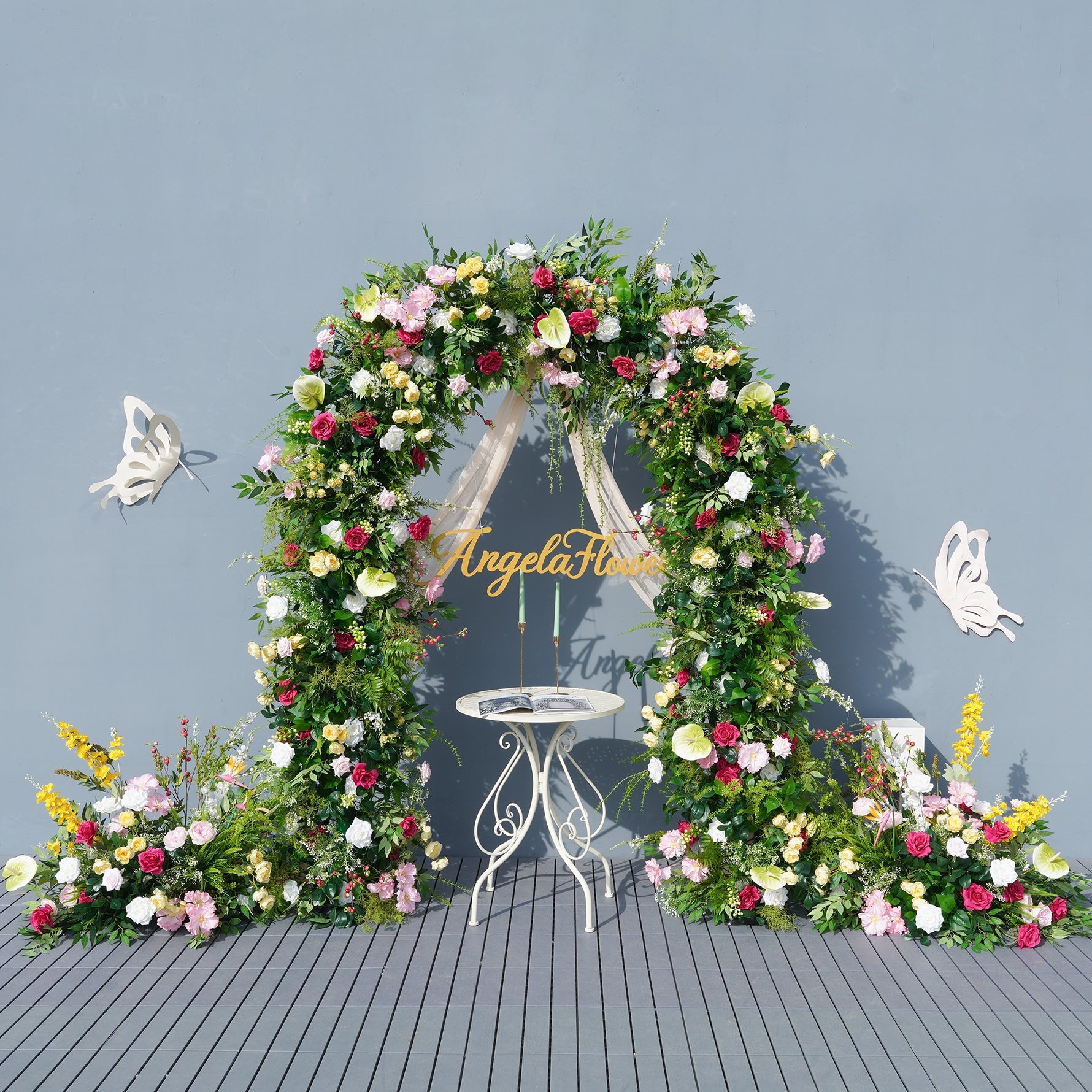 A8834 Green Plant Floral Arrangement Floor Row Wedding Backdrop Arch Frame
