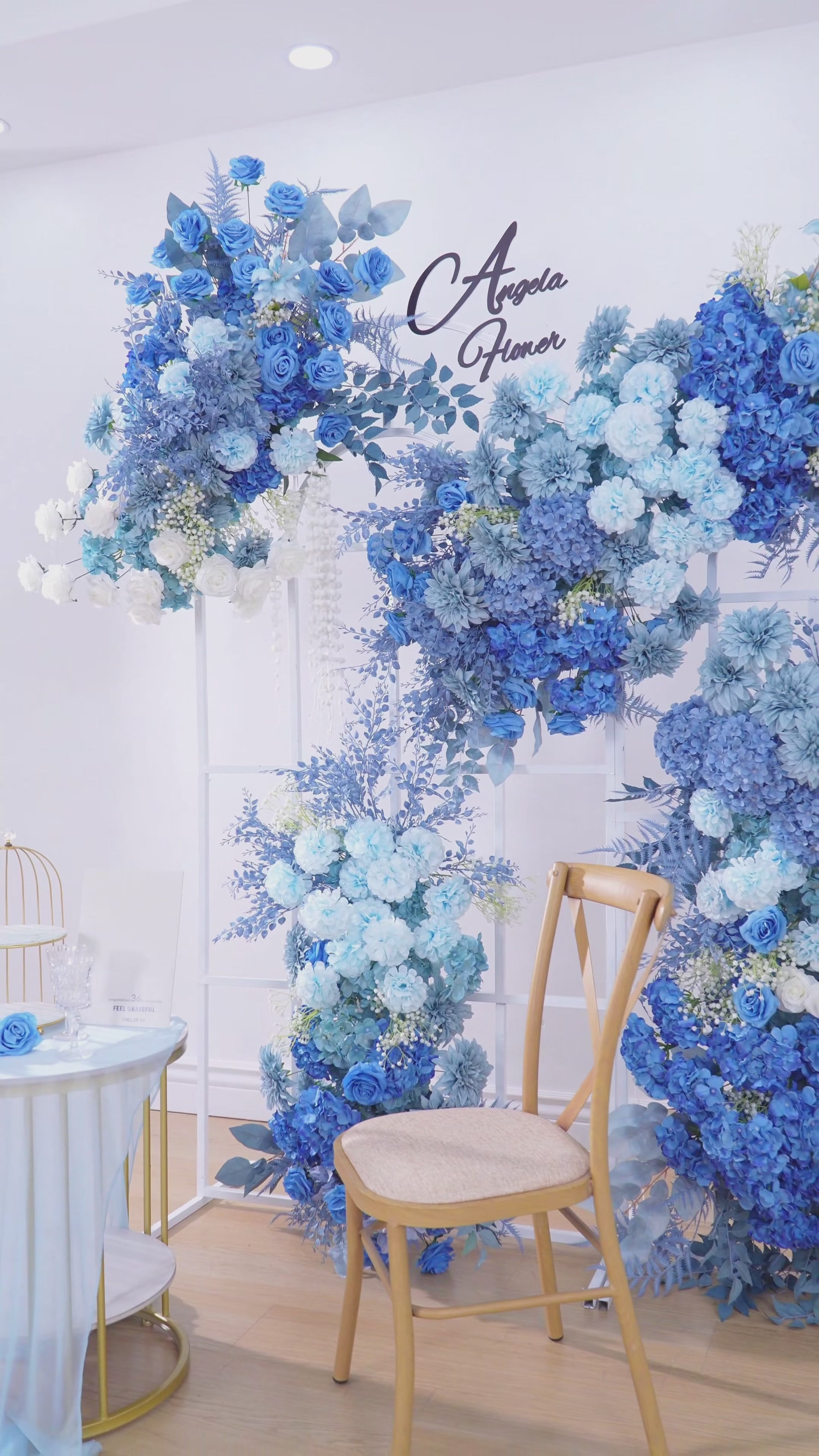 Color Inspiration: Blue is the color of the sea, the color of the sky, but also the color of love. Different shades of blue with different kinds of flowers to create a full effect, layers of flowers intertwined and staggered, the special blue color with both hazy beauty and a sense of high class, and then add a little white roses for the wedding to bring a touch of purity. Give you to create a blue dreamy romantic theme wedding.