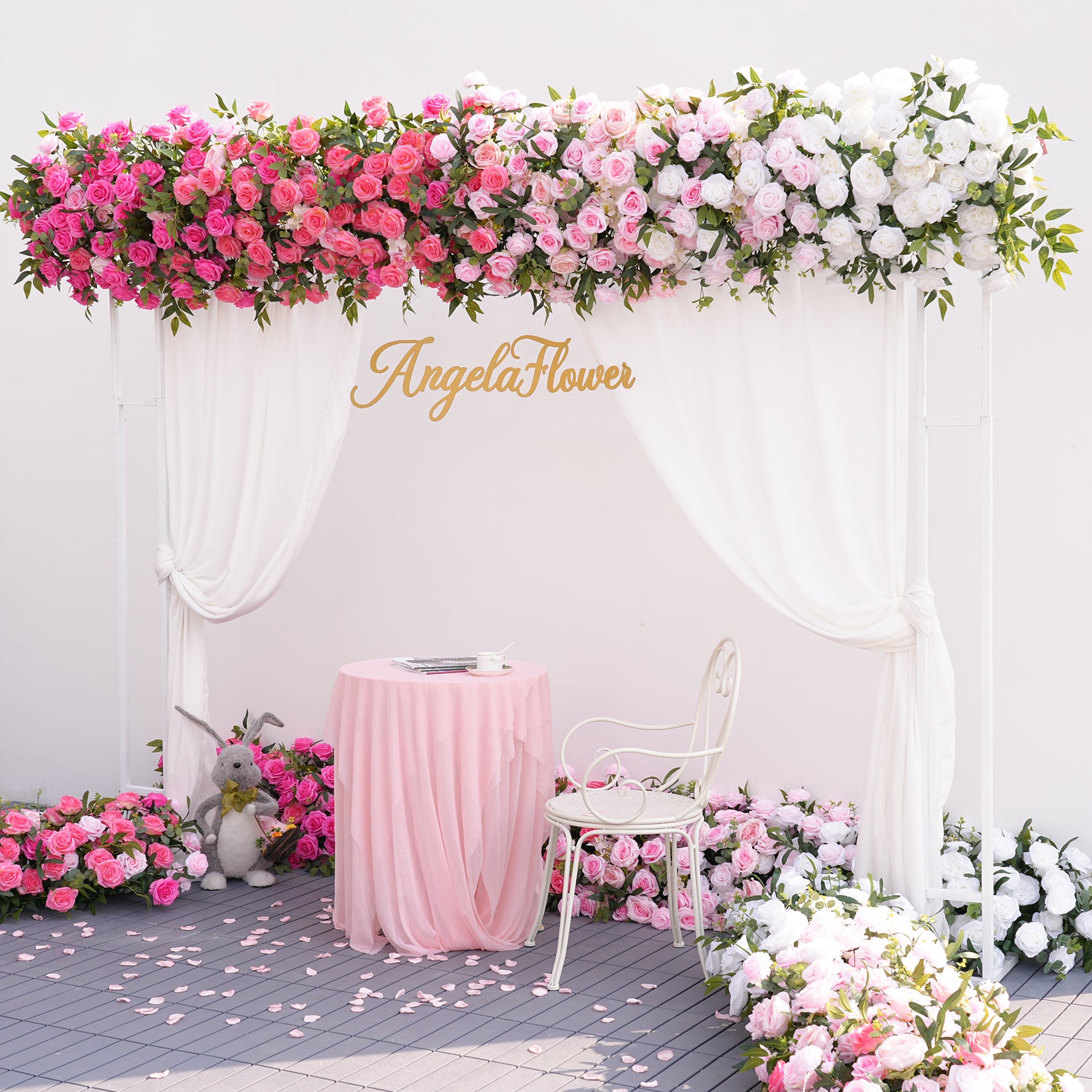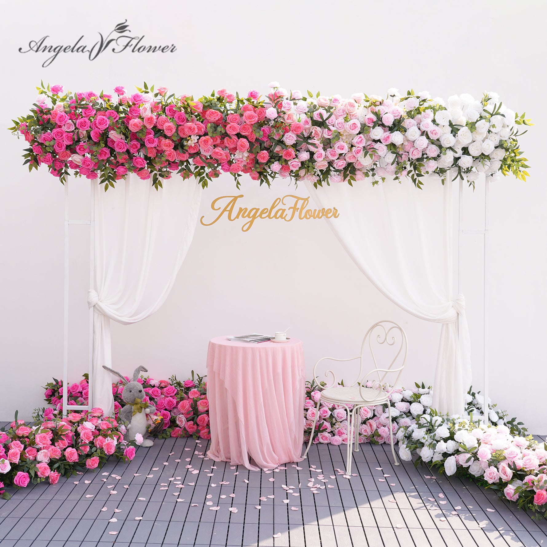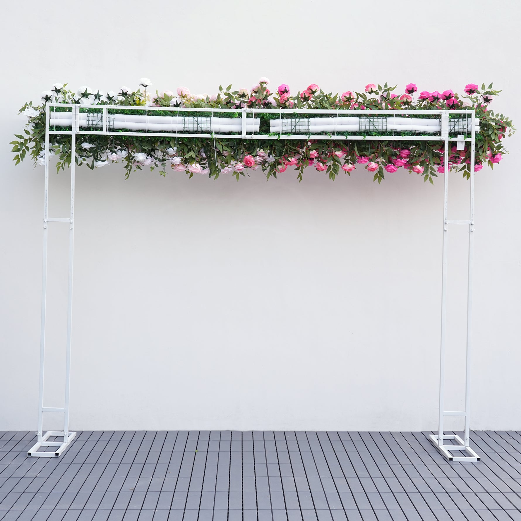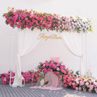 A8909 Gradient Pink White Rose Greenery Flower Row Wedding Backdrop Event Props