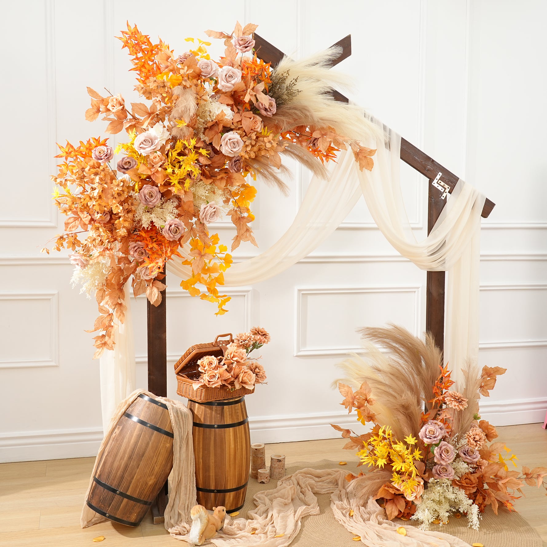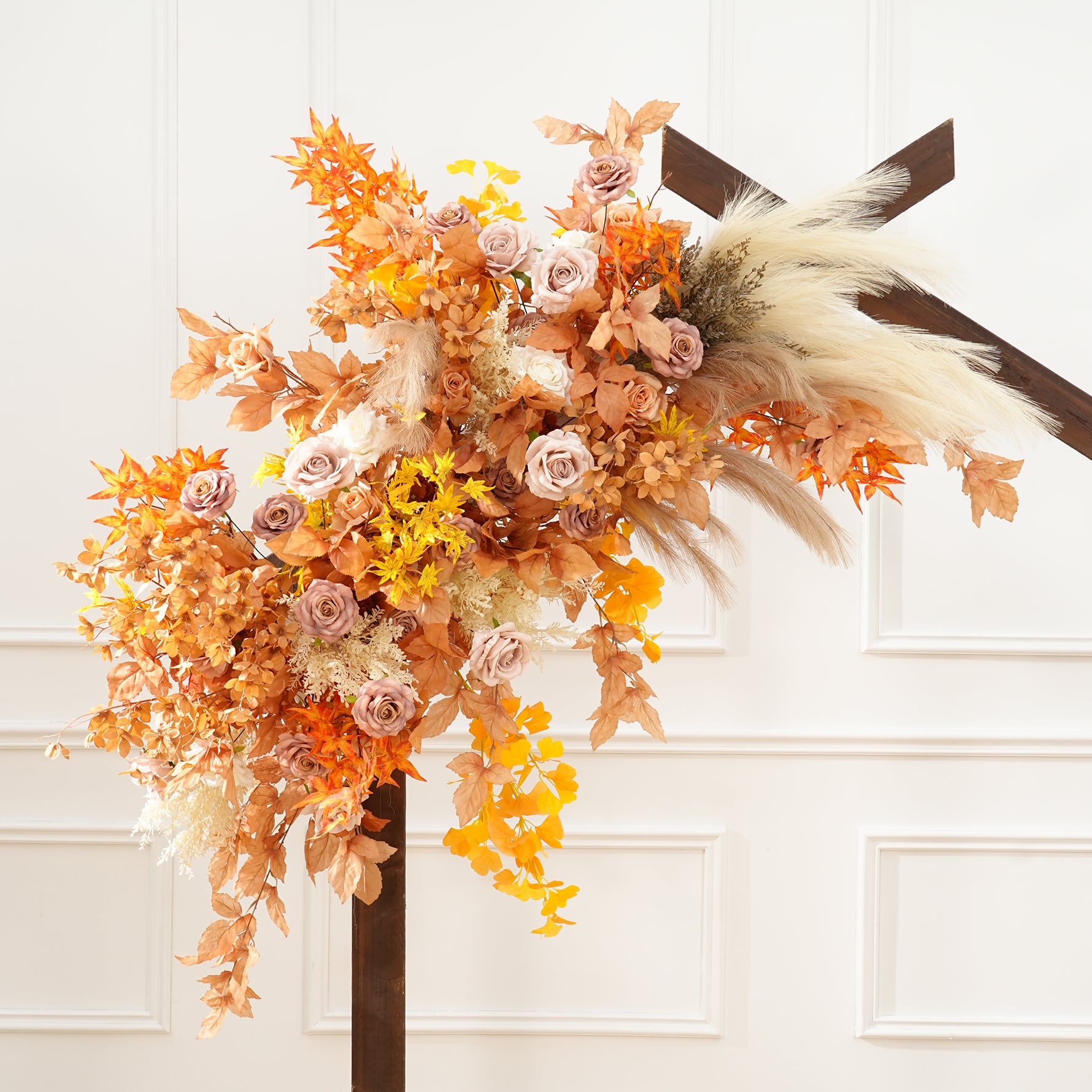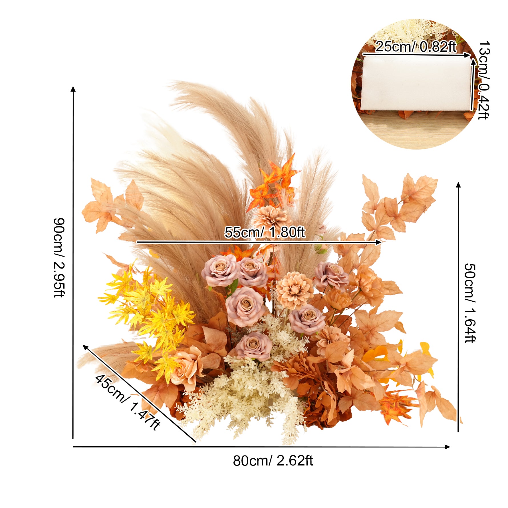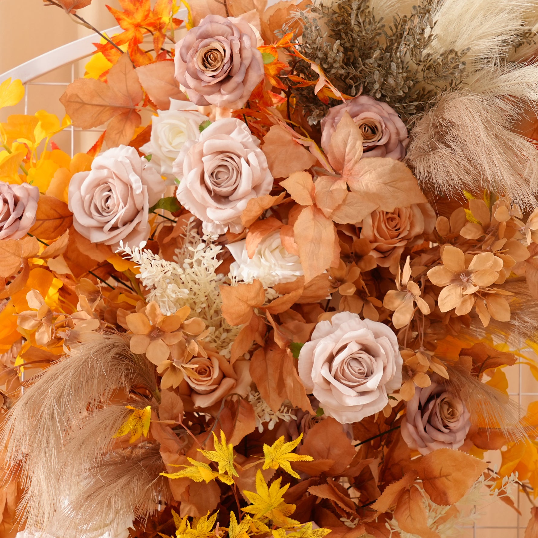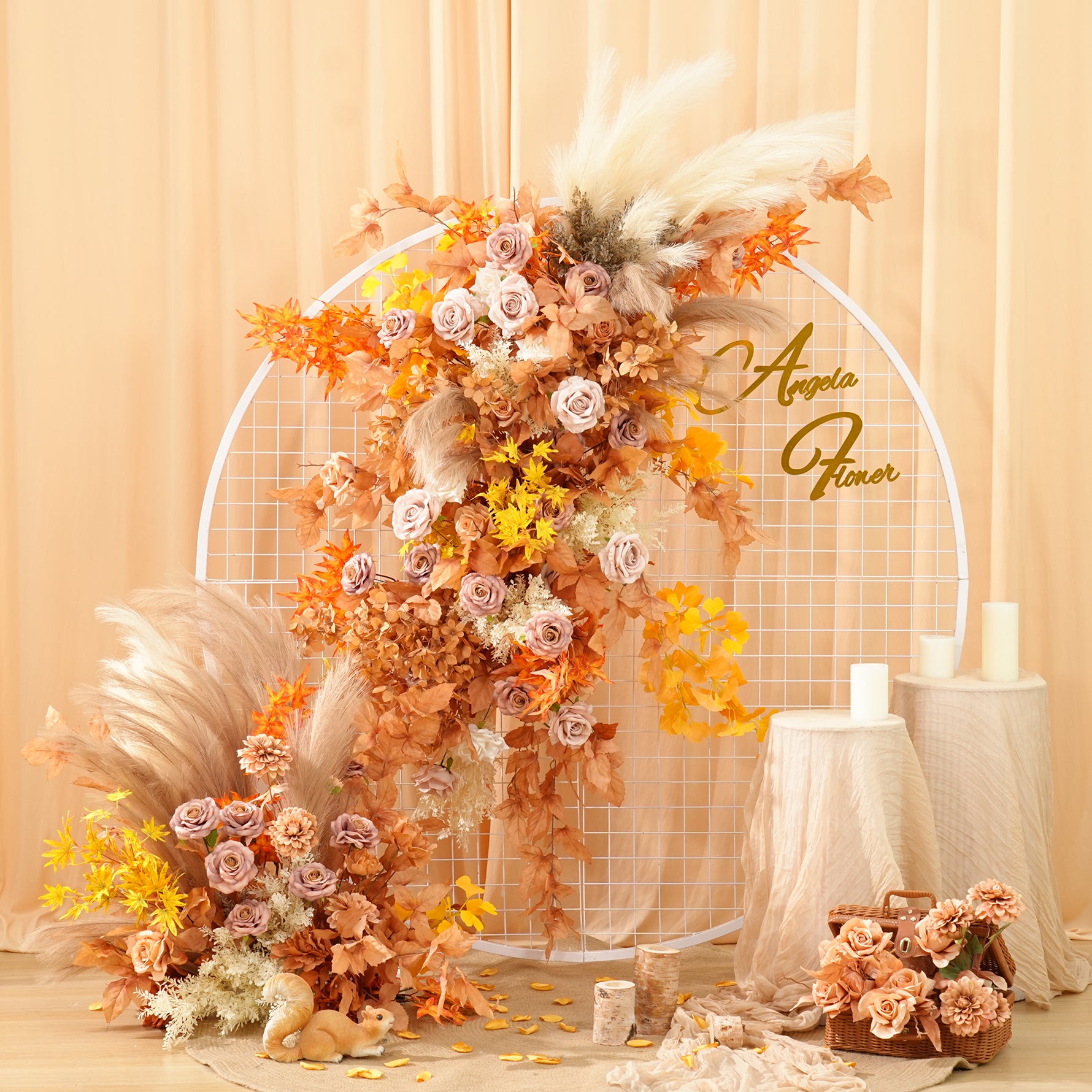 Color Inspiration: This autumnal coffee-colored hanging and floor flower set is crafted with roses, hydrangeas, maple leaves, pampas grass and other simulated flowers, showing the warmth and romance of autumn. The coffee color tone is calm and elegant, adding a warm atmosphere to the space. Maintenance-free and easy to install, suitable for home, store and event decoration.