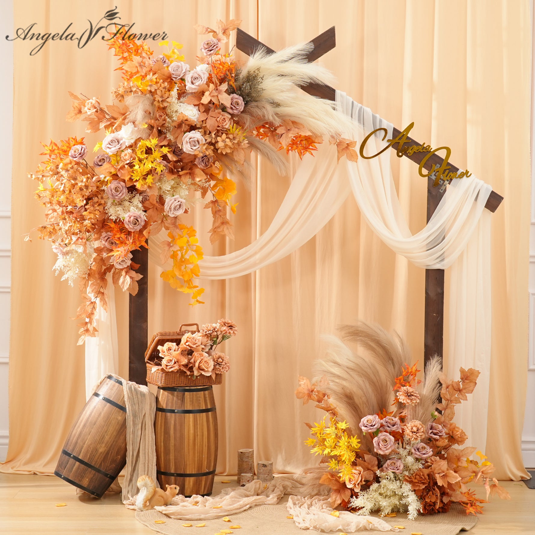 A8985 Autumn Coffee Leaves Pampas Grass Hang Floral Aisle Flower Wedding Supplies