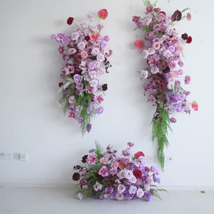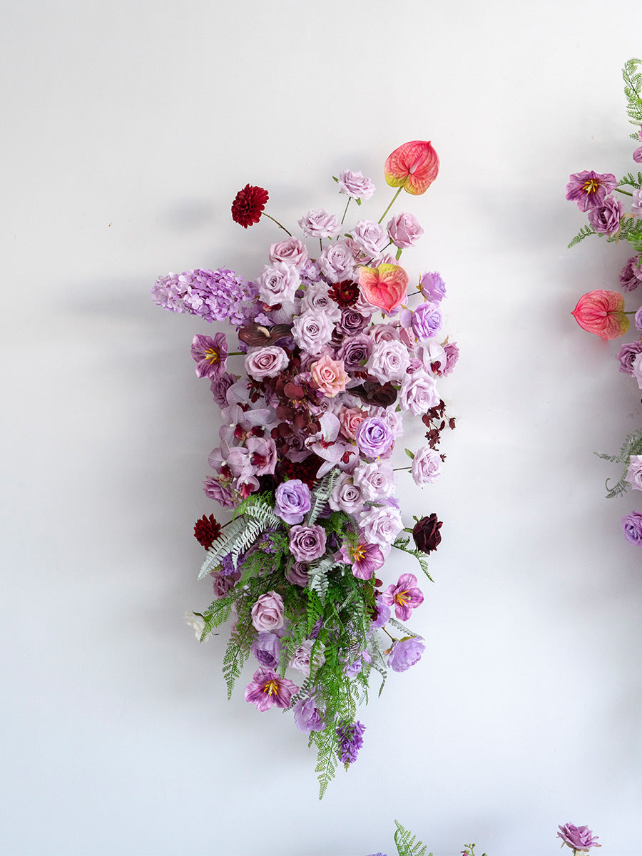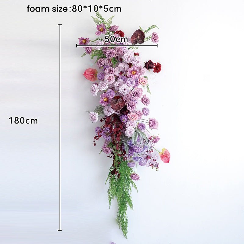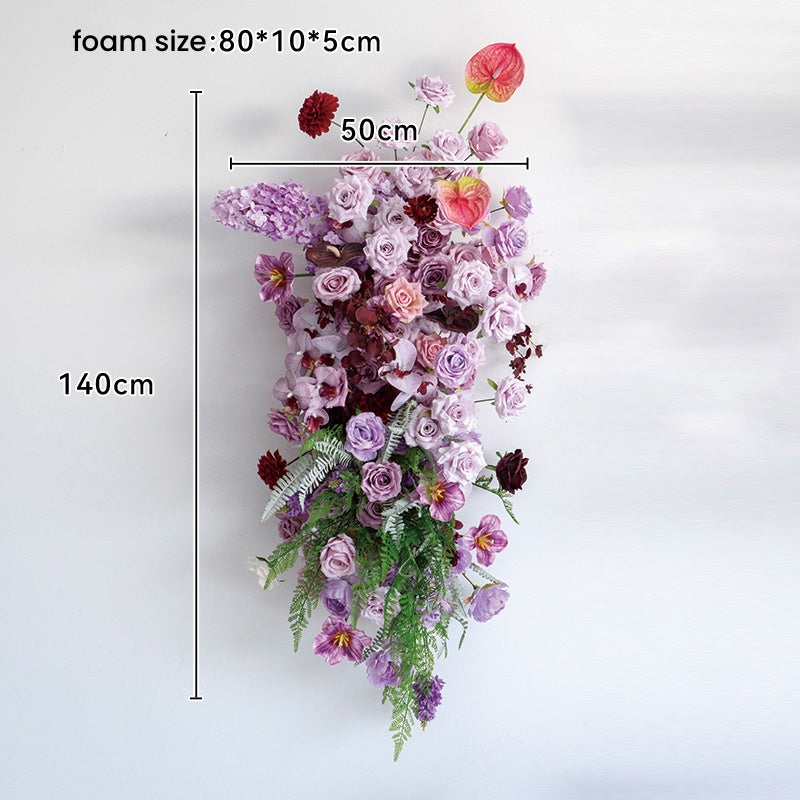 Purple Rose Green Leaf Hang Flower Row Decor Wedding Backdrop Frame Stage