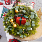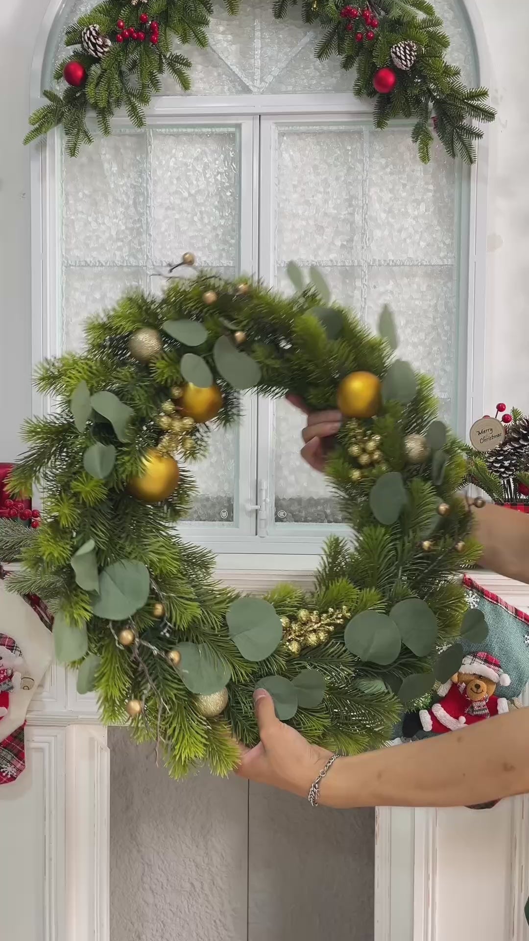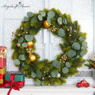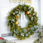 SD0459 Gold Berry Pine Needles Christmas Hanging Garland Wreath