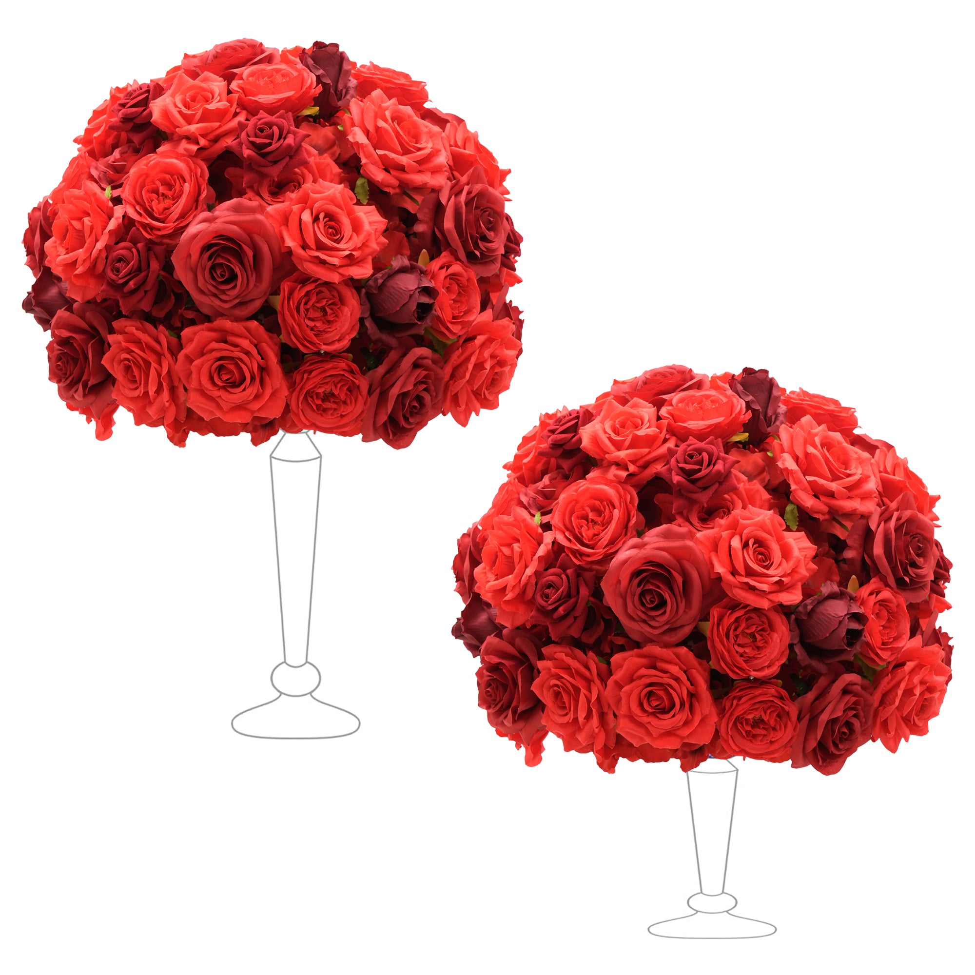 Color Inspiration: Make a statement with our bold set of two 40cm red rose floral balls. Ideal for festive celebrations, store displays, or adding a pop of color to your home. Perfect for indoor or outdoor use. Create an unforgettable ambiance with these versatile floral accents!