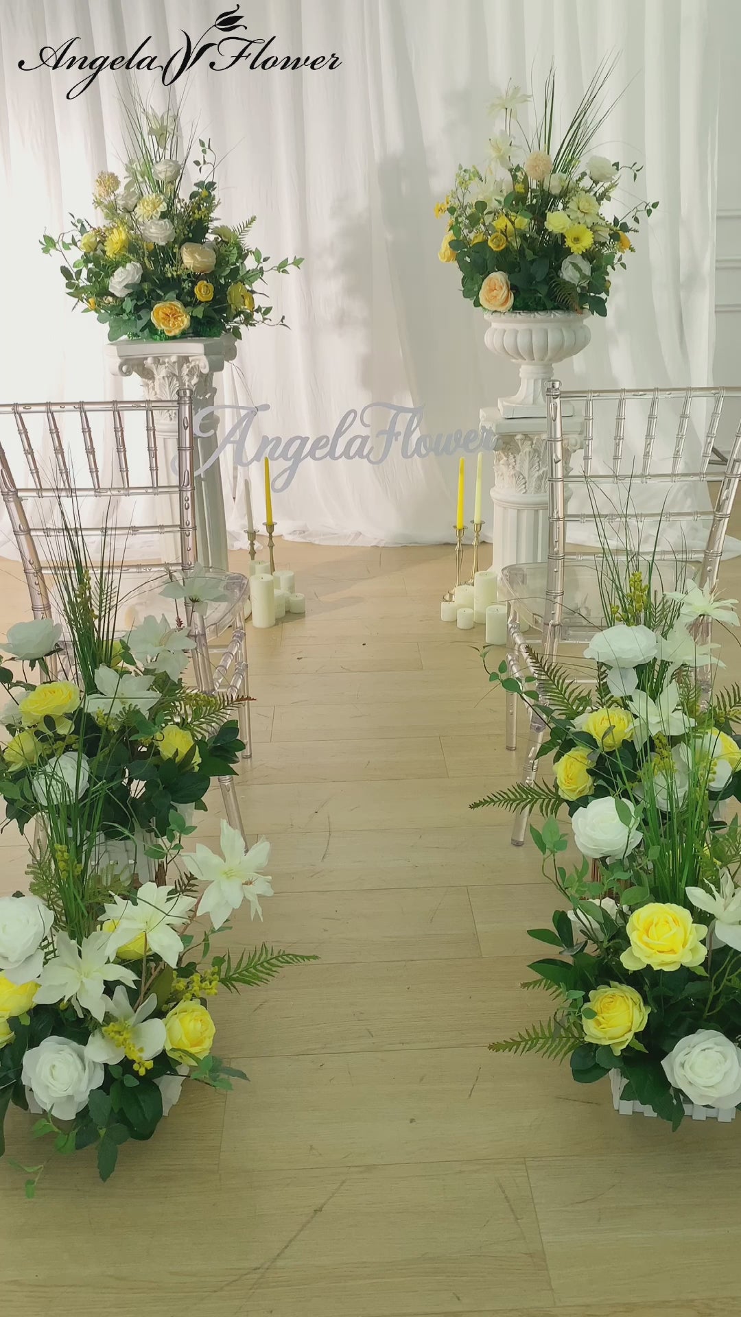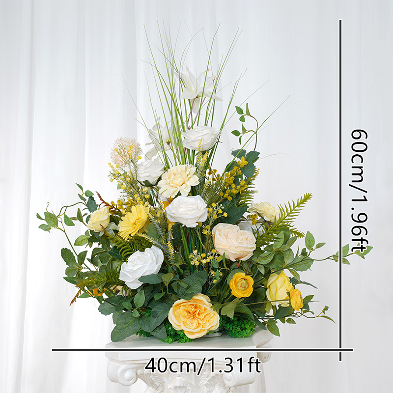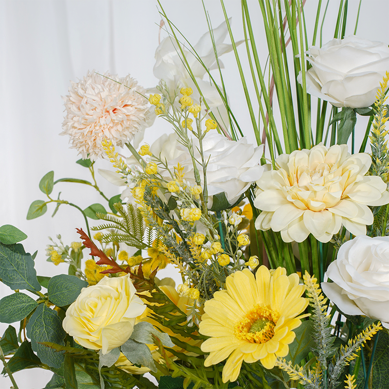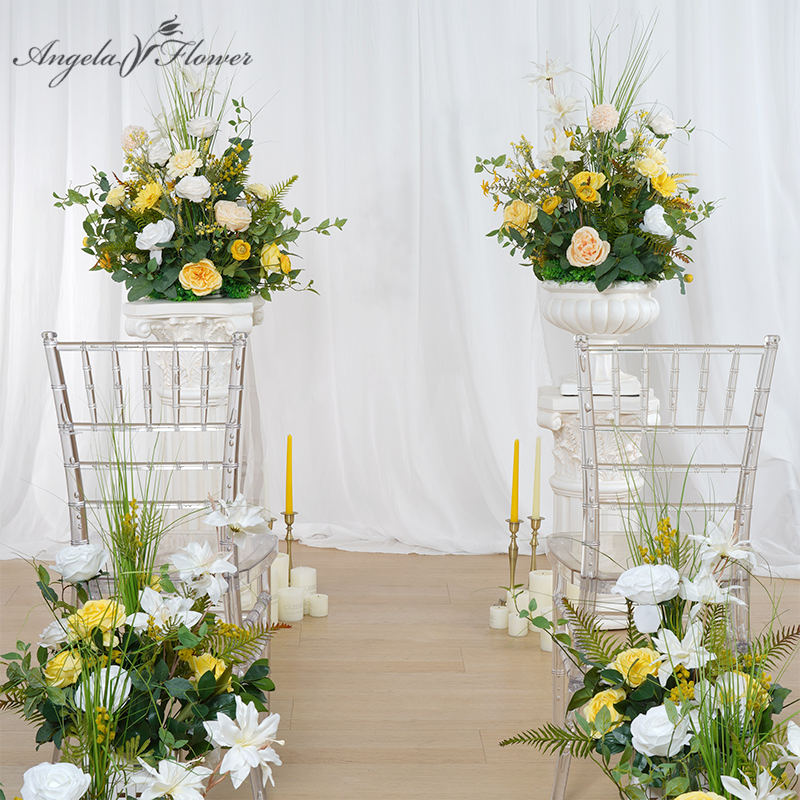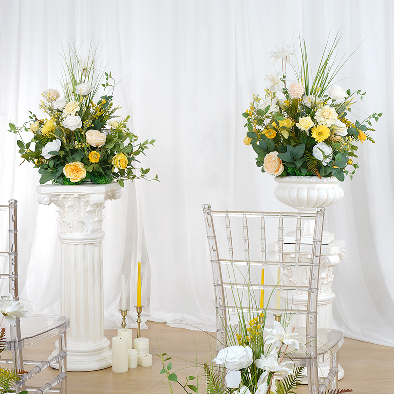 A8635 Yellow White Series With Greenery Eucalyptus Floor Wedding Floral Arrangement