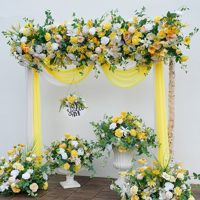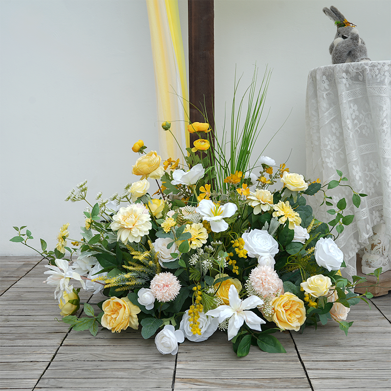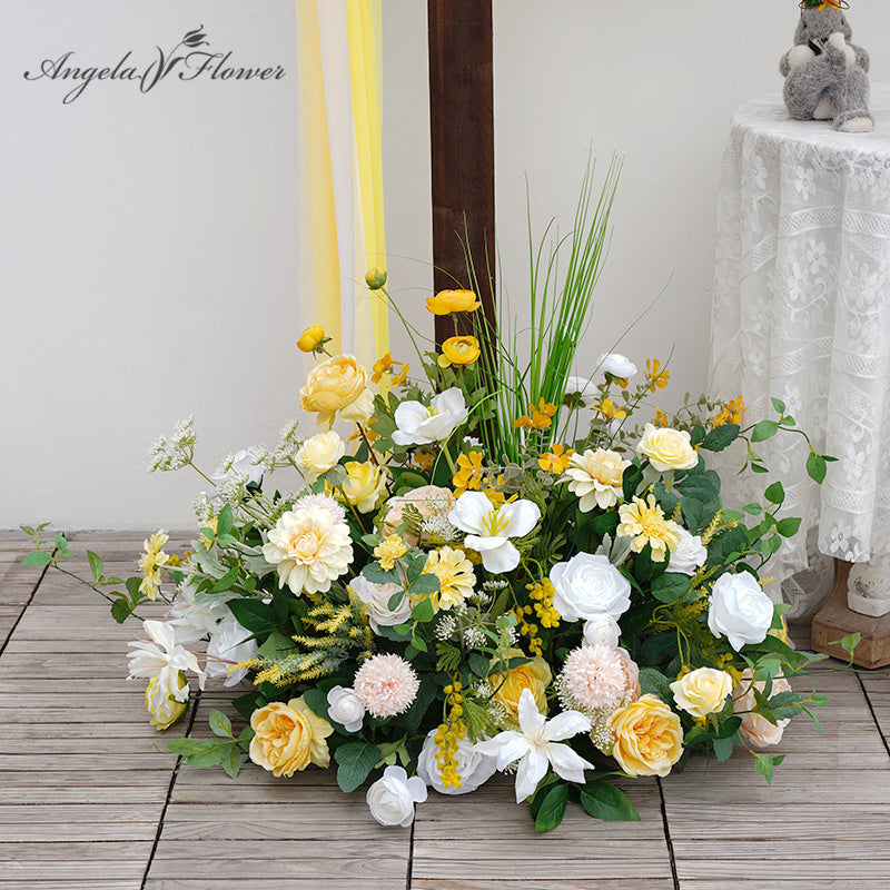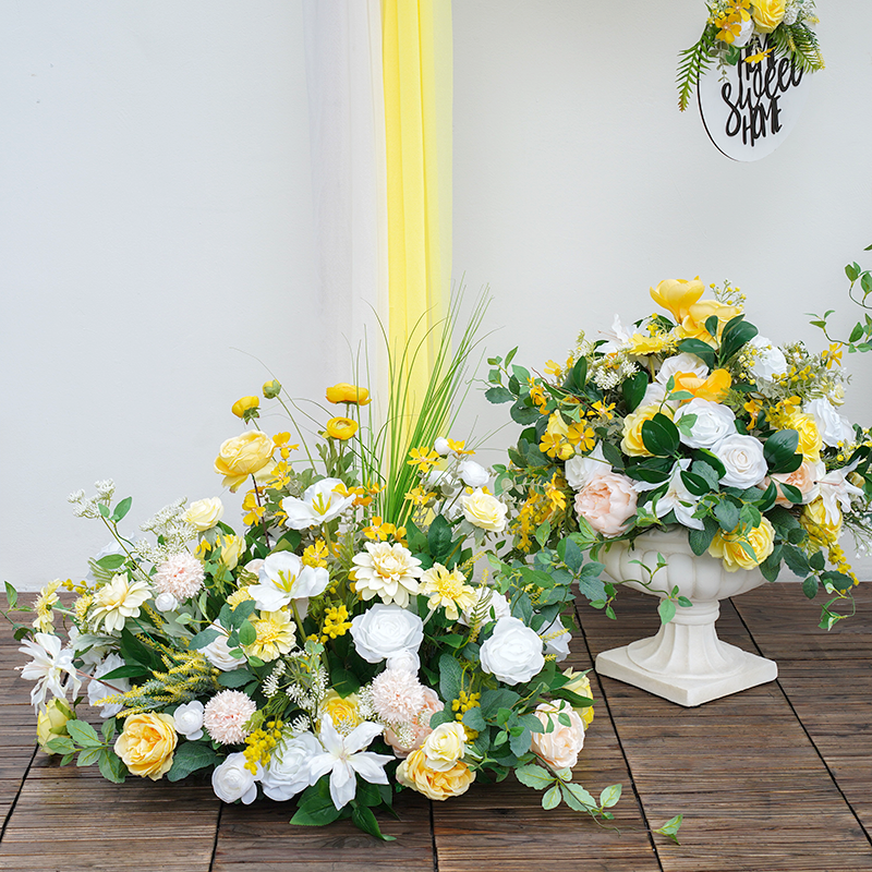 A8635 Yellow White Series With Greenery Floor Flower Wedding Party Event Props