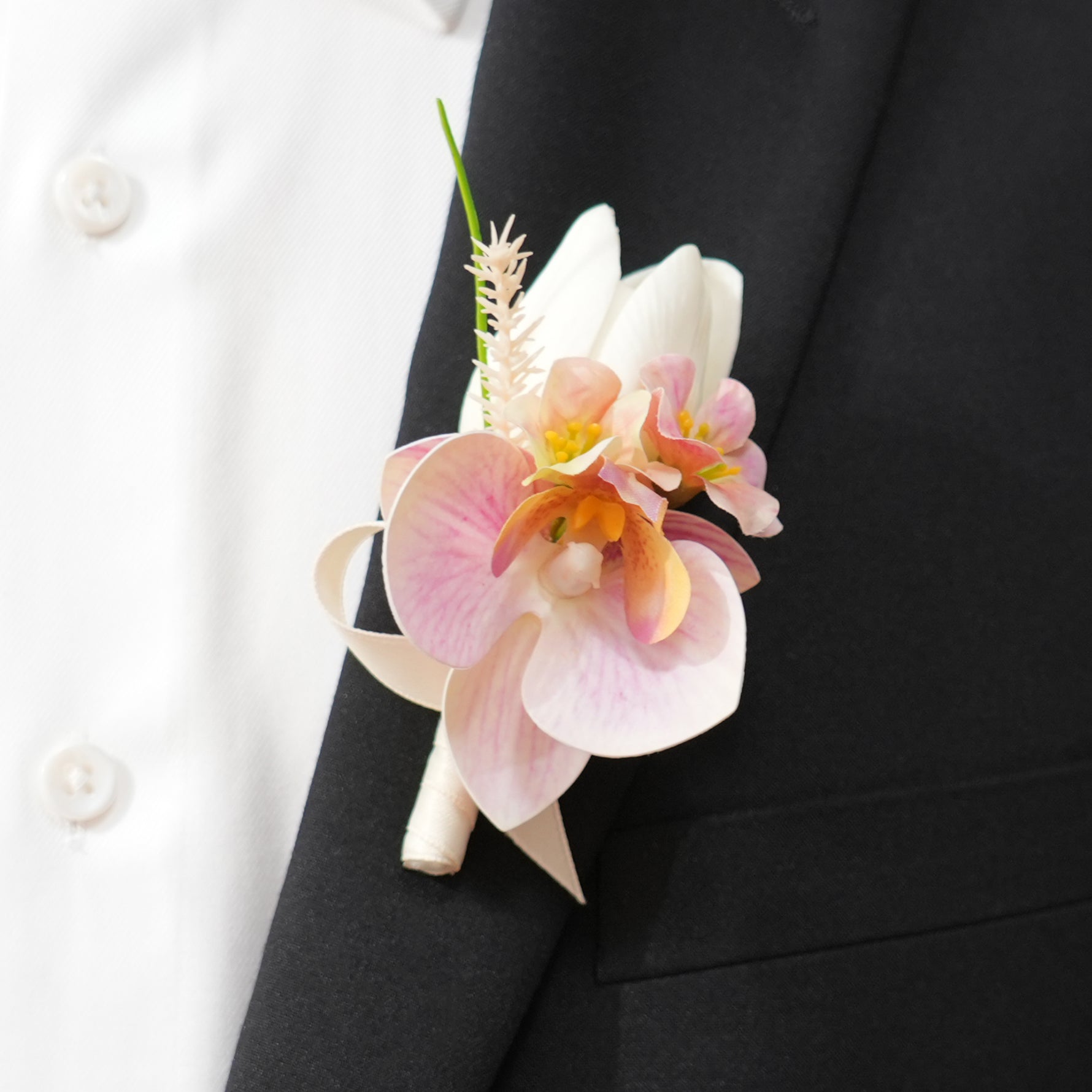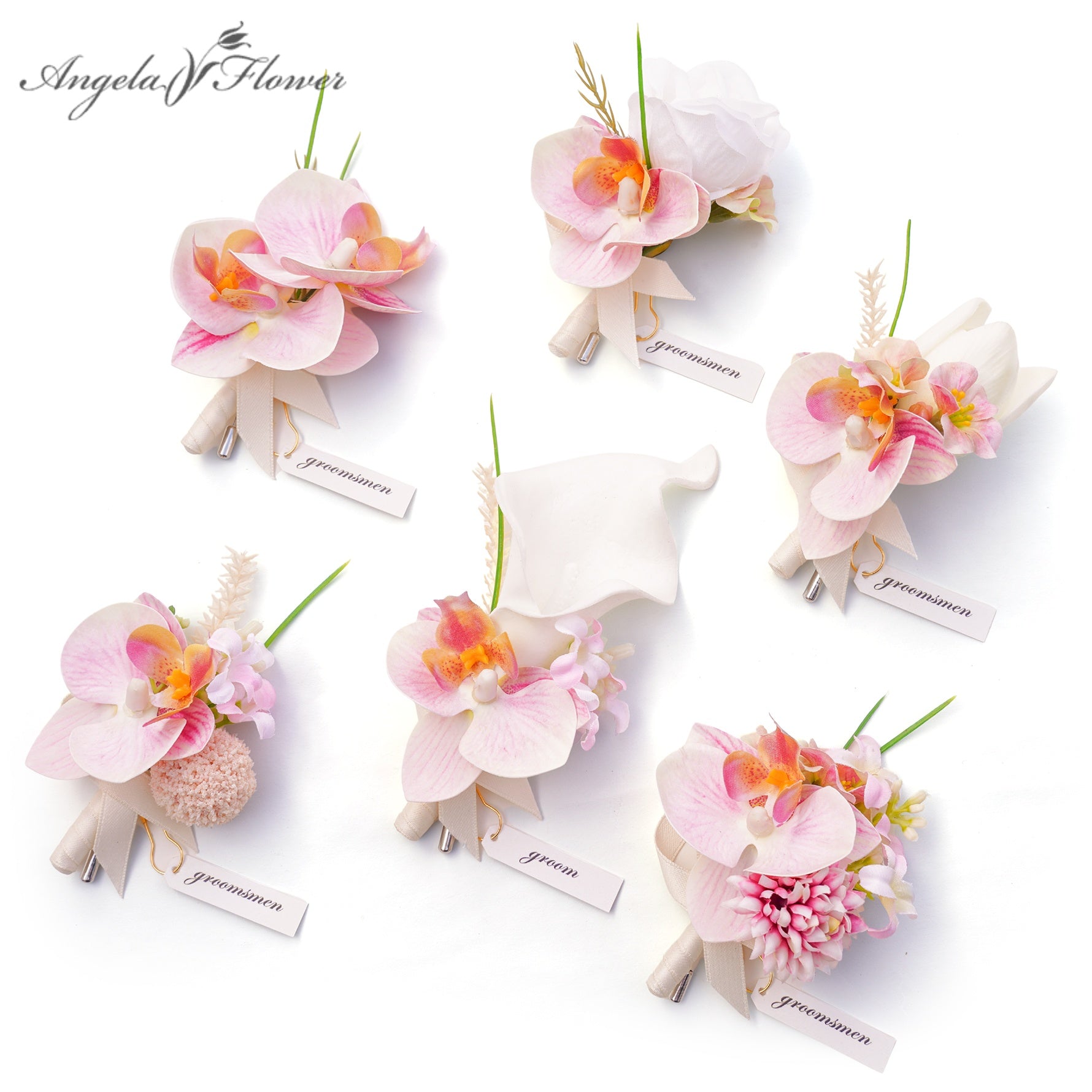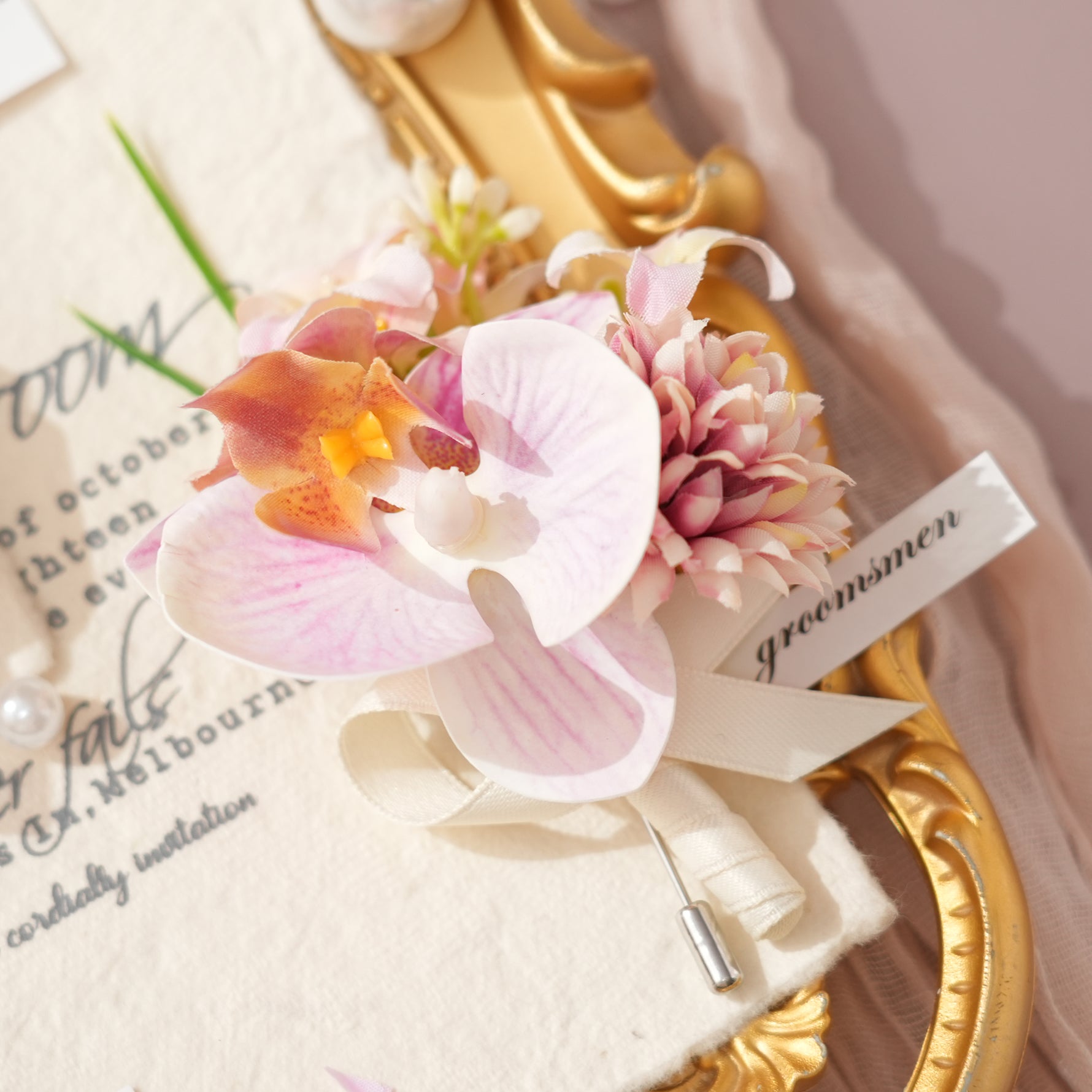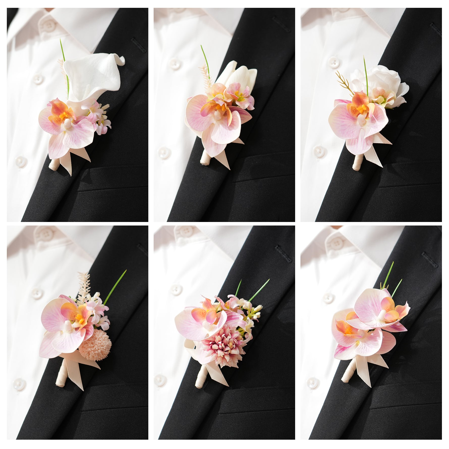 A9072 6pcs/set Pink White Artificial Orchid Boutonniere Wedding Ceremony Prom Suit