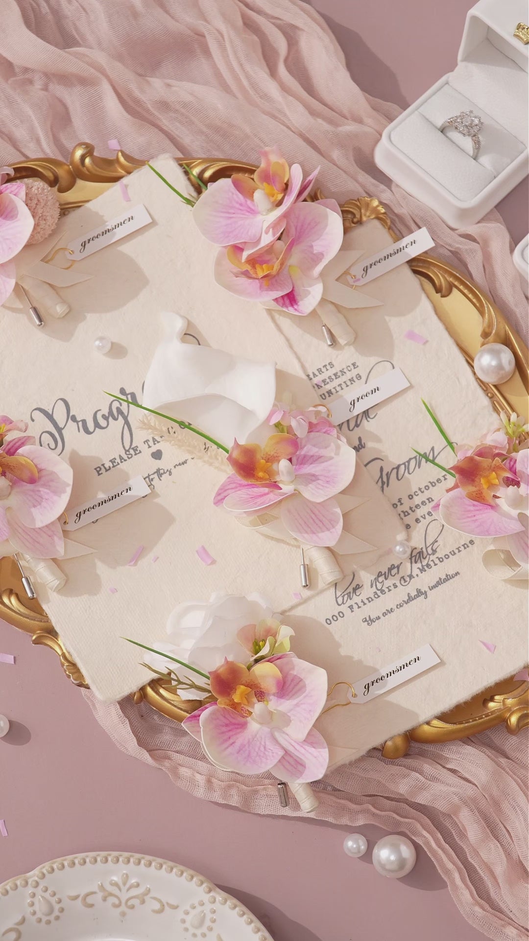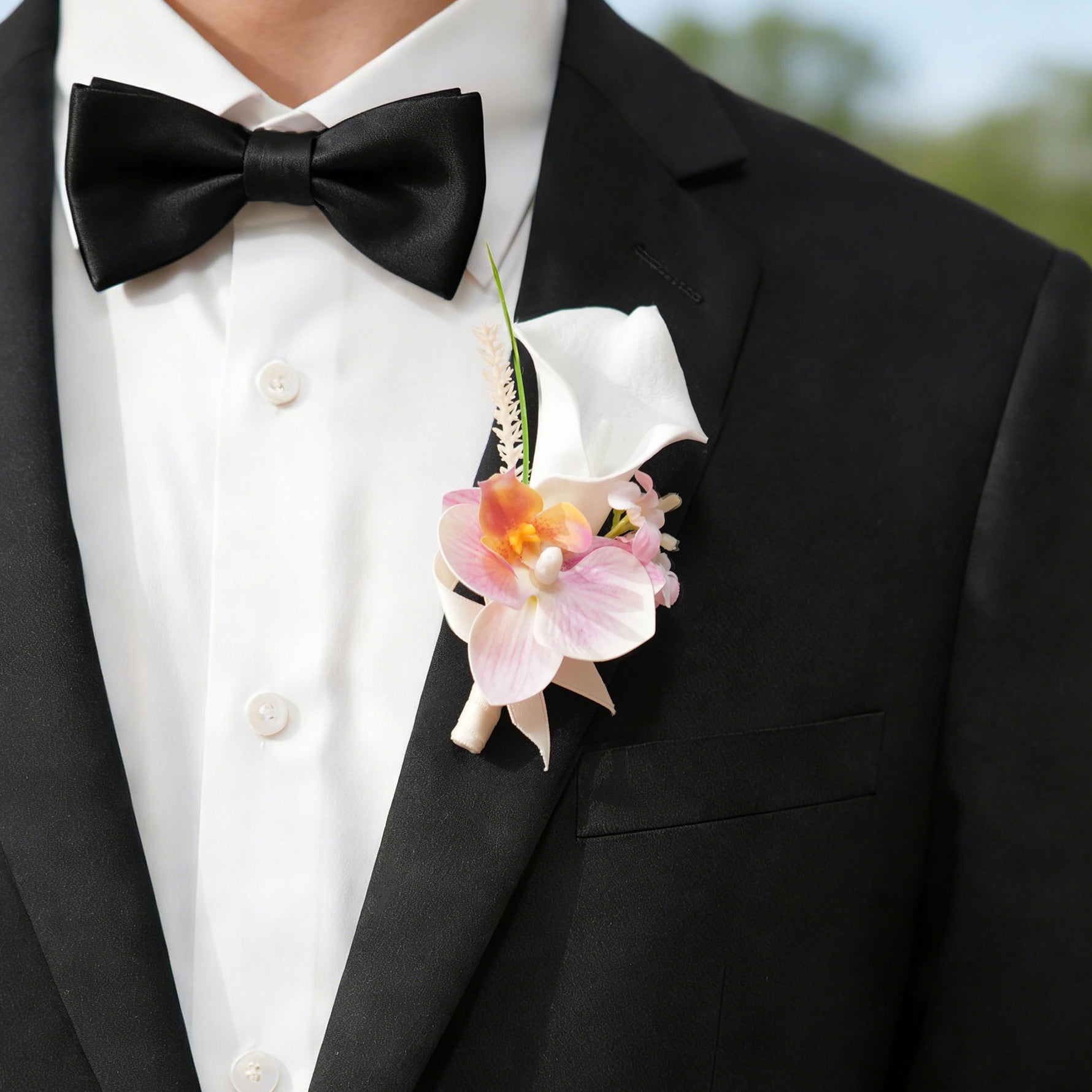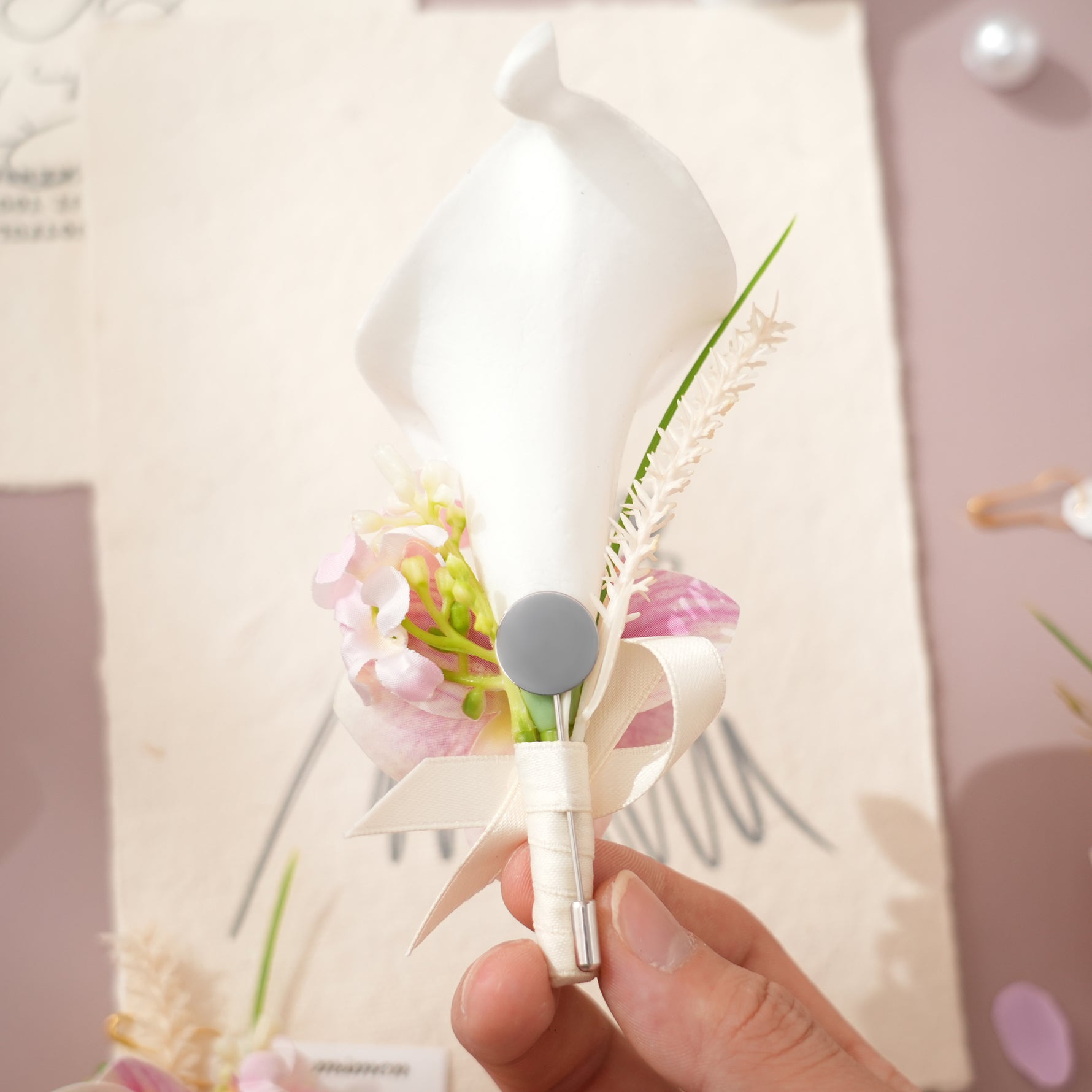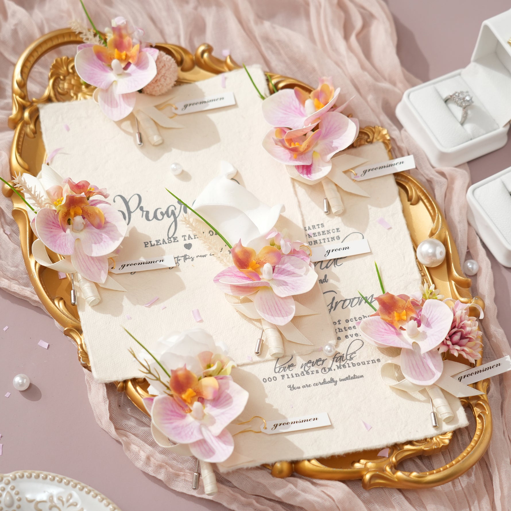 A9072 6pcs/set Pink White Artificial Orchid Boutonniere Wedding Ceremony Prom Suit