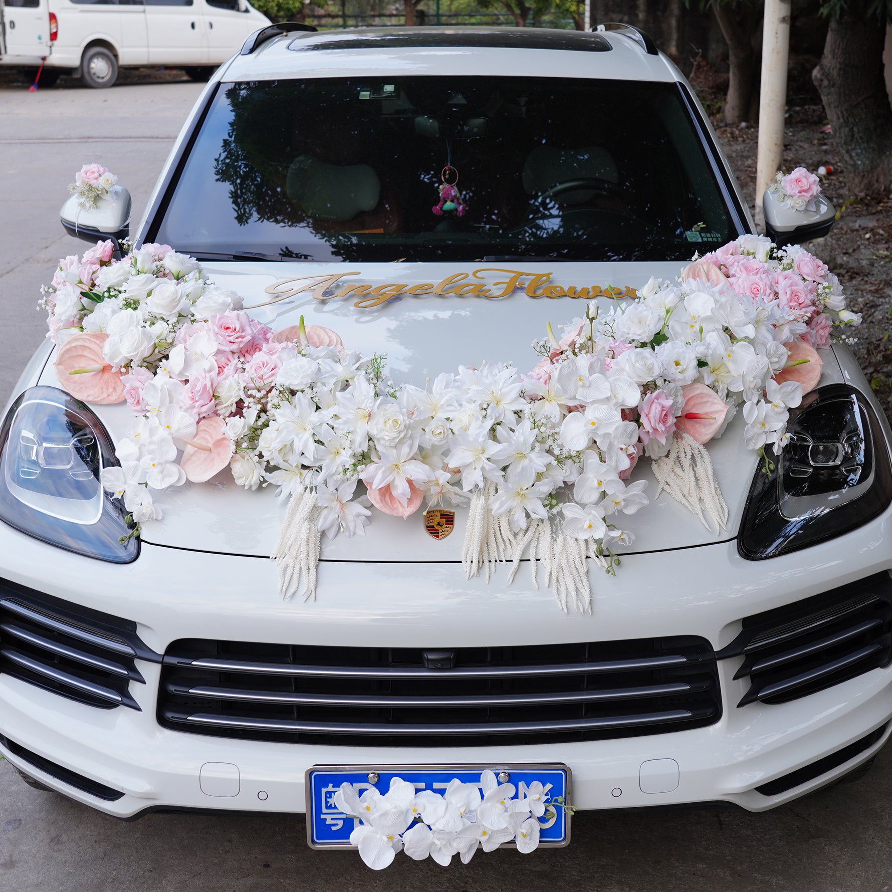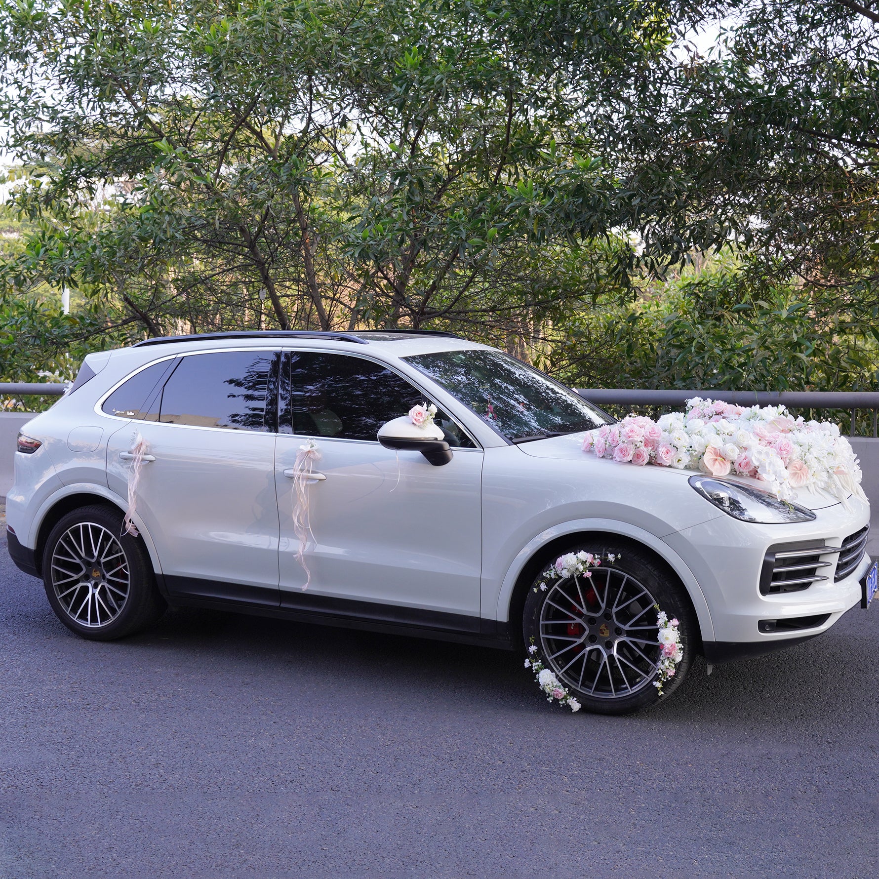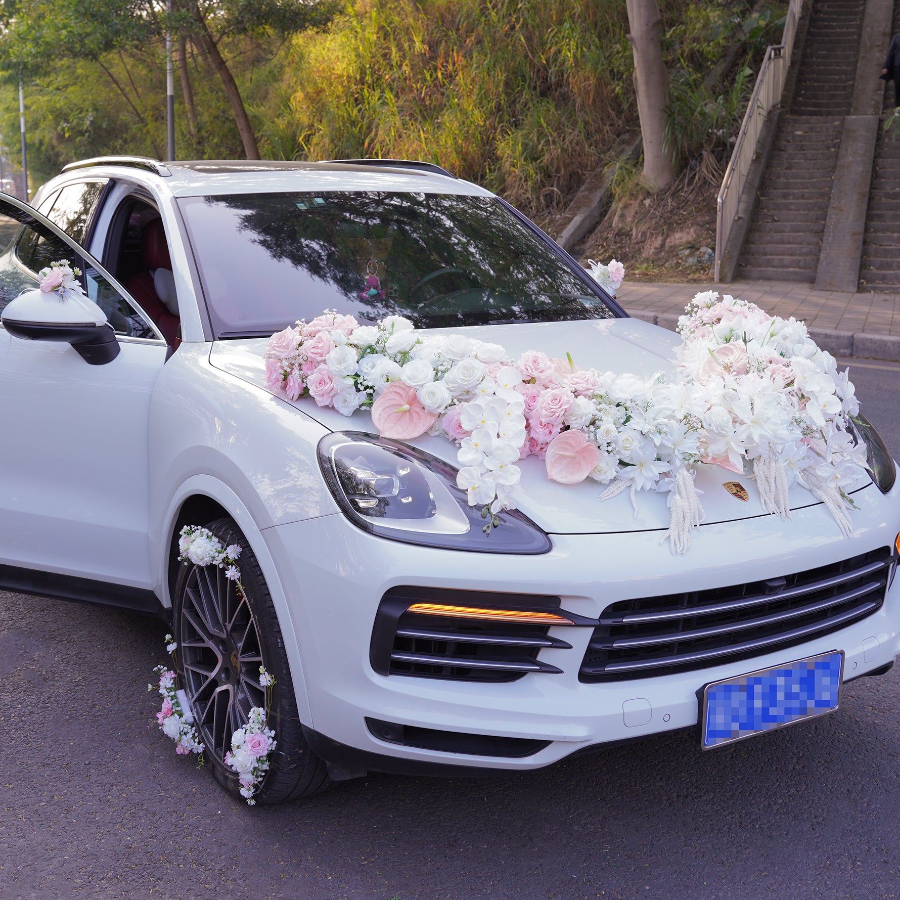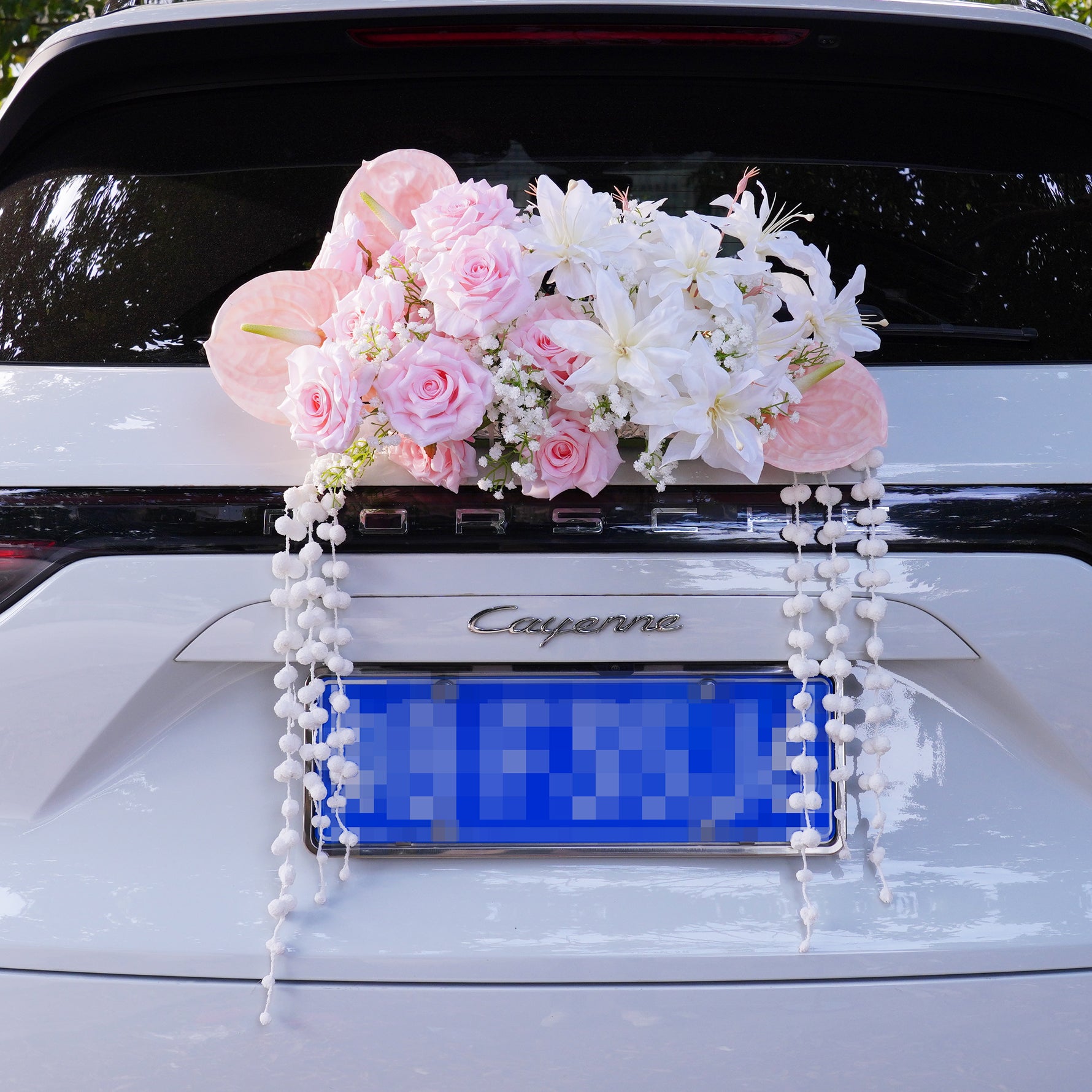 Color Inspiration: Decorating your wedding car with a variety of carefully selected light pink roses and lilies not only enhances the visual effect of the wedding, but also conveys the couple's cherished love and anticipation of marriage, creating a romantic and unforgettable wedding for you.