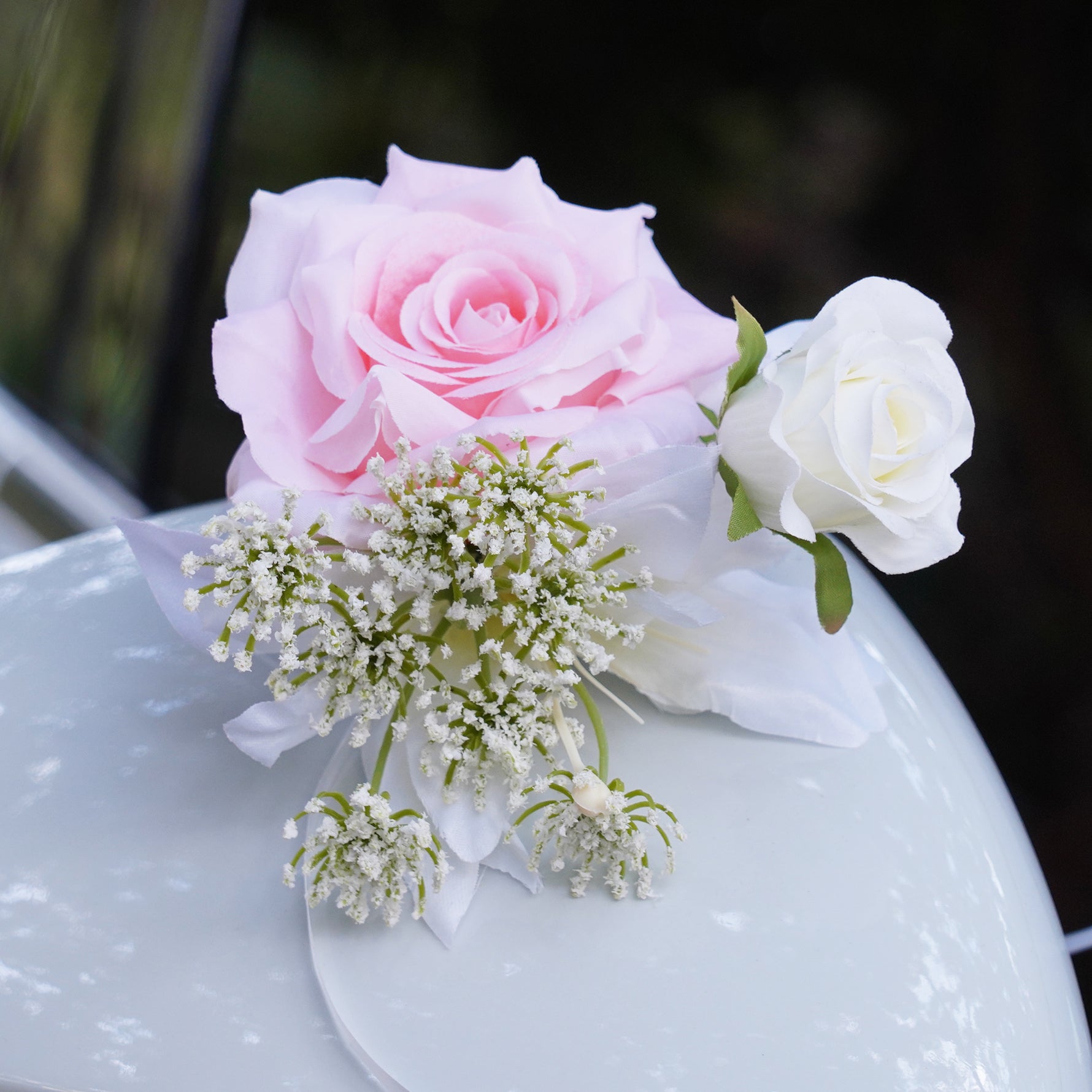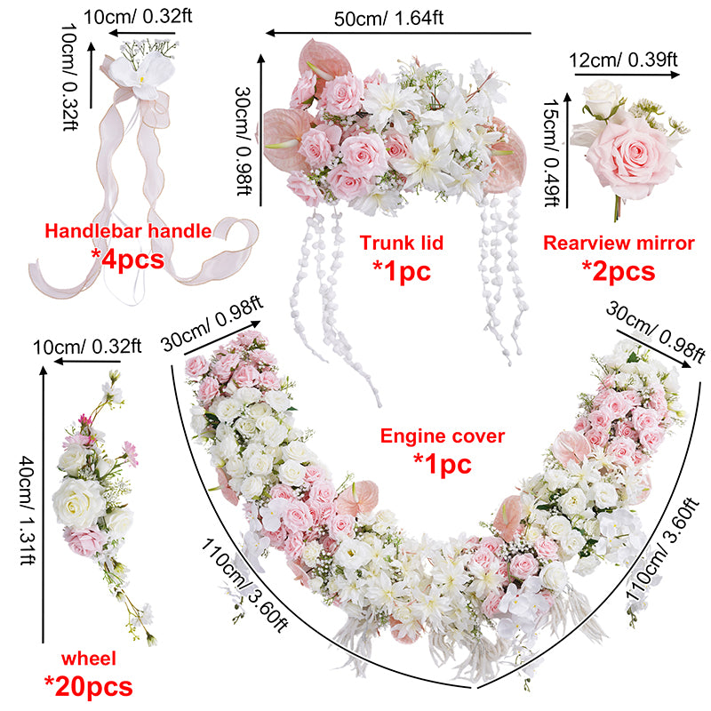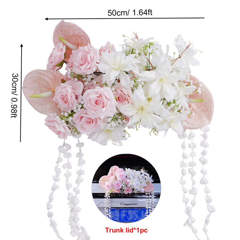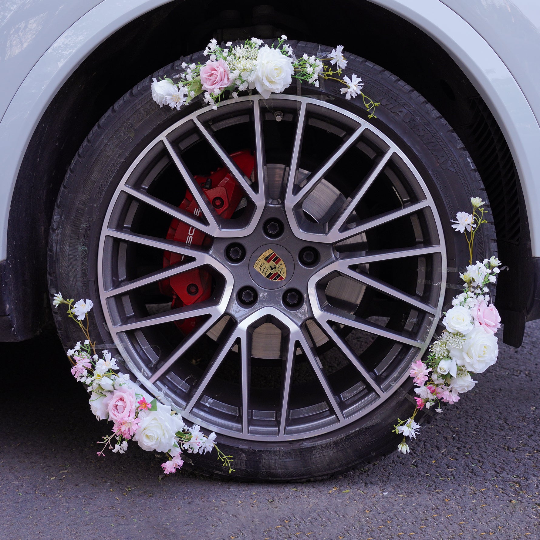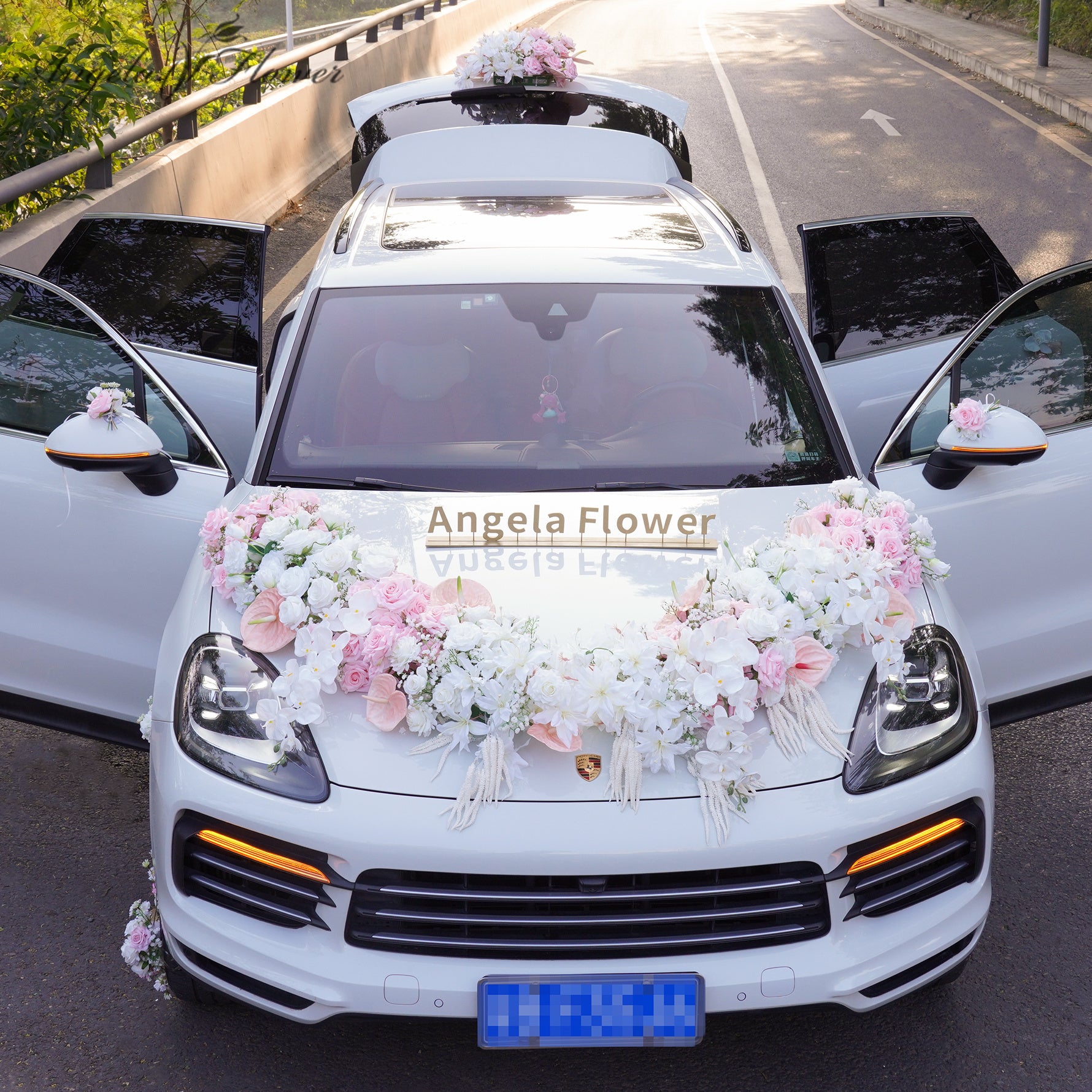Color Inspiration: Decorating your wedding car with a variety of carefully selected light pink roses and lilies not only enhances the visual effect of the wedding, but also conveys the couple's cherished love and anticipation of marriage, creating a romantic and unforgettable wedding for you.