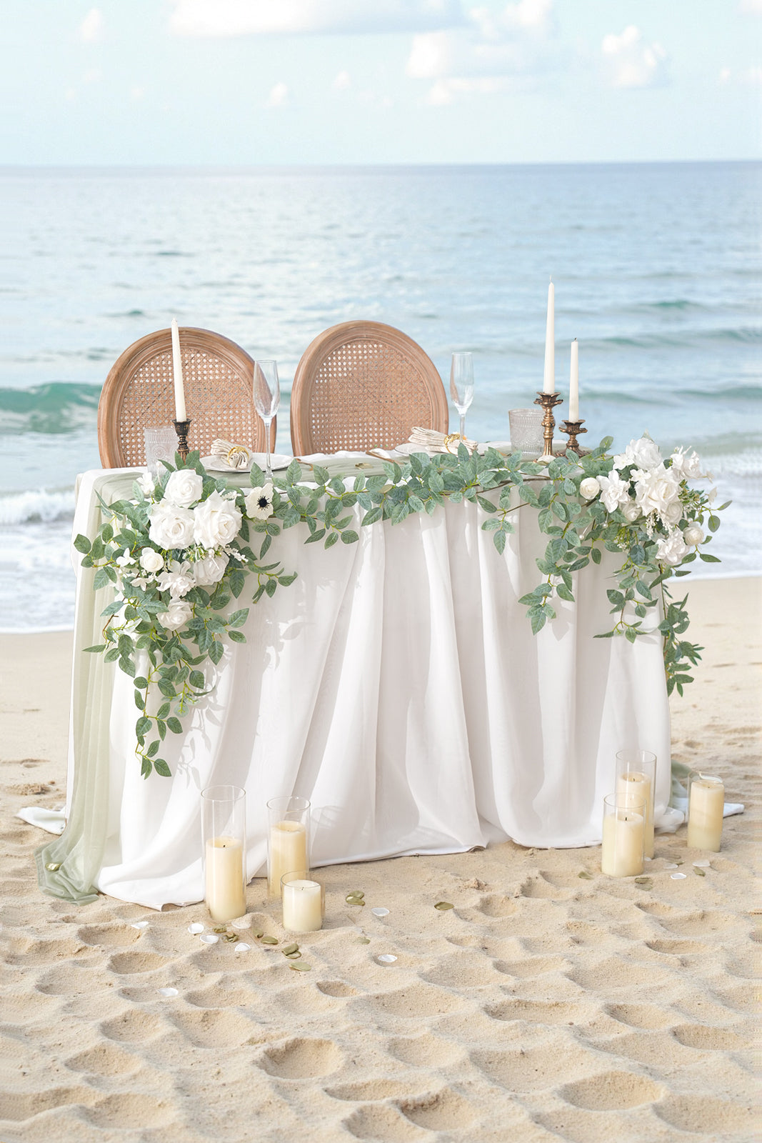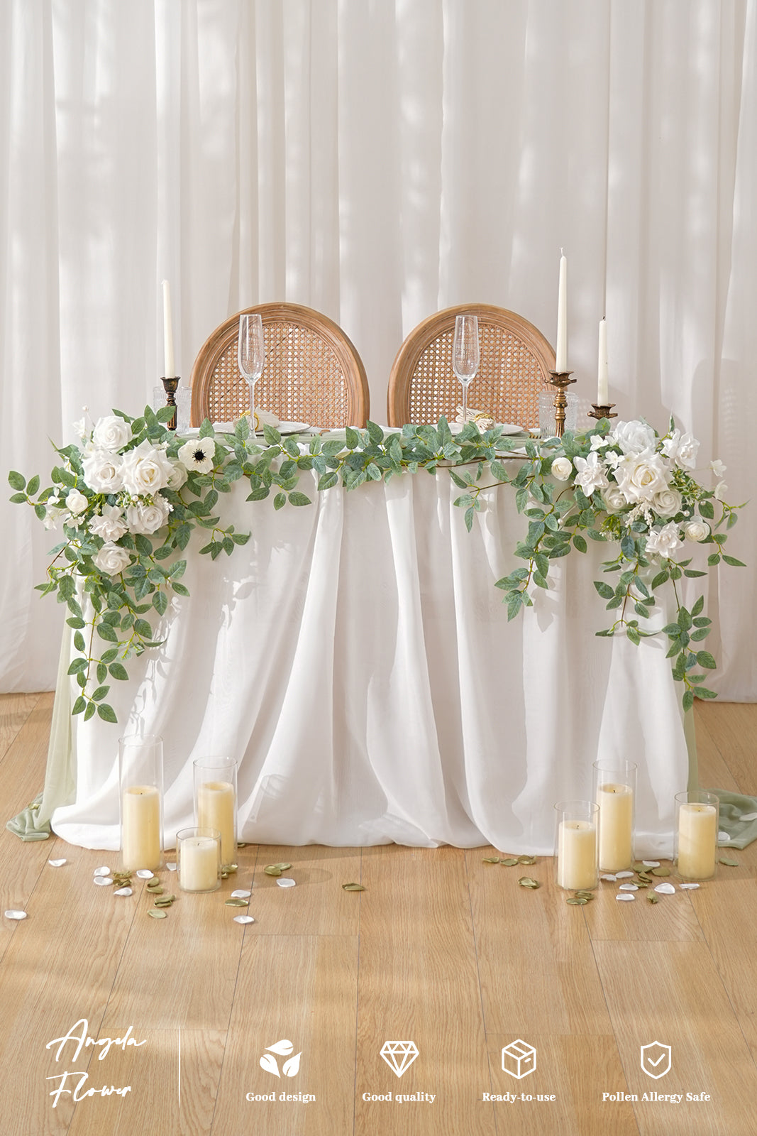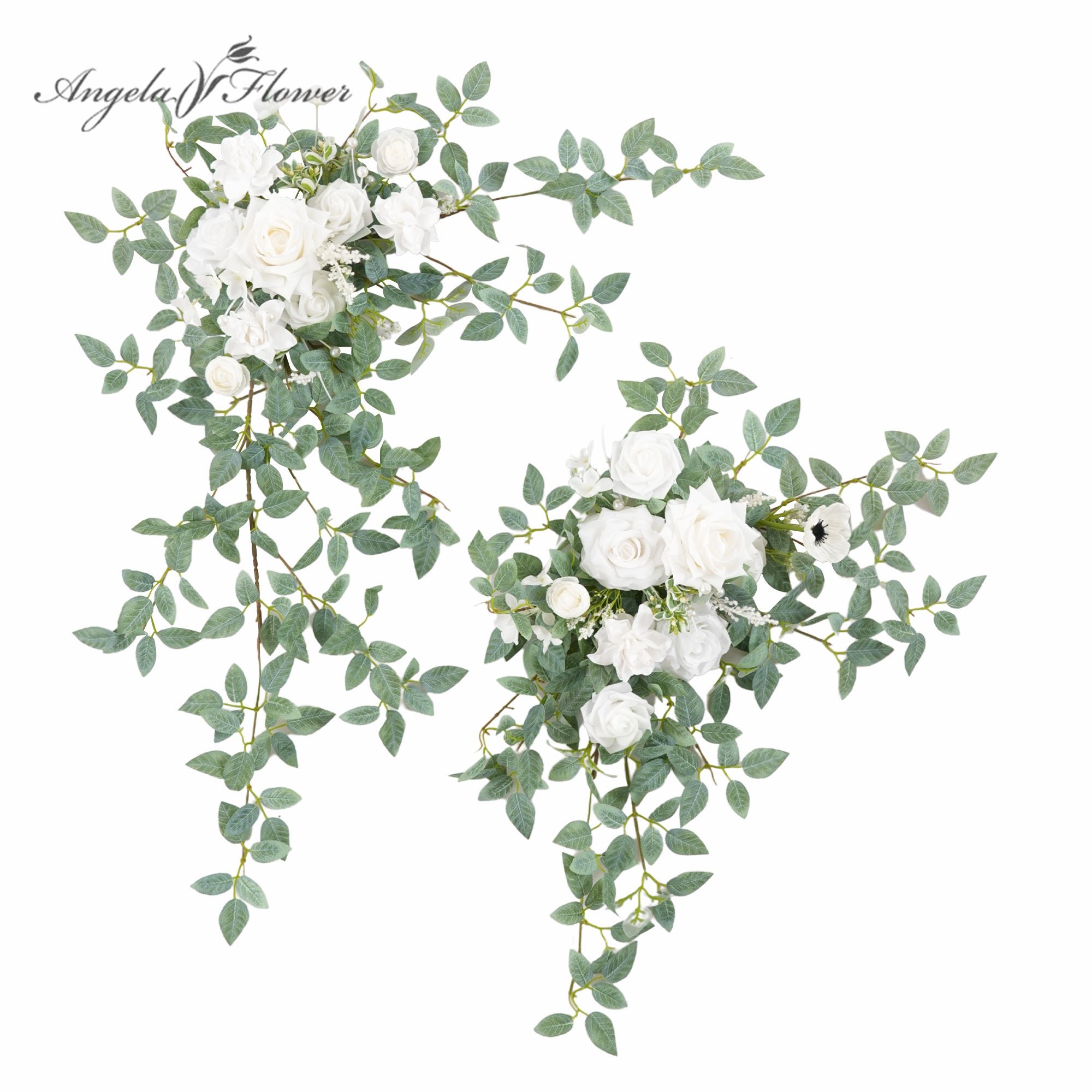A8995 2pcs White Rose Eucalyptus Table Flower Garland Reception Home Decor