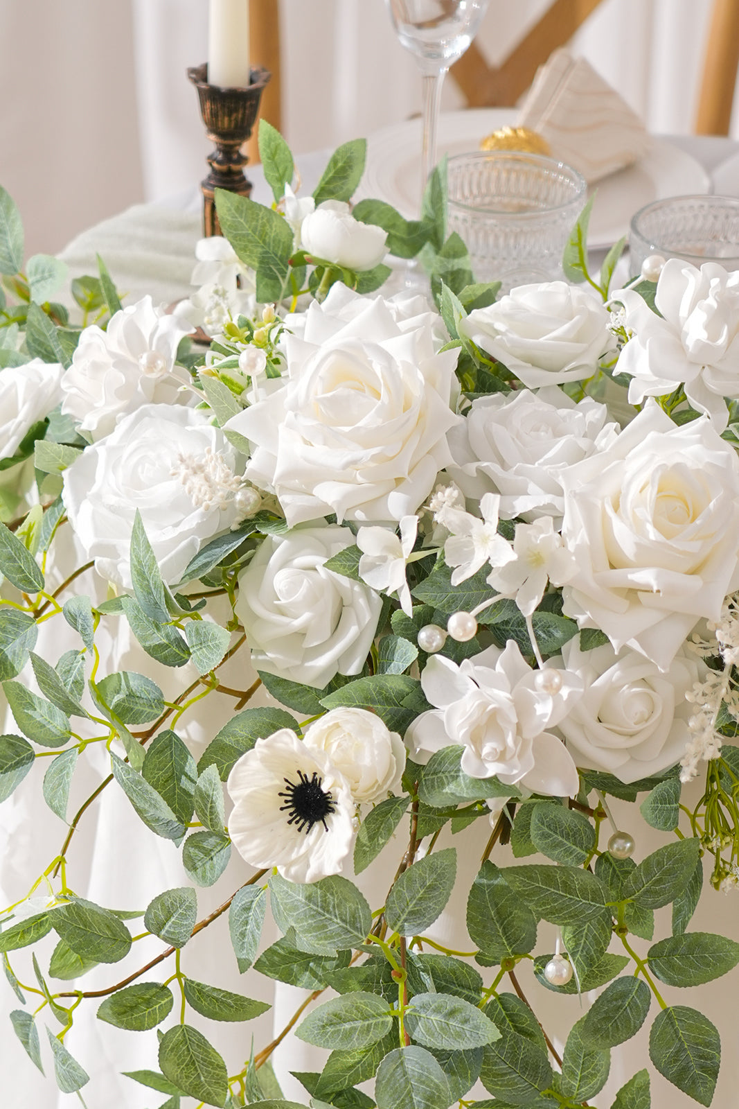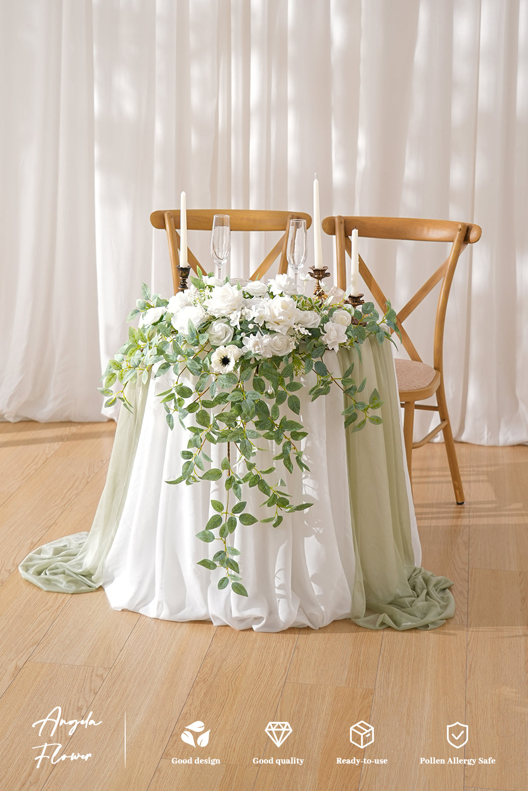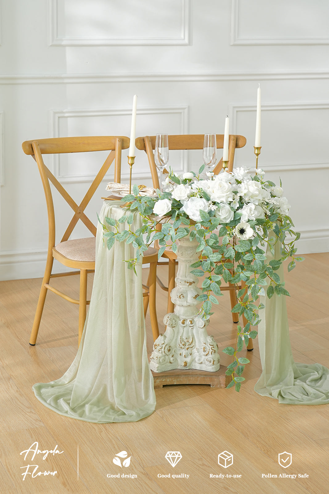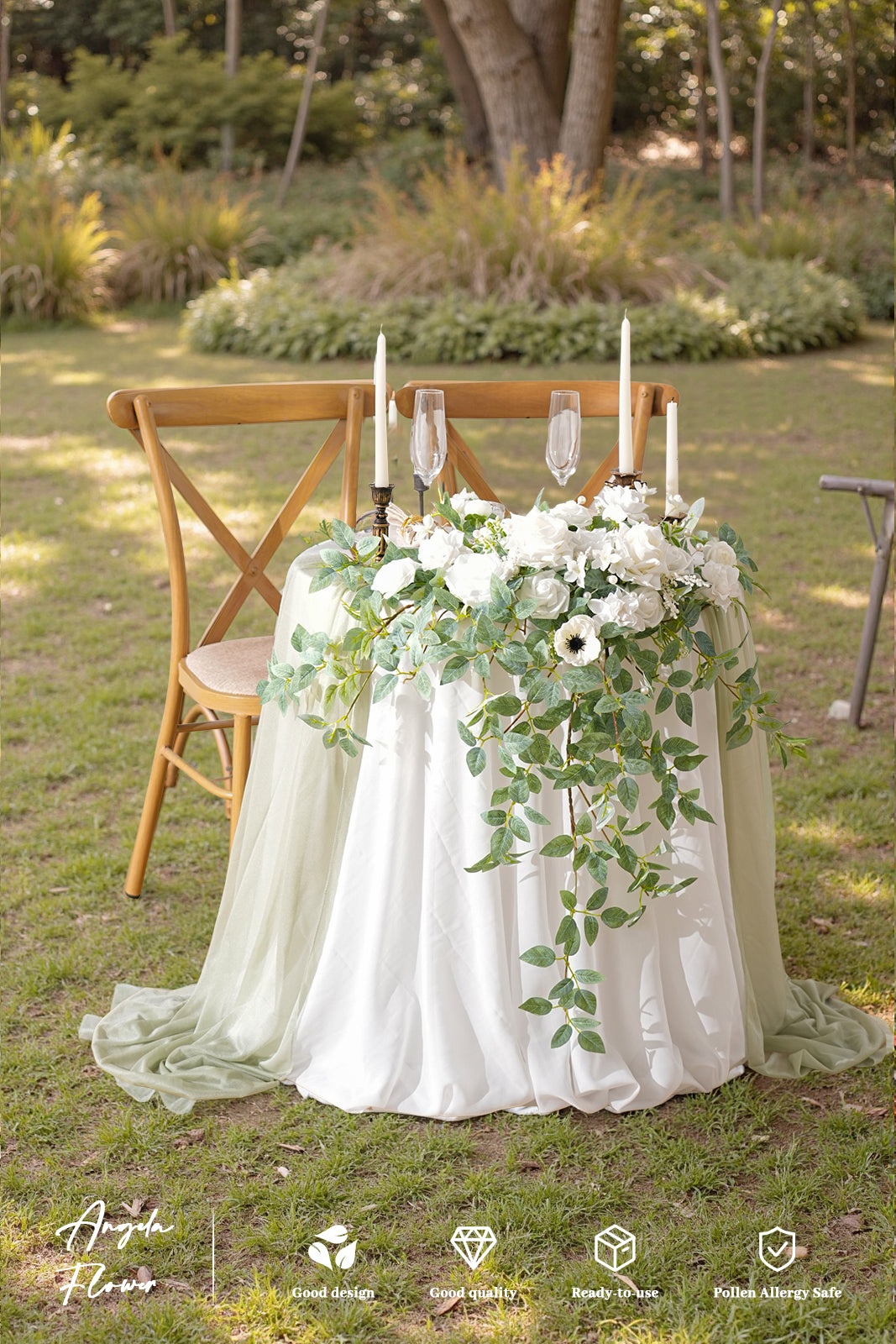A8995 2pcs White Rose Eucalyptus Table Flower Garland Reception Home Decor