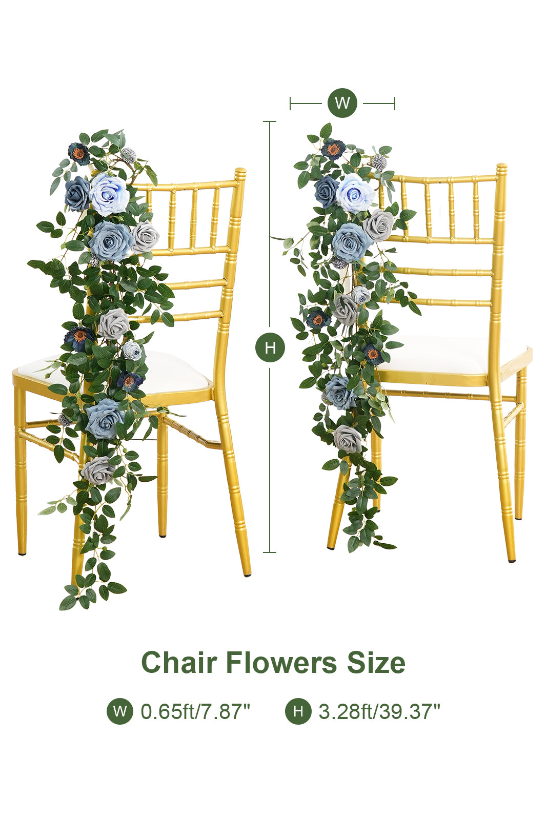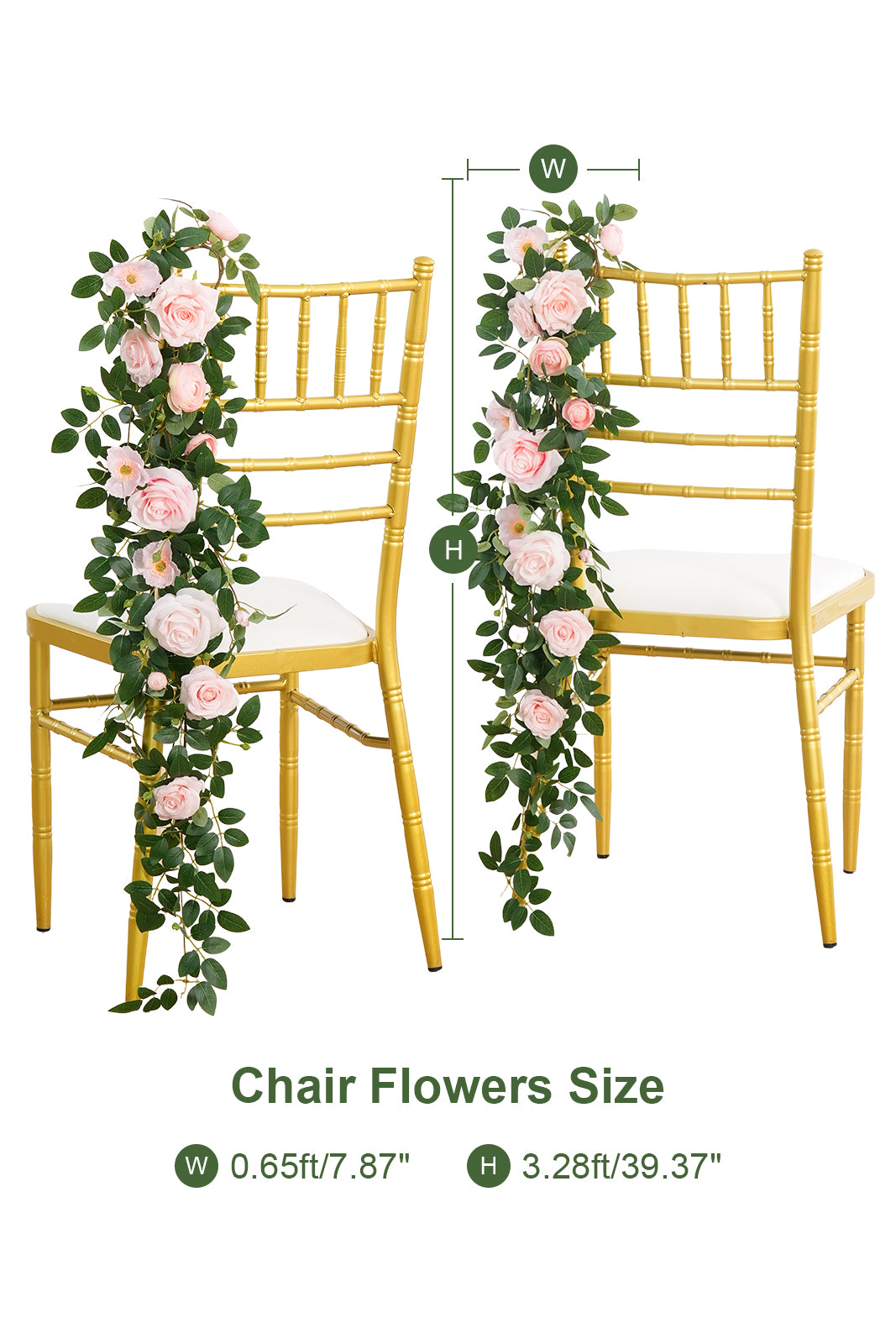 Size and package: The fully extended size is approximately 39.37'' length by 7.87'' width. Includes chair back flowers*4, traceless transparent hooks*4, high-grade ribbons*4.
