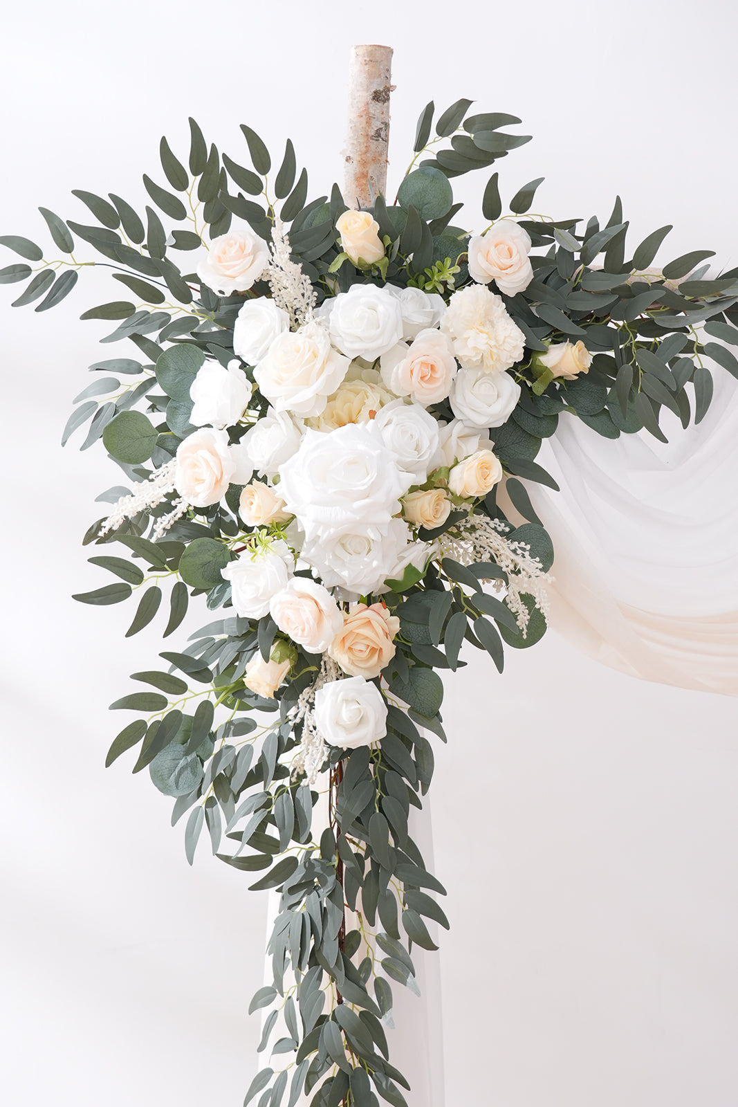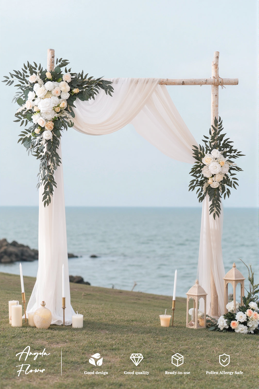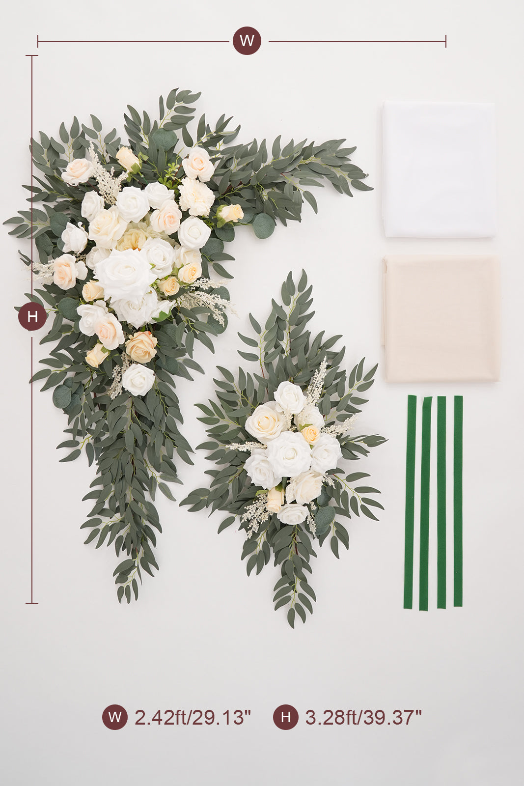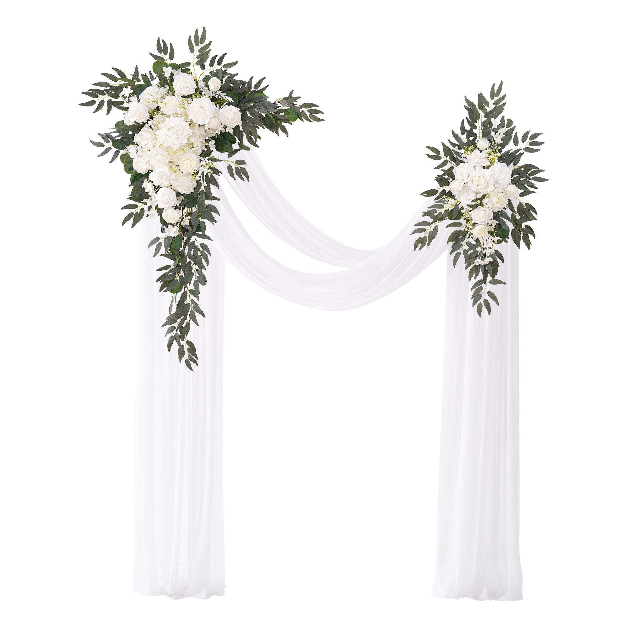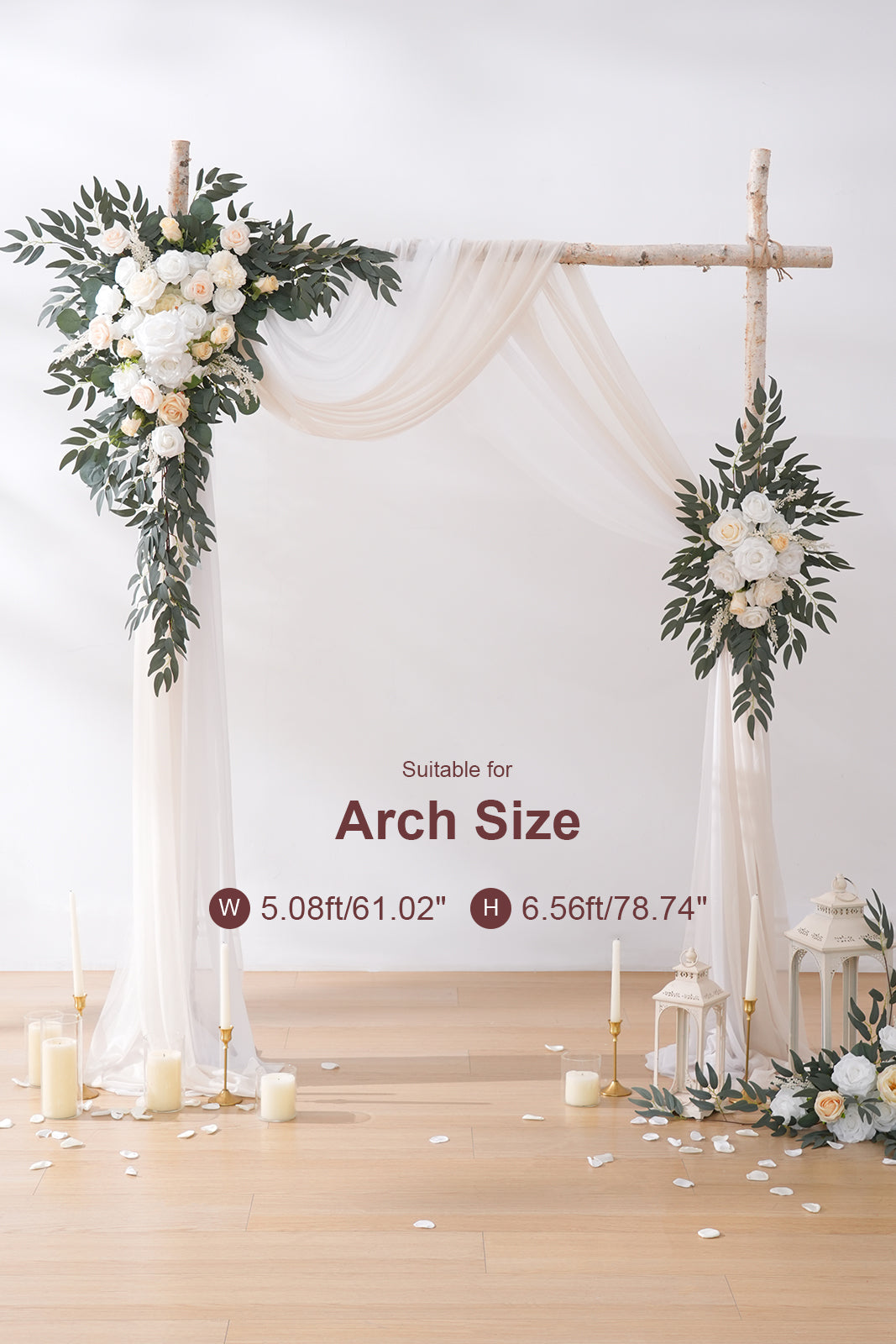 Color Inspiration: Create enchanting spaces with our 2pcs white champagne flowers arrangement and 2pcs delicate drapes. Perfect for archways, staircases, curtains, or photo backdrops, this set brings lasting elegance to any setting. Crafted from high-quality materials, it ensures durability and a sophisticated charm for weddings, parties, or home decor.