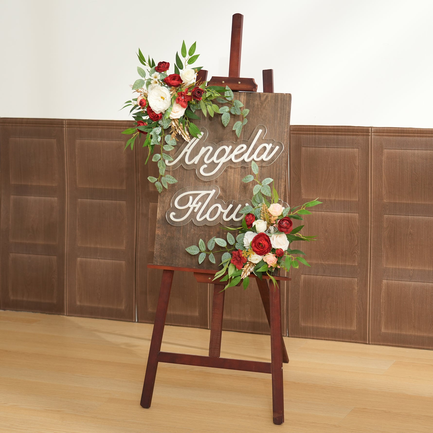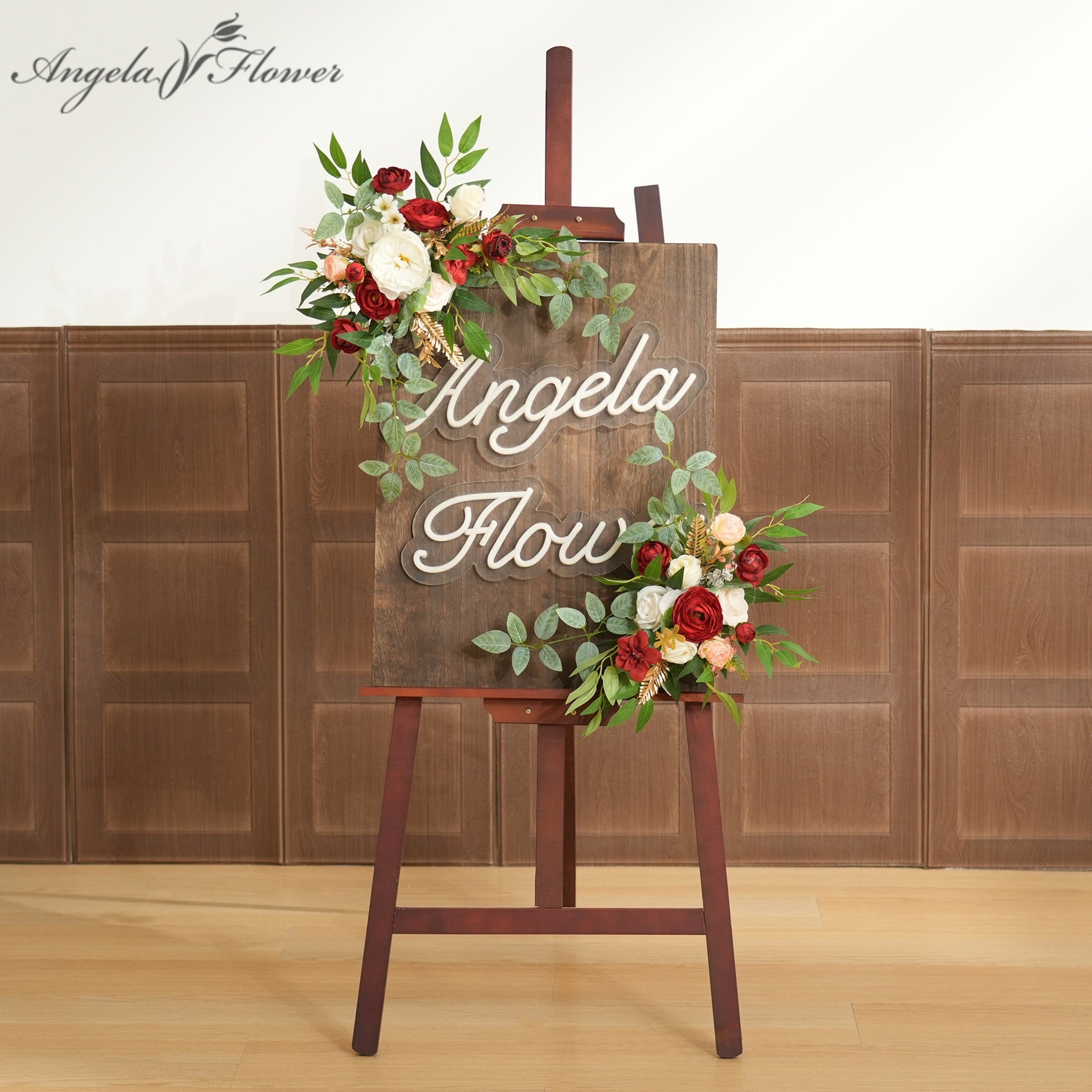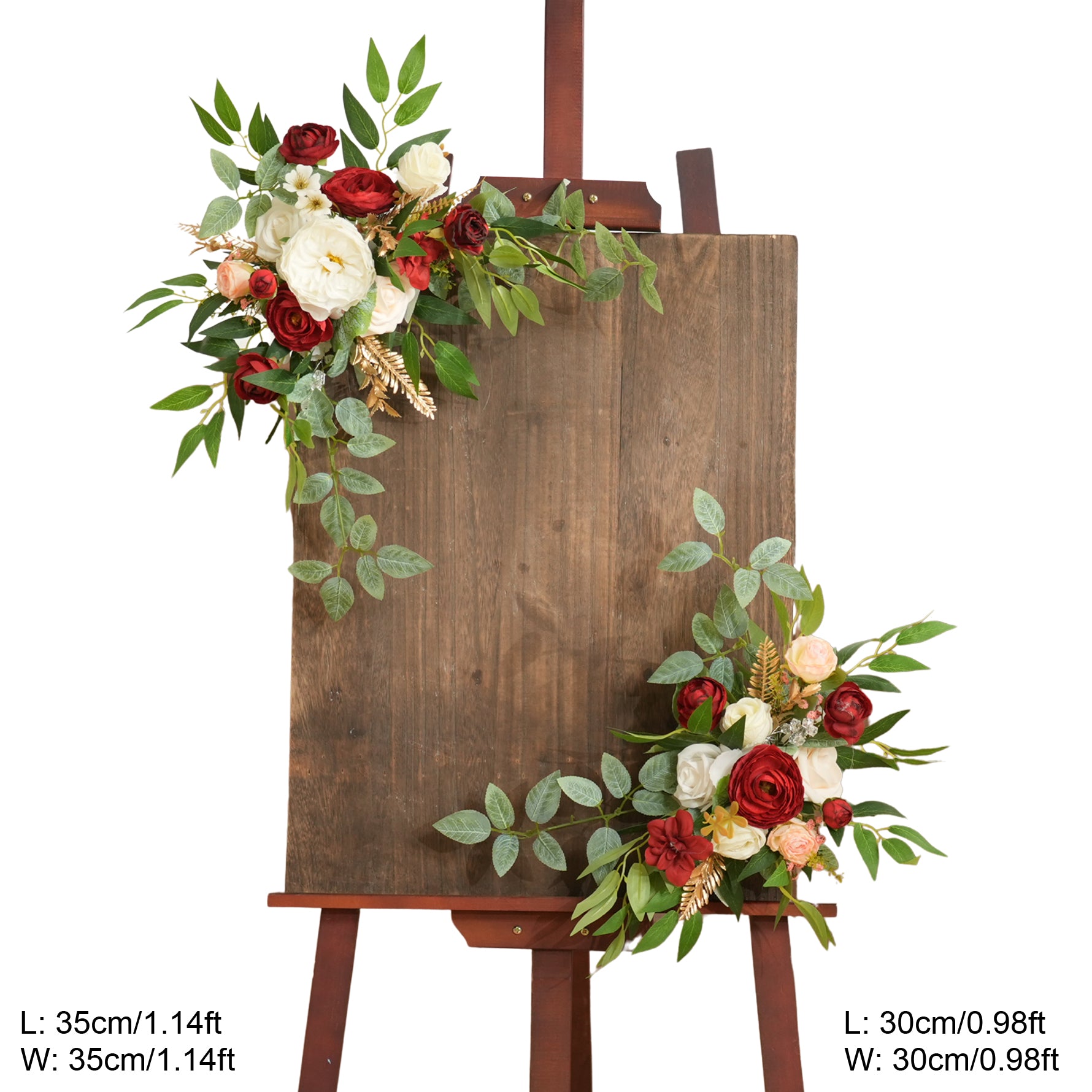 A9060 2pcs Artificial Red White Greenery Welcome Sign Flower Wedding Decor Supplies
