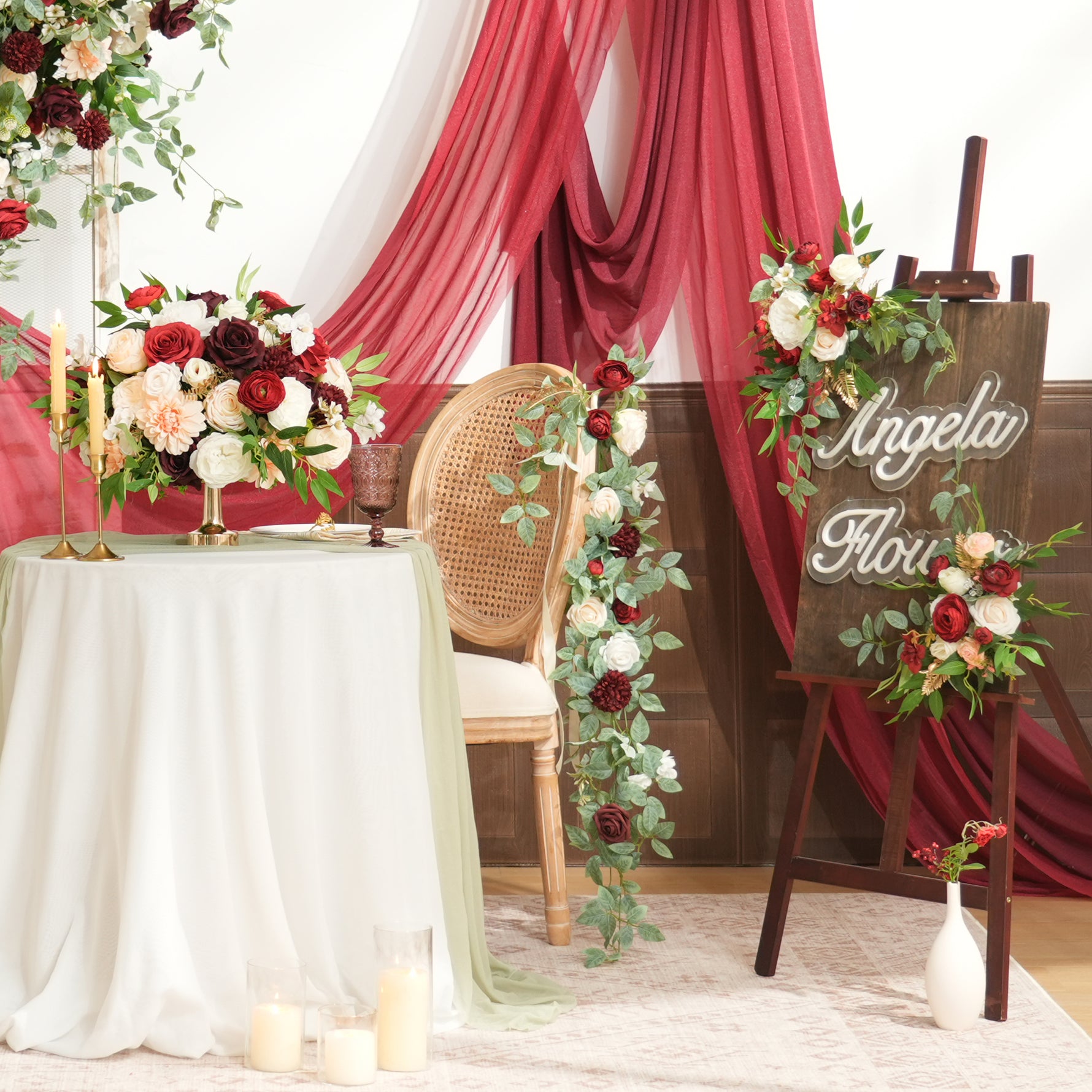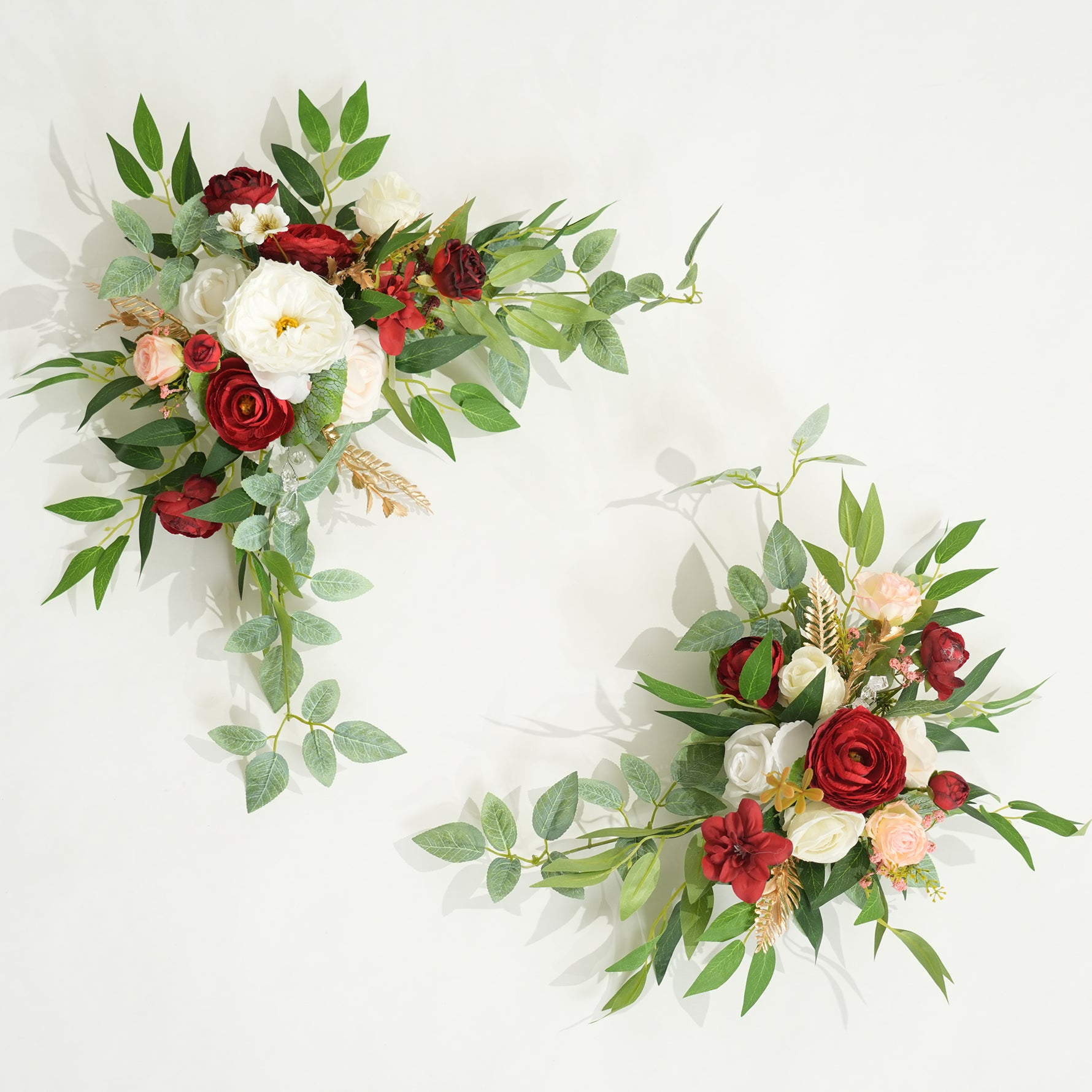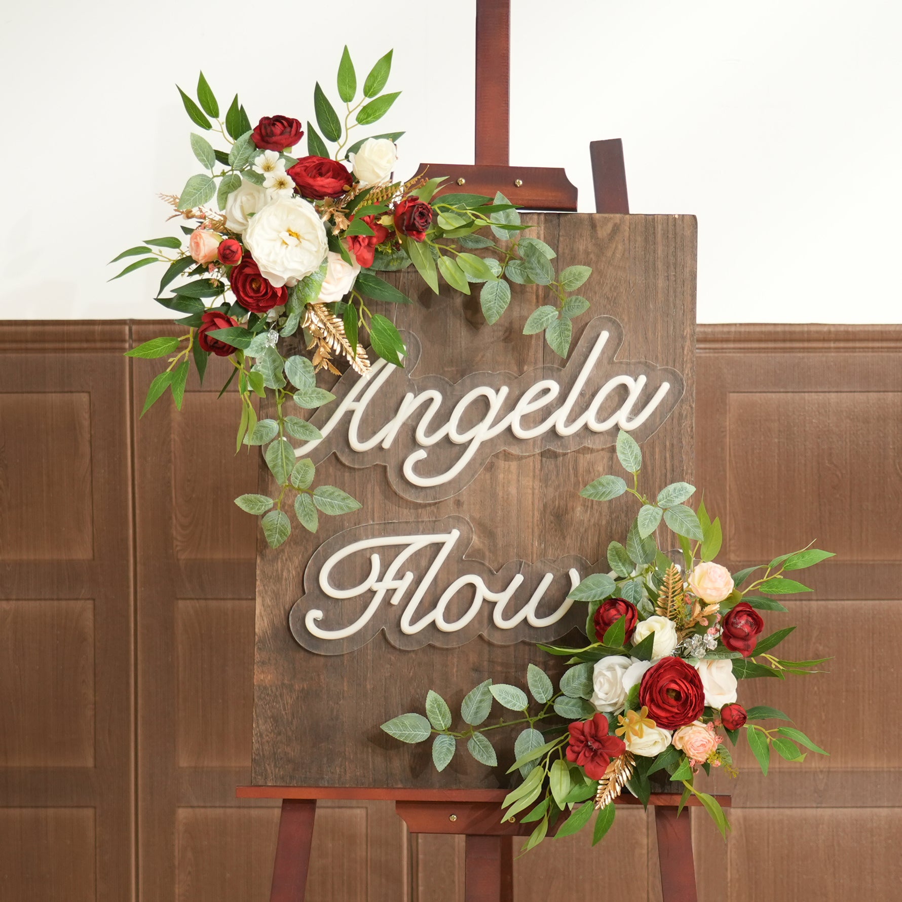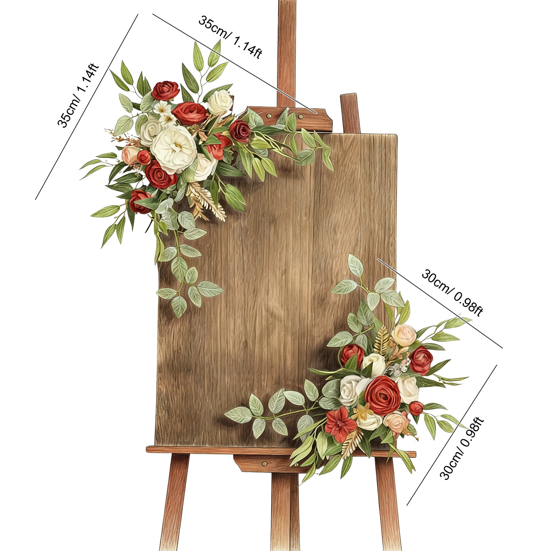 A9060 2pcs Artificial Red White Greenery Welcome Sign Flower Wedding Decor Supplies