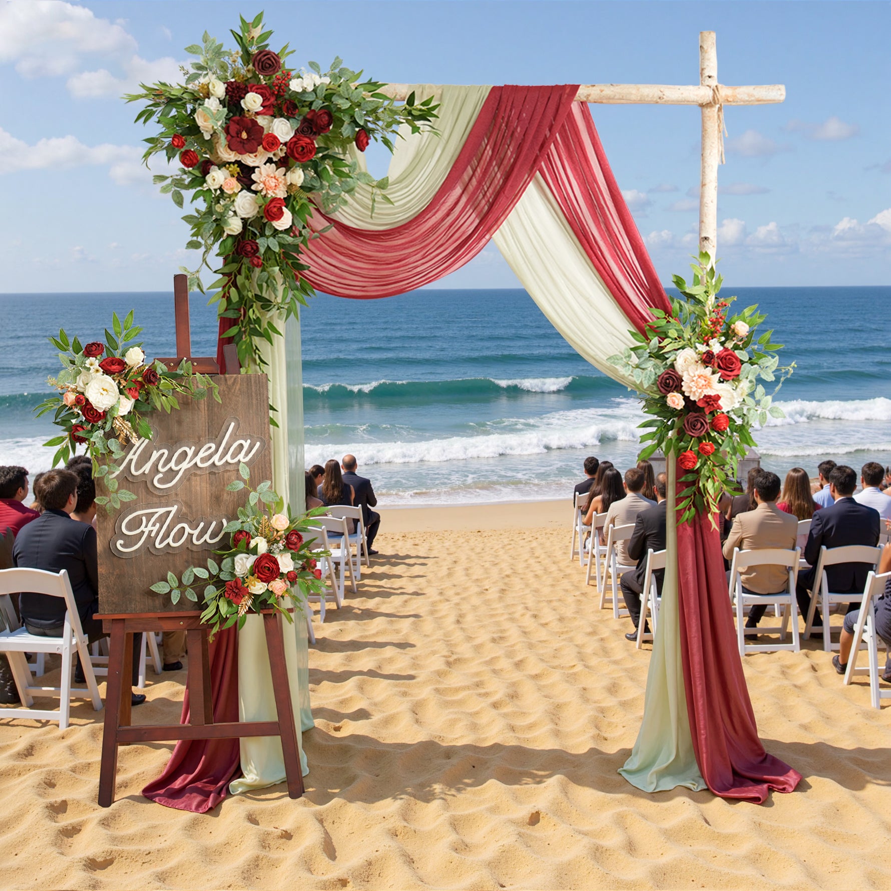 A9058 2pcs Artificial Burgundy Welcome Sign Flower Wedding Event Props