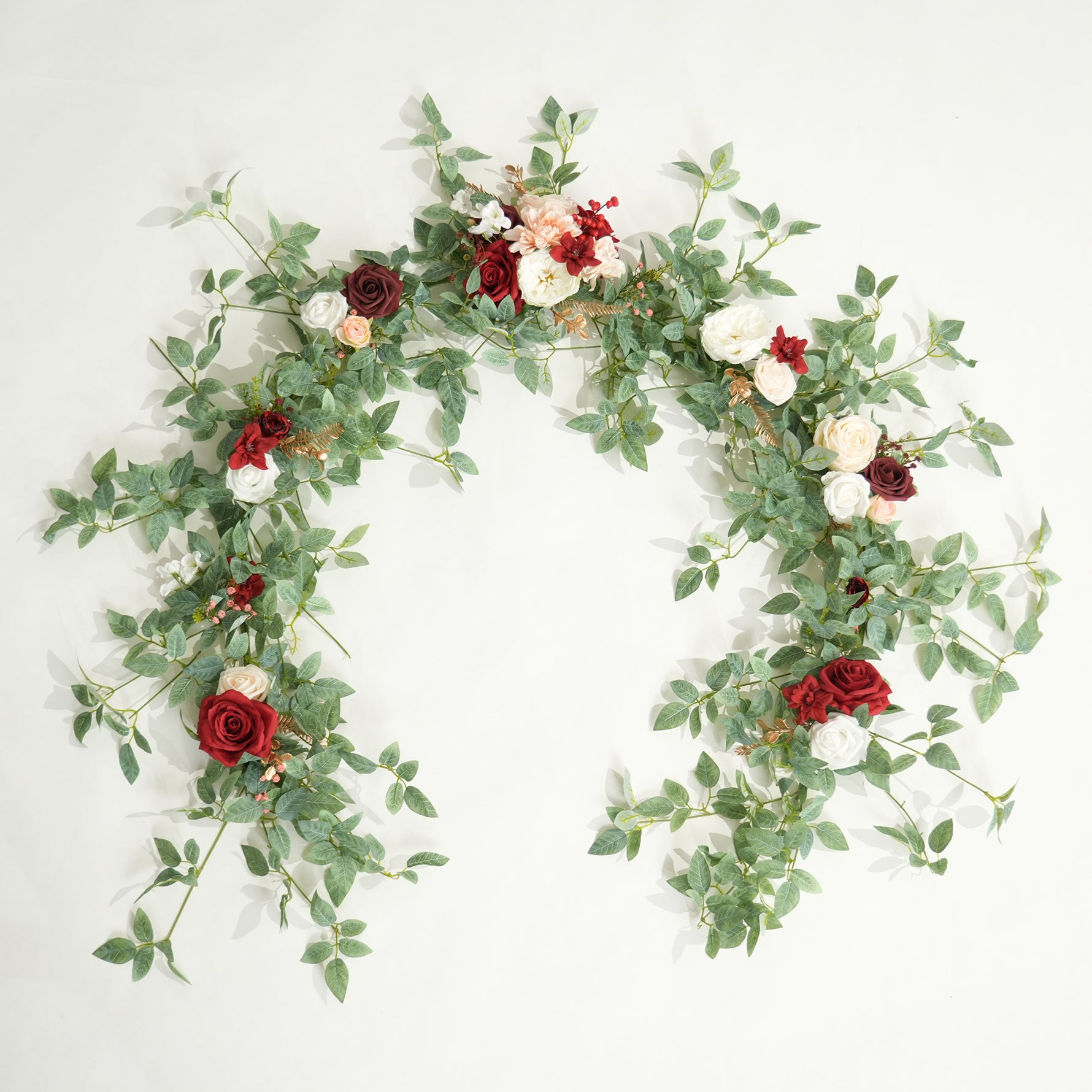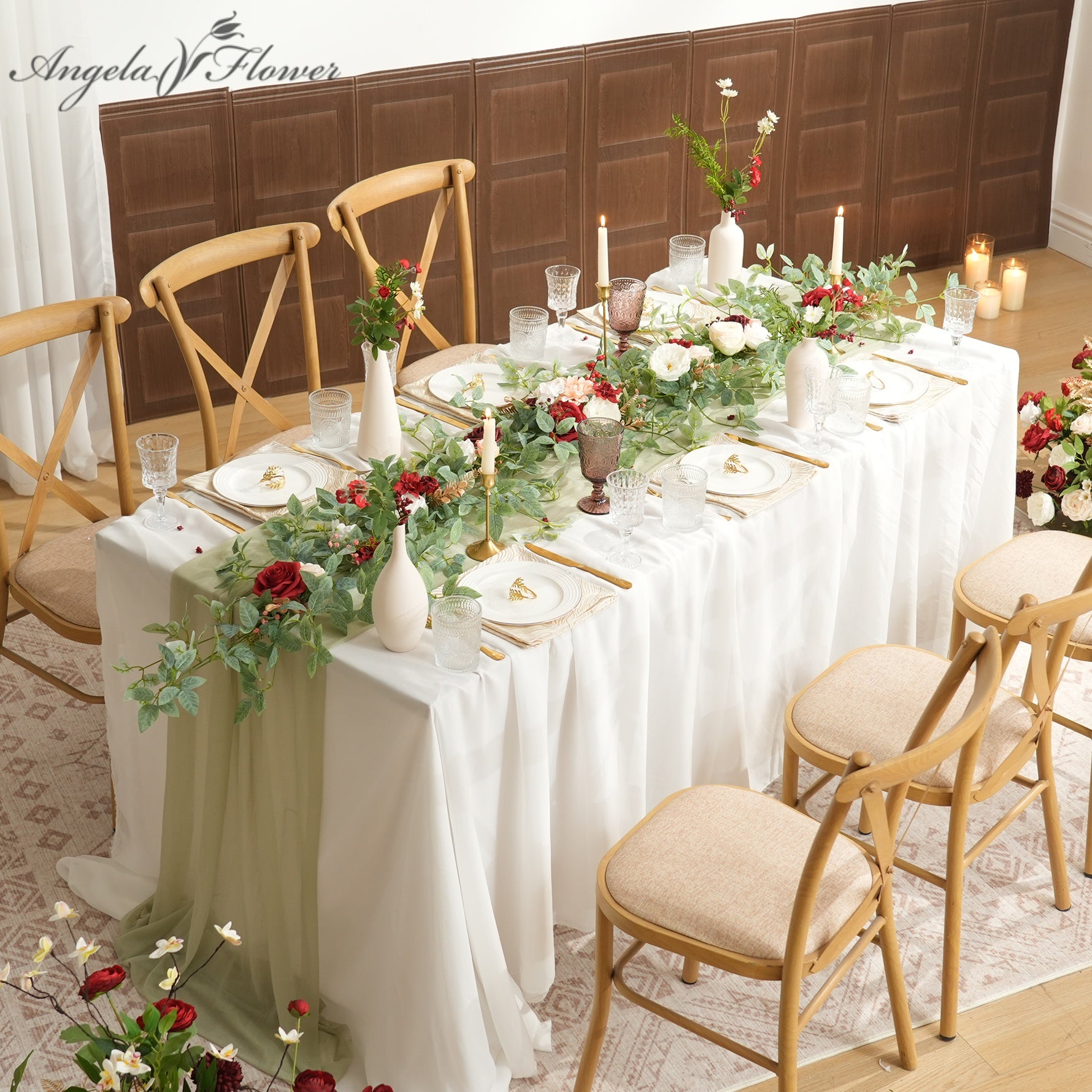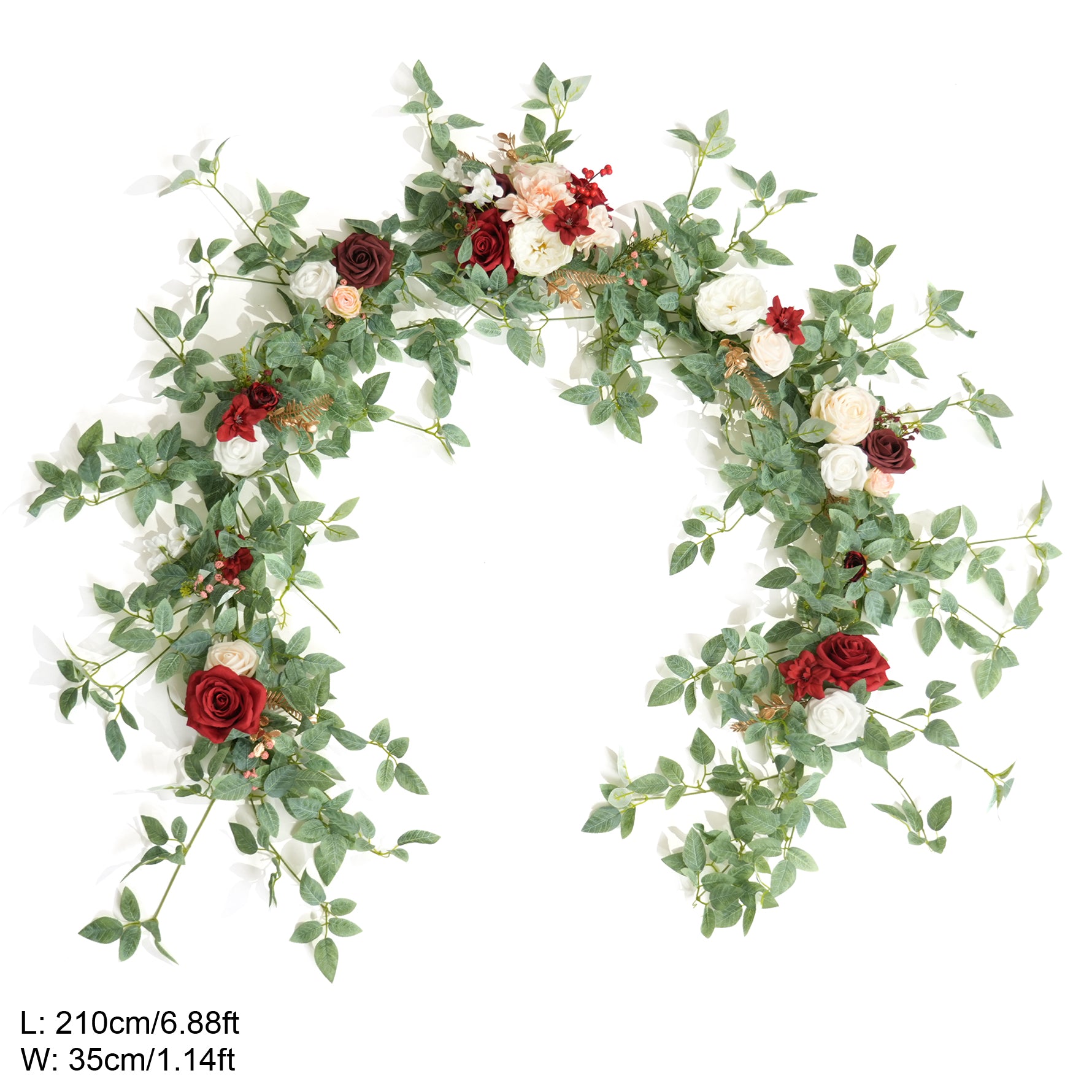 A9060 6.88ft Artificial Red White Greenery Garland Wedding Event Table Decor Props