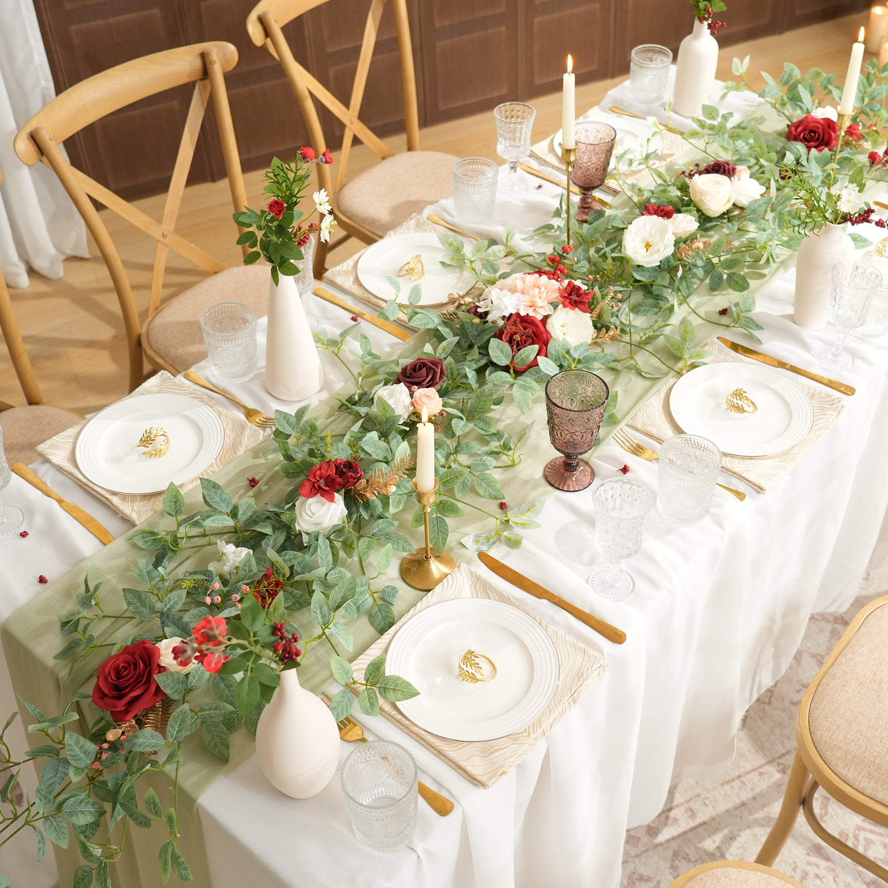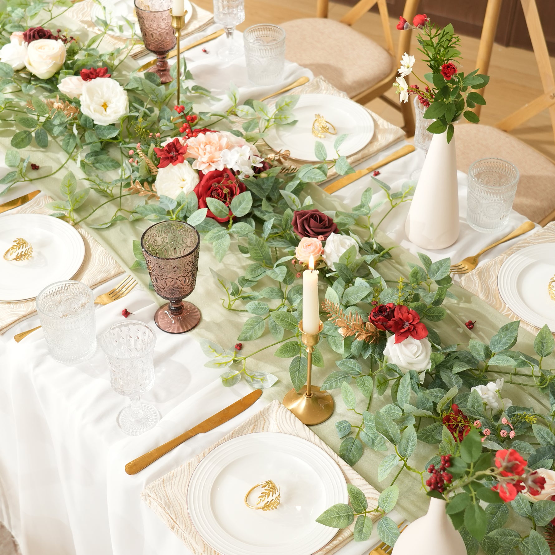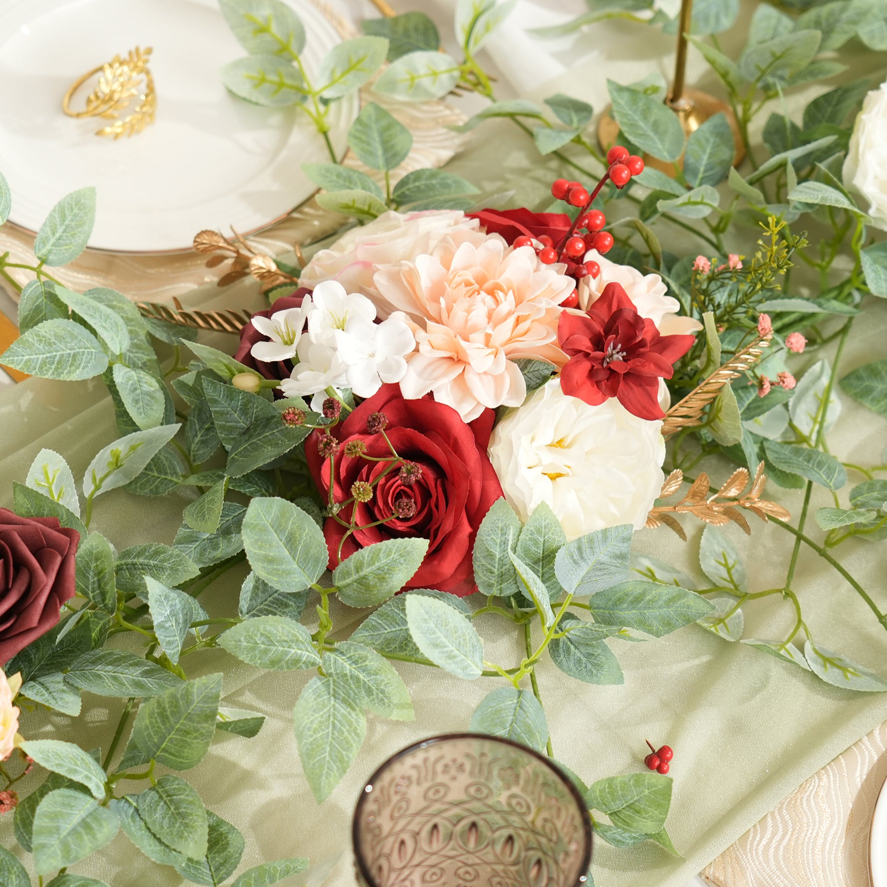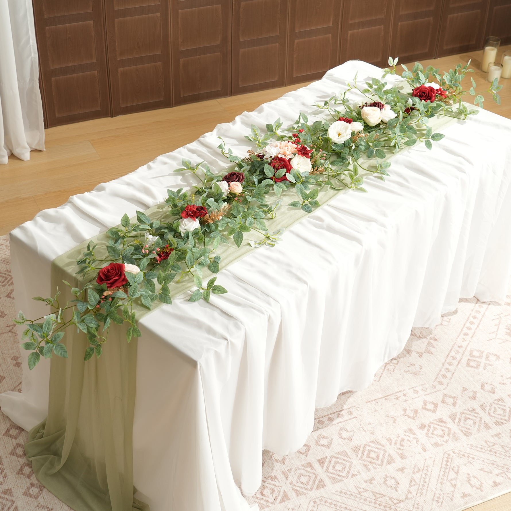 A9060 6.88ft Artificial Red White Greenery Garland Wedding Event Table Decor Props