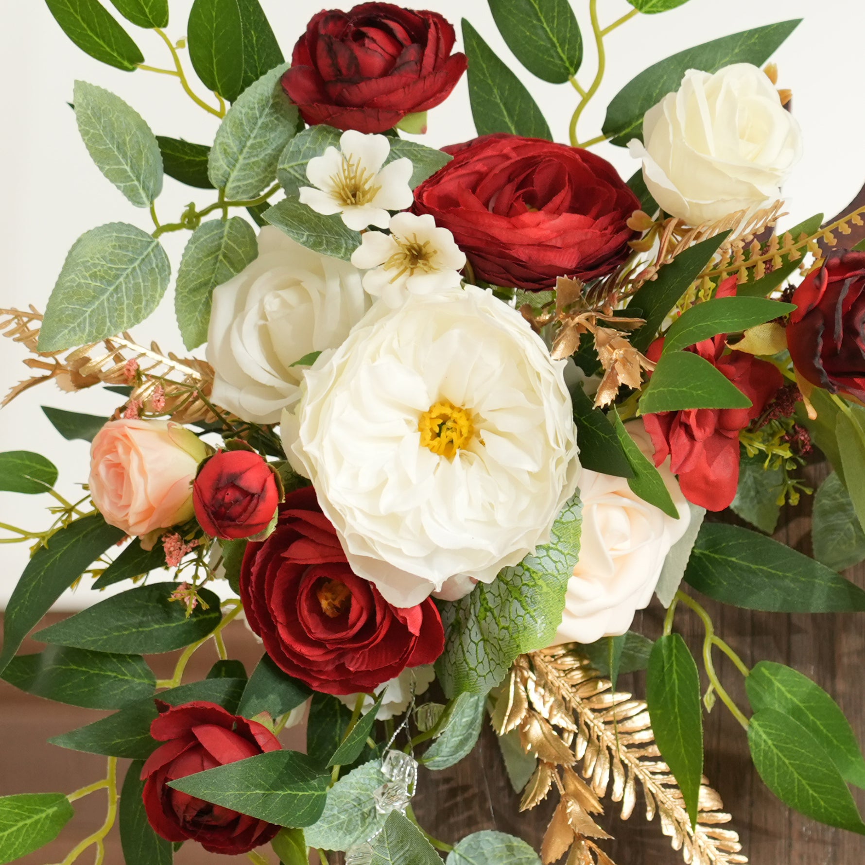A9060 Artificial White Red Flower Gold Leaves Table Centerpiece Wedding Event Supplies