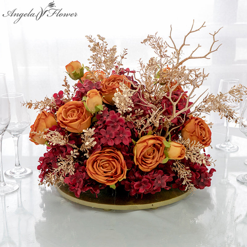 A8100 Gold Leaf Rose Hydrangea Wedding Table Centerpiece Ball