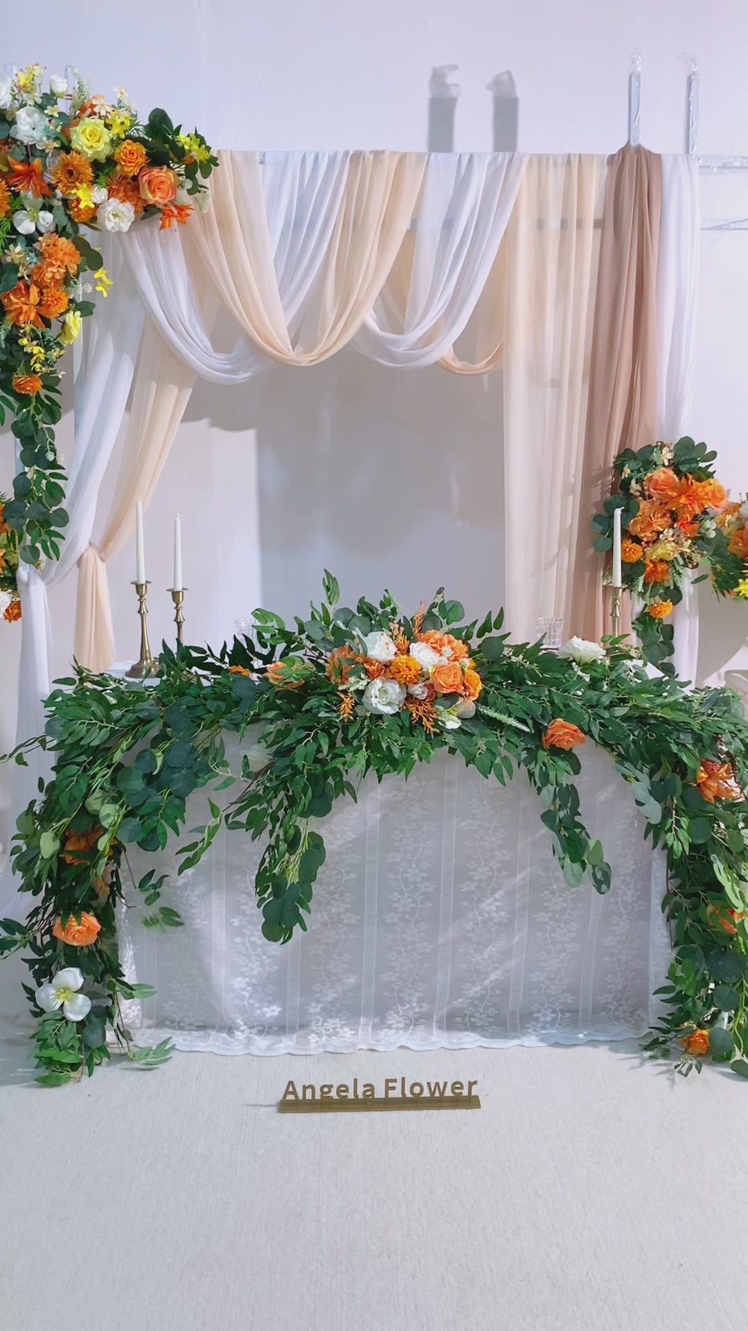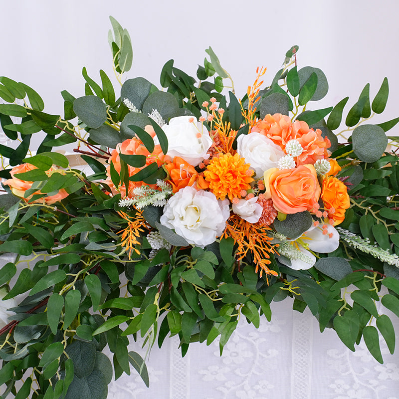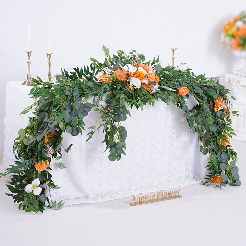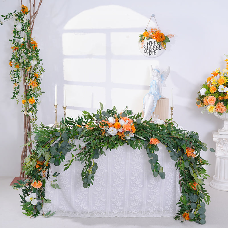 A866515 8.85ft Orange White Series Green Plant Vine Wedding Table Garlands