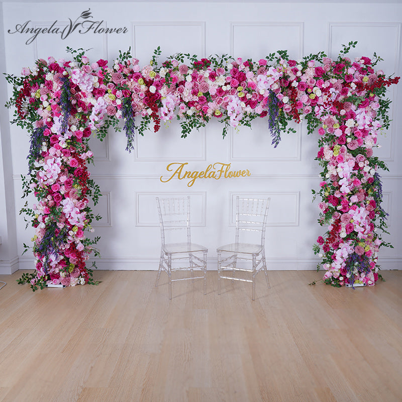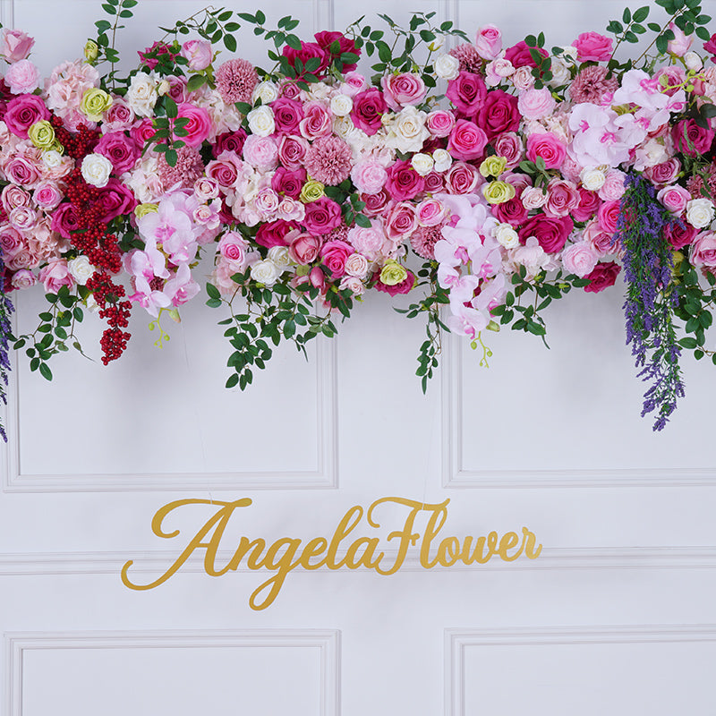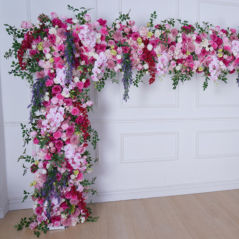 A8642 Pink Rose Orchid Hang Wisteria Flower Row Decor Wedding Backdrop Square Frame