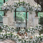 A8152 White Rose Babysbreath Green Leaf Wedding Arch Floral Arrangement