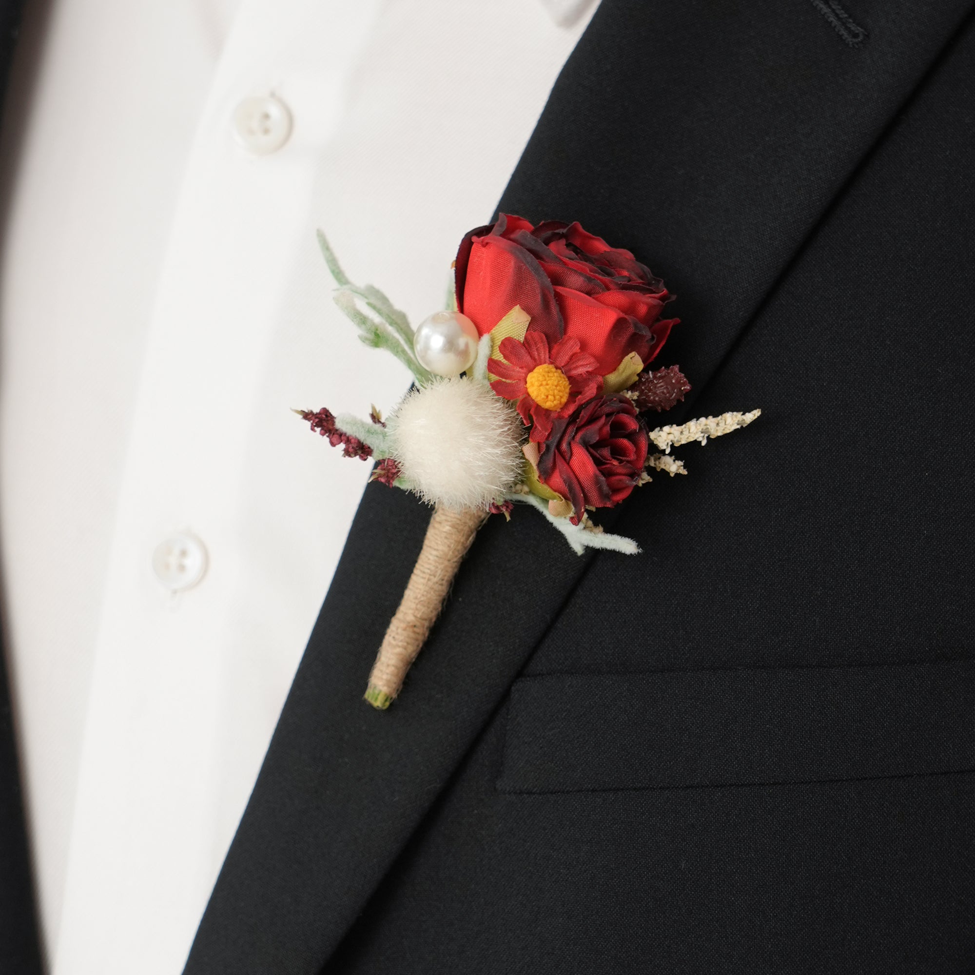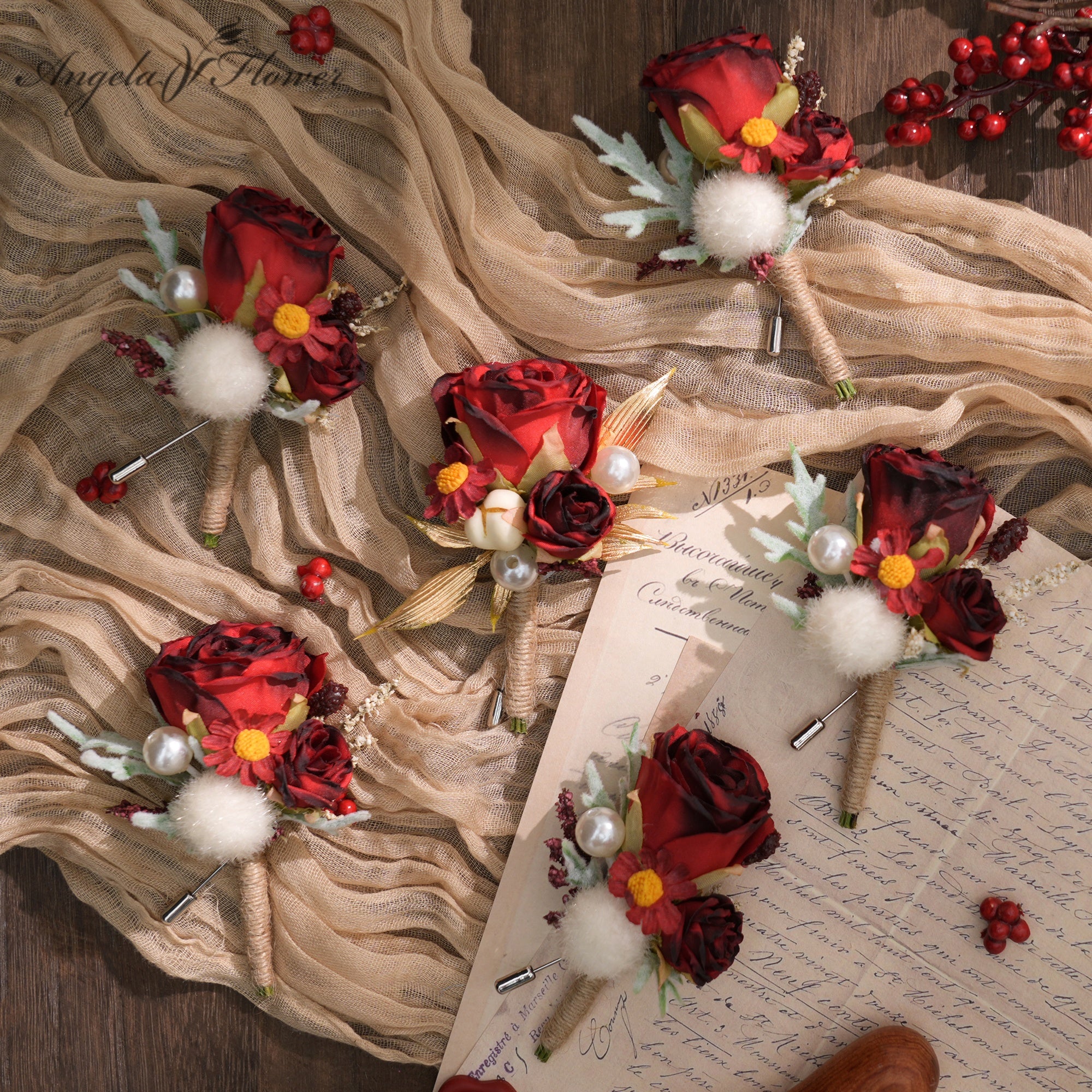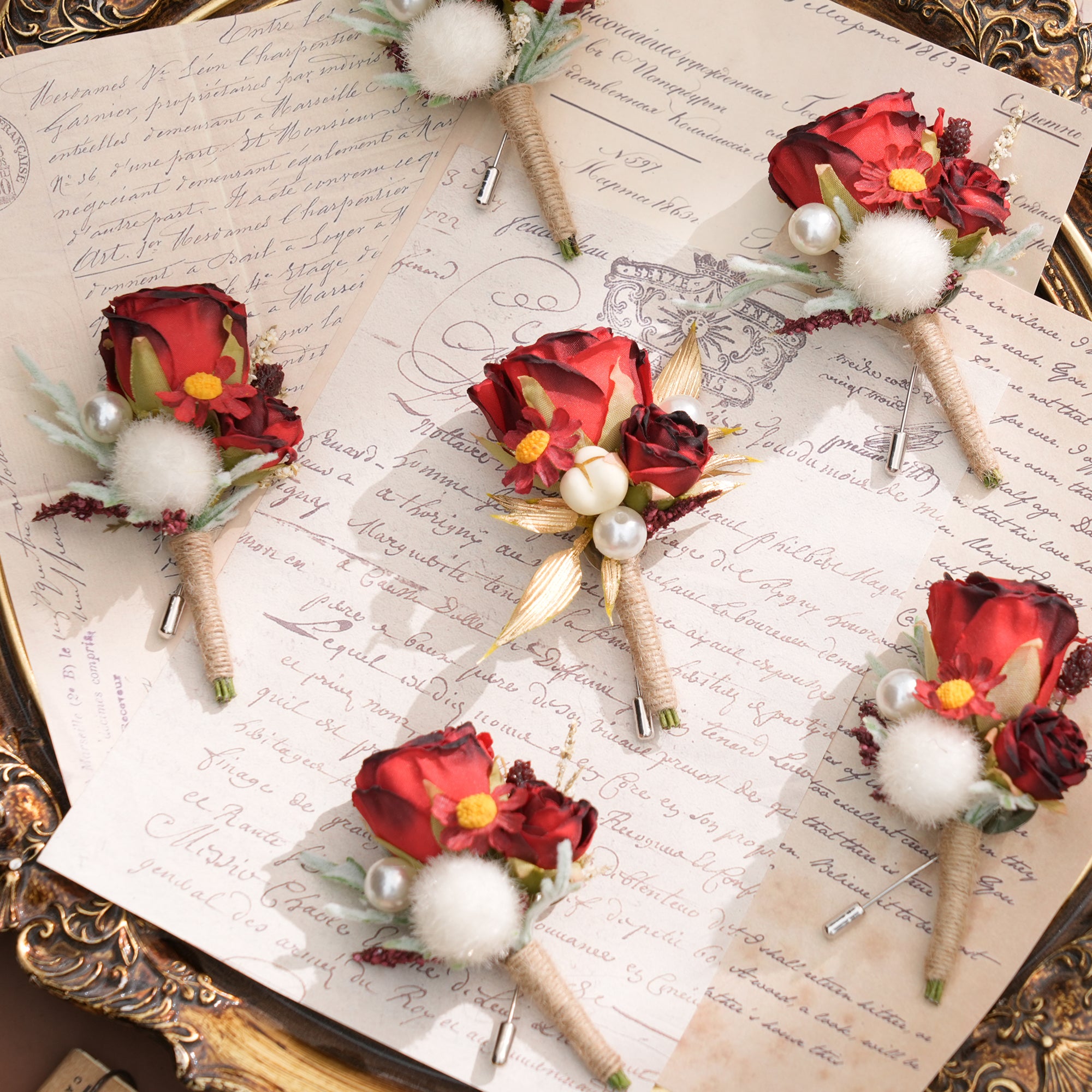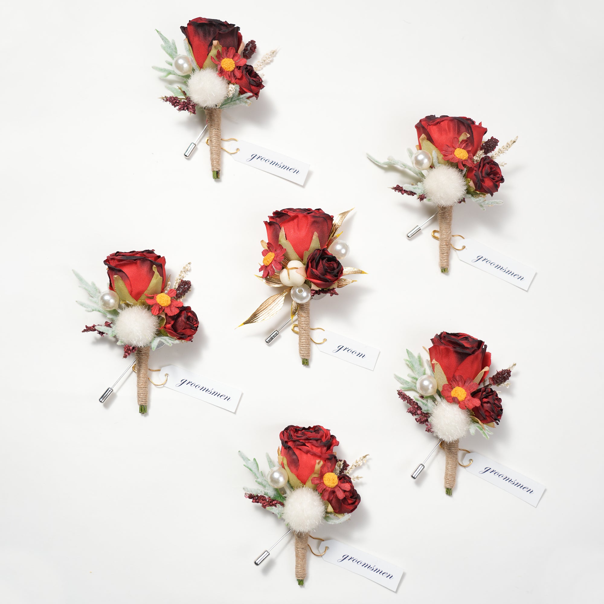 A9024 6pcs/set Red Rose Dried Boutonniere For Men Wedding Accessories