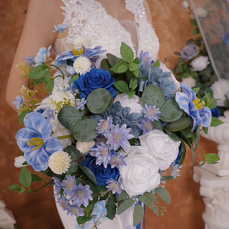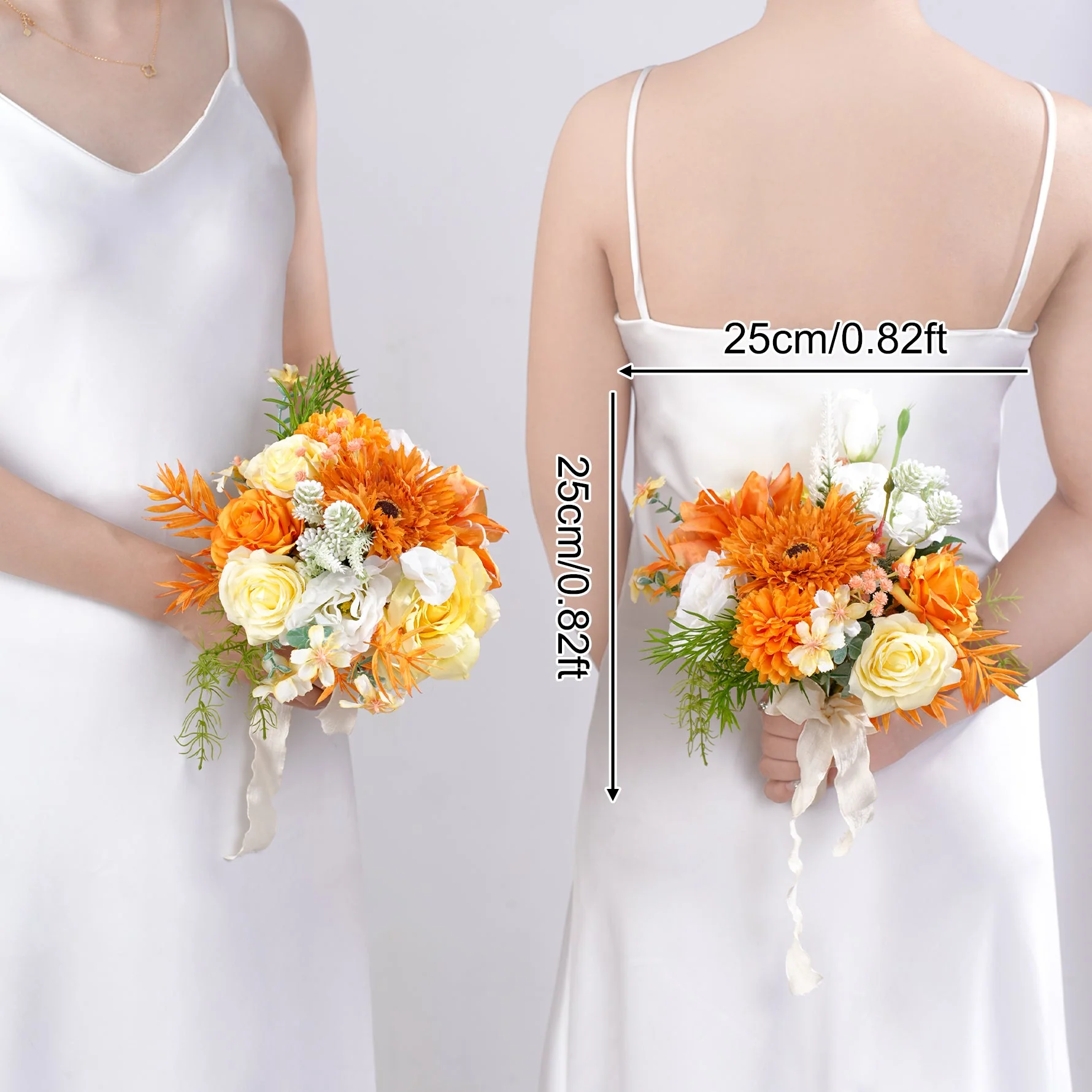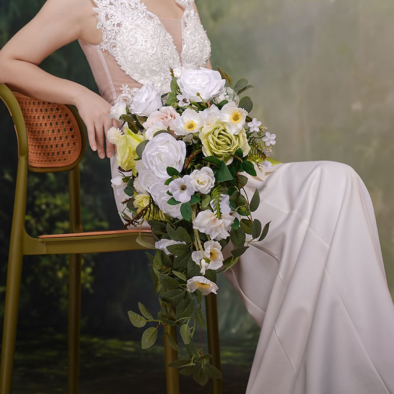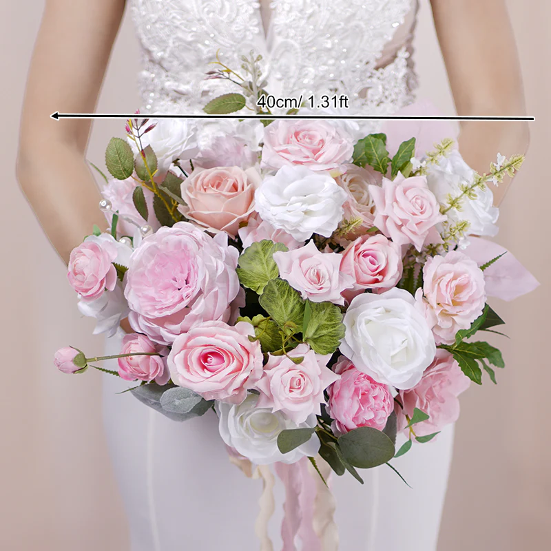 Large: Approximately 11-14 inches (28-35cm) in diameter, 14-18 inches (35-45cm) in height. Suitable for brides 5'5" (165cm) or taller, or grand weddings. Artificial large bouquets are lighter and easier to hold.