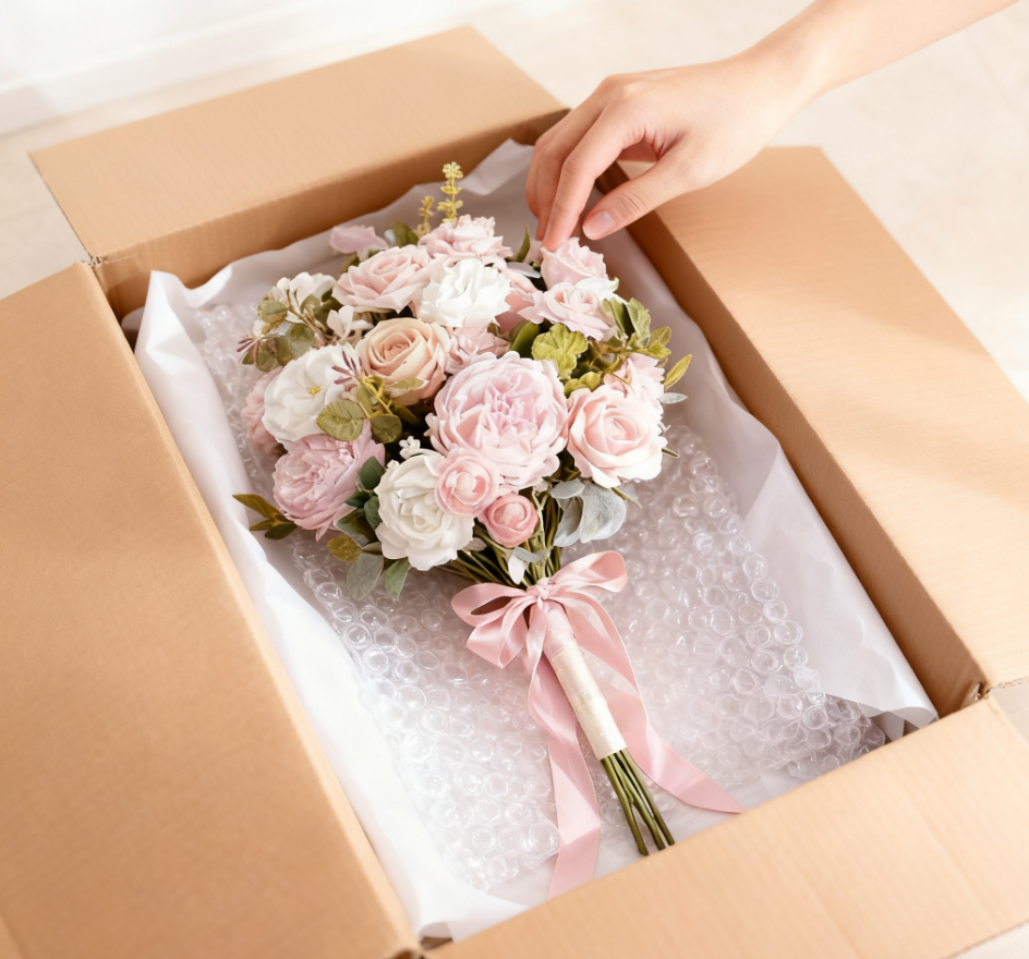 Wedding Day Care: Place in a cool, shaded area before the ceremony, avoiding direct sunlight. Use a bouquet holder to prevent crushing and deformation. Prepare a small spray bottle for occasional misting to maintain moisture.