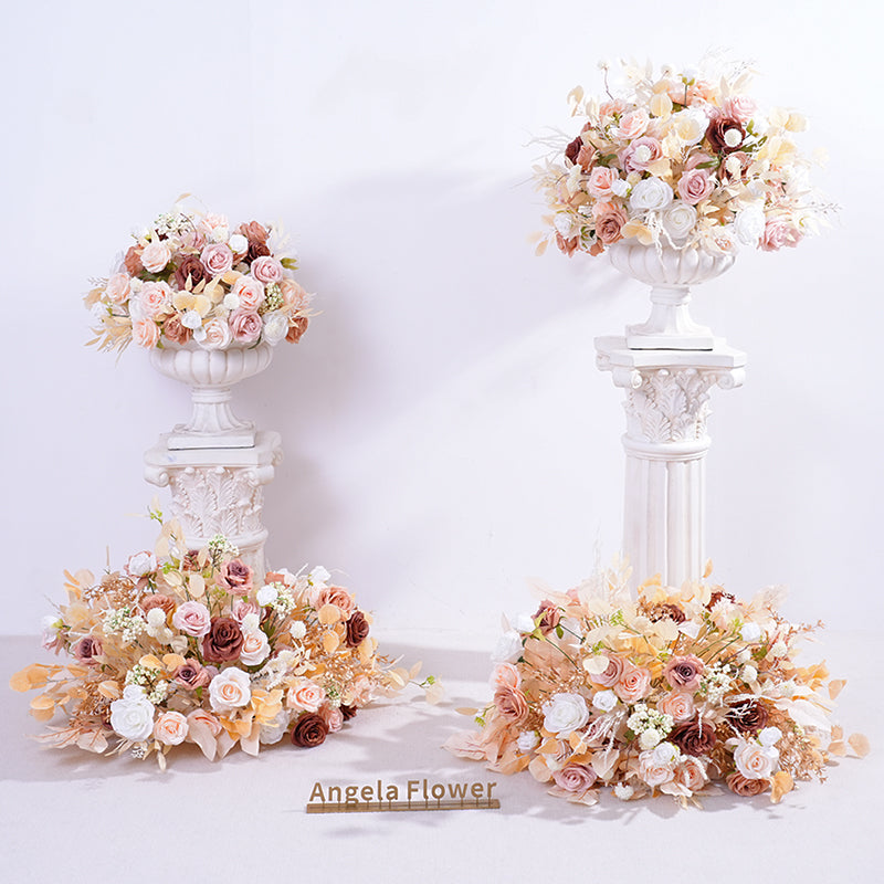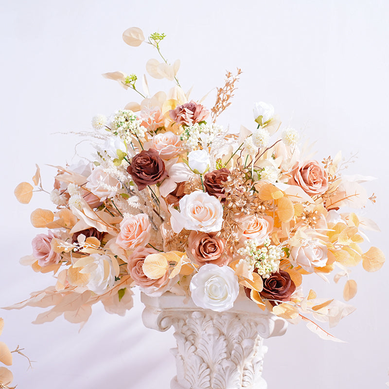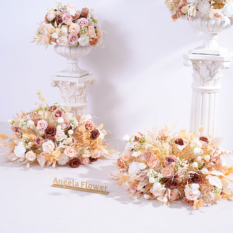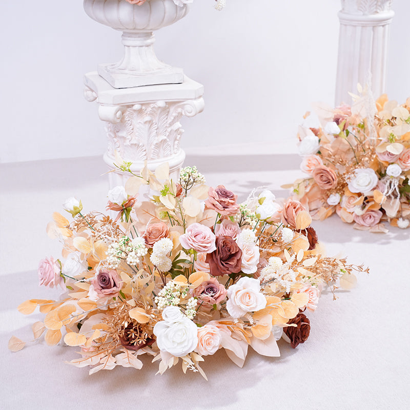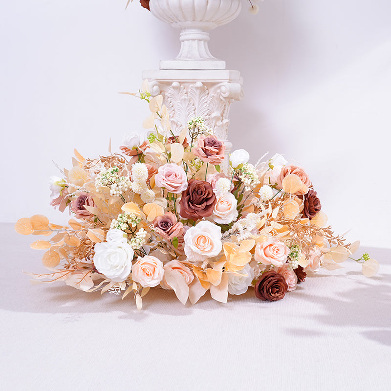 A863821 Champagne Series Rose Plant Leaf Floor Flower Row Wedding Event Props