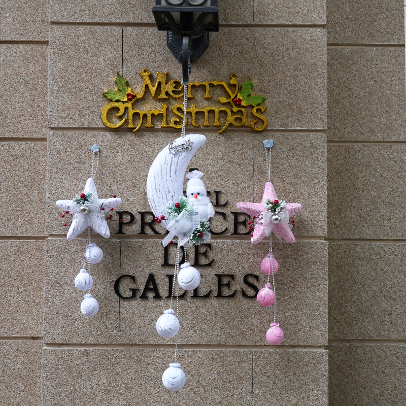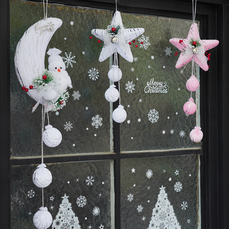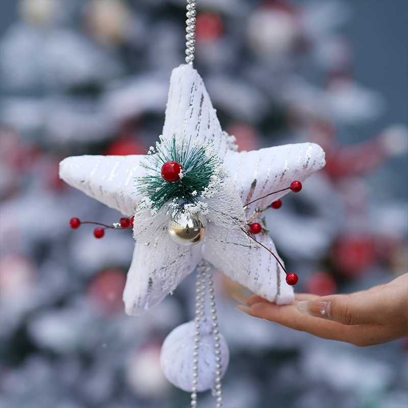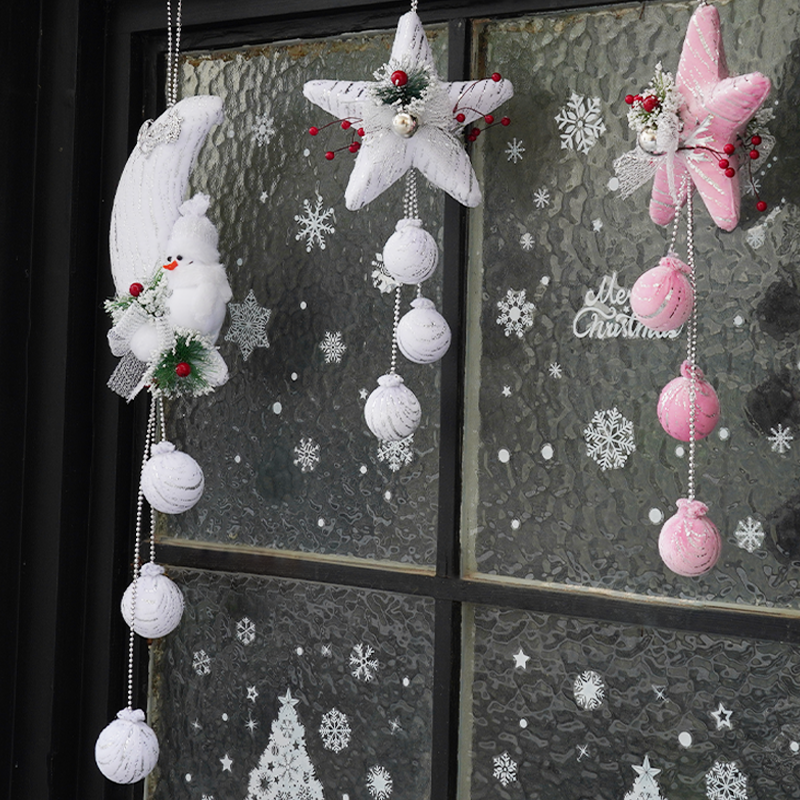 SD0192+SD0193+SD0194 Christmas Decoration Snow White Pink Five Star Hanging Balls
