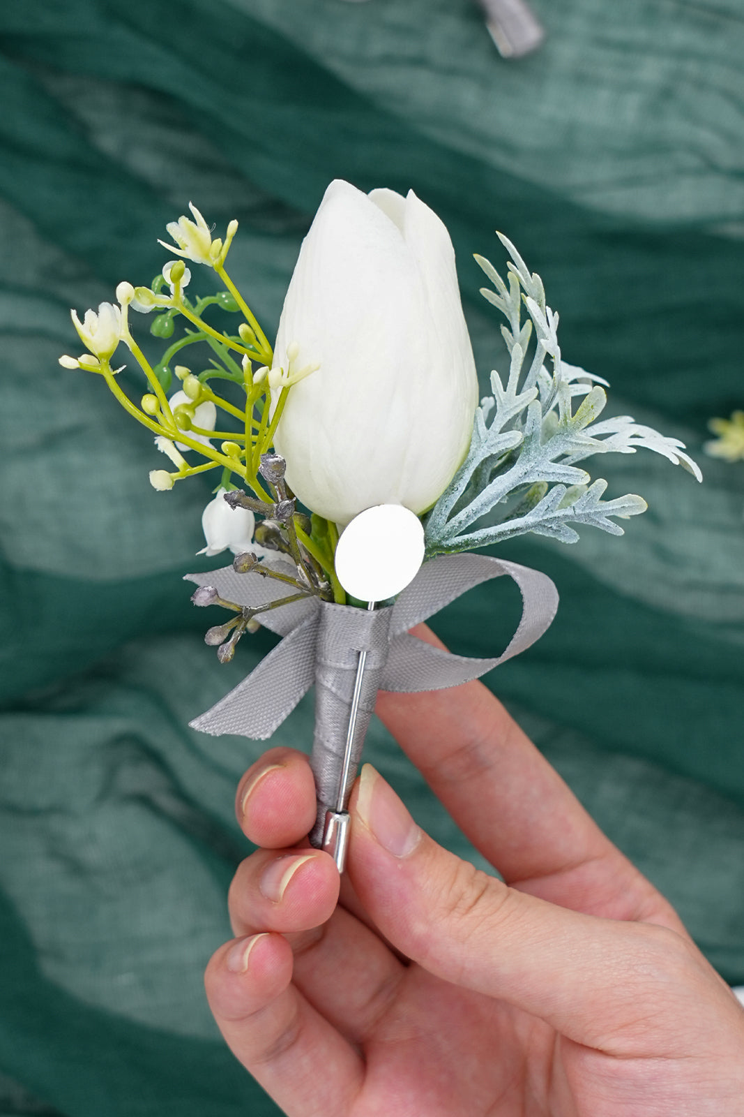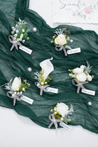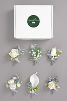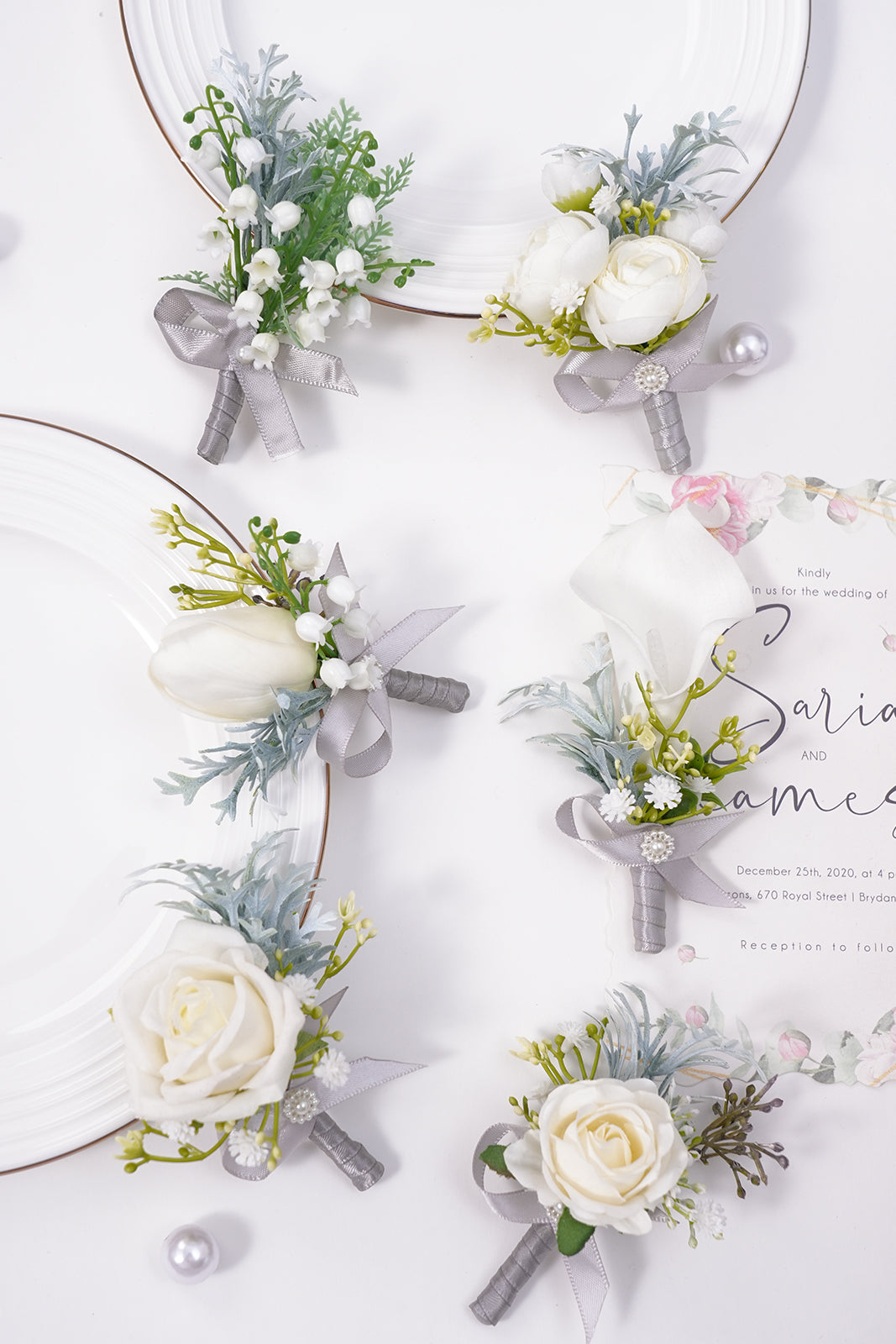 Color Inspiration: Enhance any special occasion with this 6-piece corsage flowers set! Featuring real touch calla lilies, tulips, and roses, these handcrafted corsages offer a lifelike and elegant touch. The set includes various options, such as a classic rose corsage and a delicate white flower corsage, perfect for weddings and formal events. Lush greenery accents complement the blooms, adding a touch of natural beauty. Ideal for wedding parties, proms, and more, these corsages are comfortable to wear and provide a cohesive, sophisticated look.