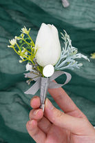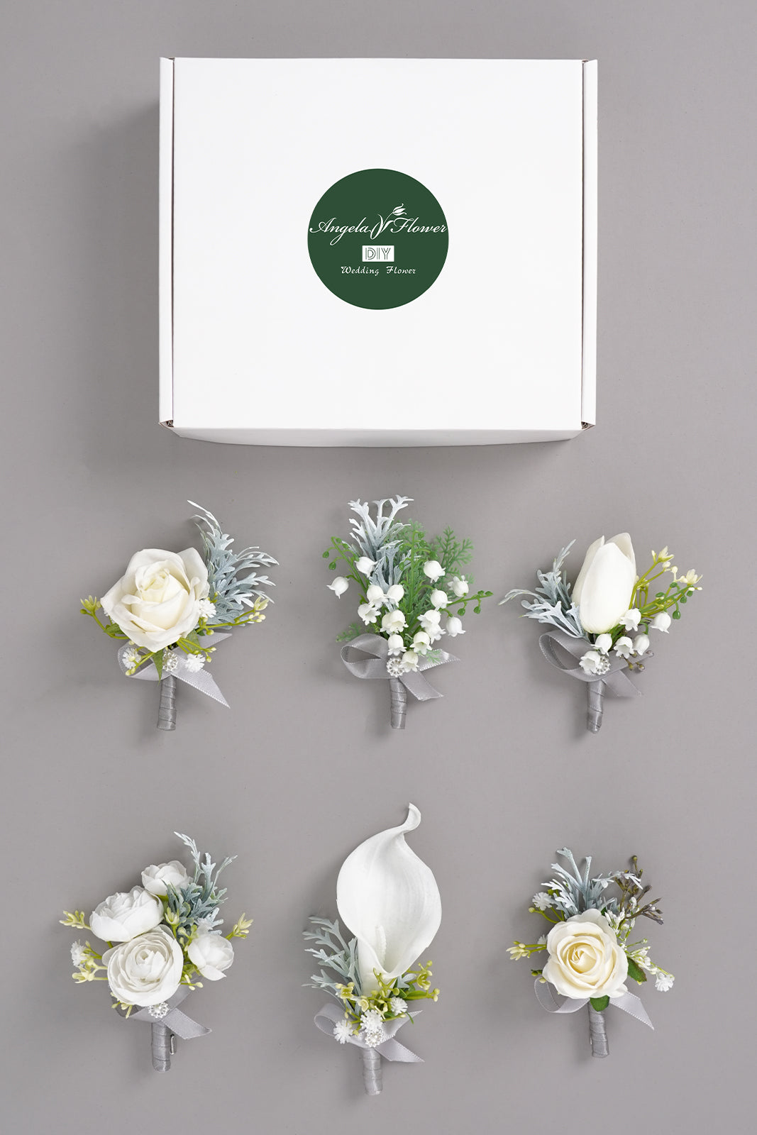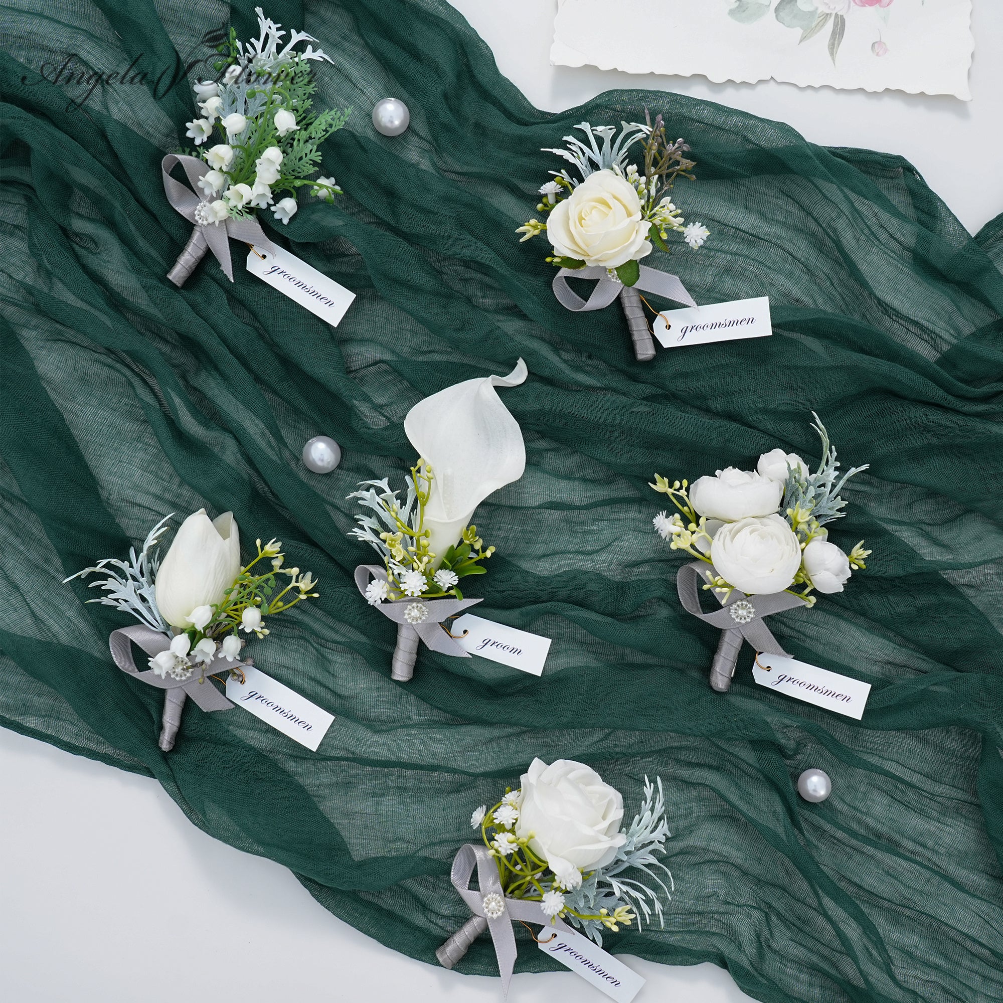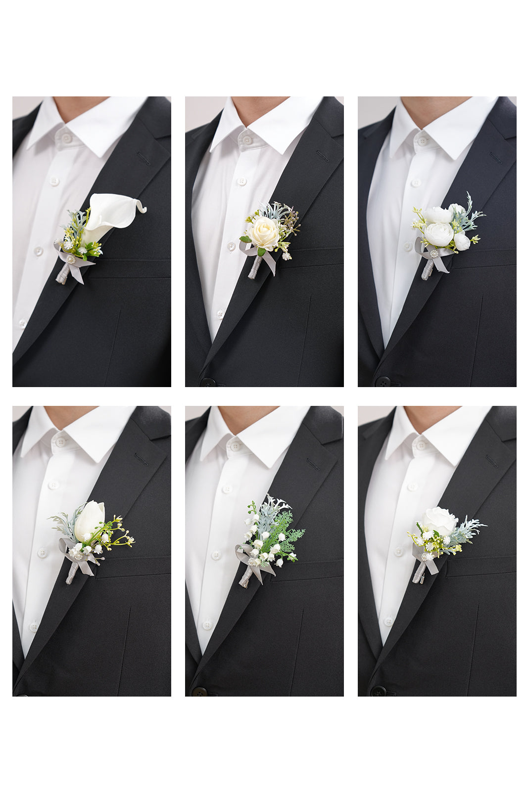 A8976 6pcs/set White Rose Calla Tulip Corsage Flower Groom Wedding Decor Props