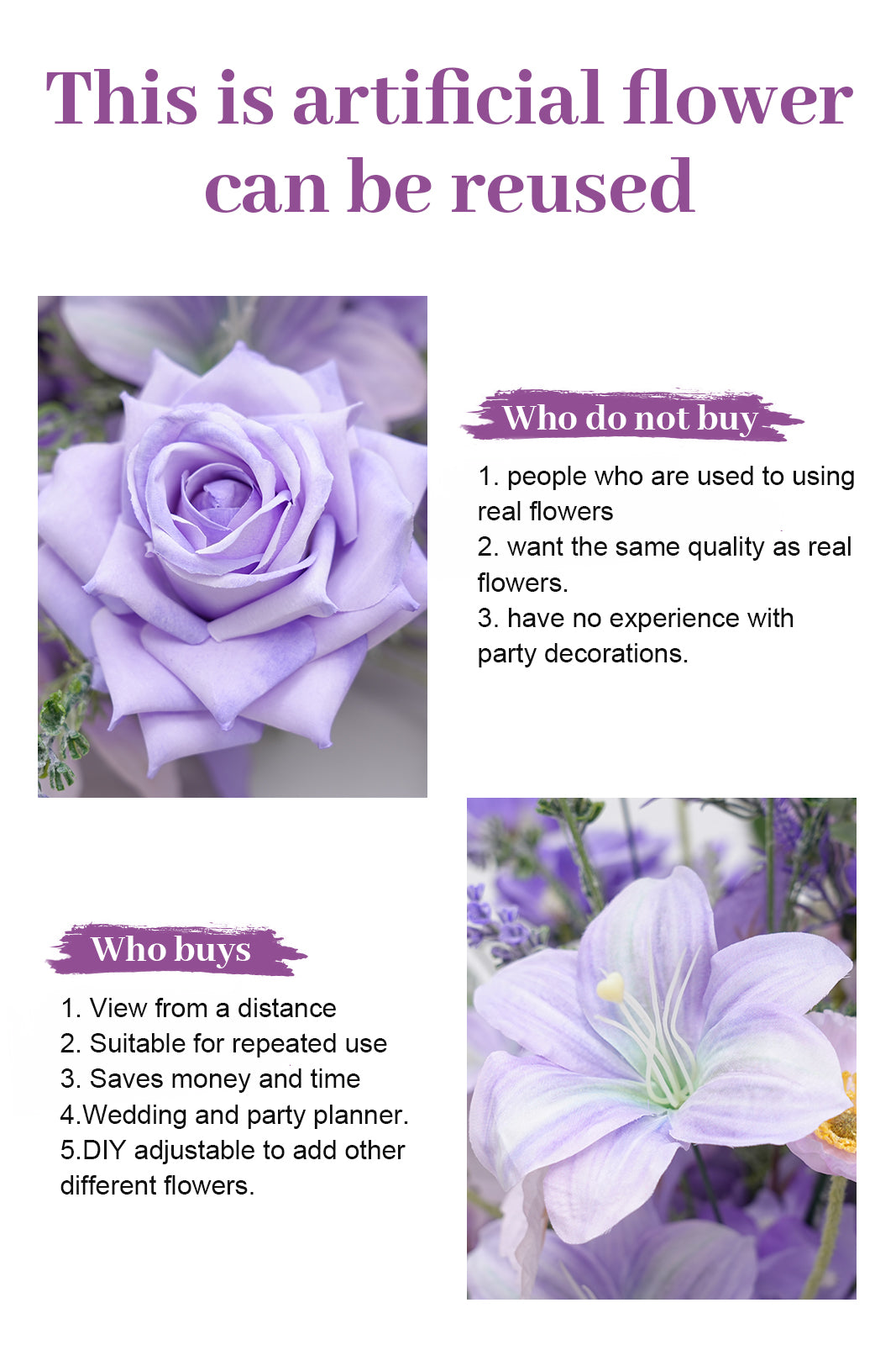 A8967 2pcs Purple Lavender Rose Table Centerpiece Floor Flower Wedding Decor Props